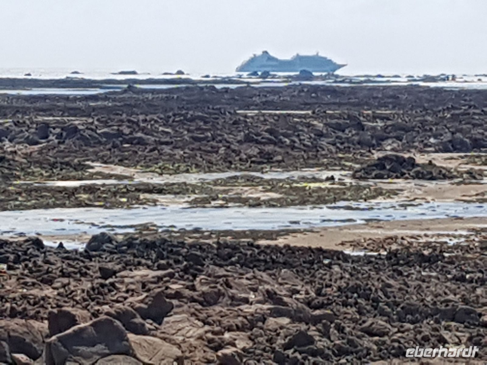 Wir waren ziemlich überrascht, als zur vorgesehenen Zeit ein großes Containerschiff anlegte, dass uns tatsächlich nach Jersey bringen sollte. Die Fährüberfahrt verlief dann mit dem großen Schiff in langsamen Tempo und bot immer wieder tolle Aussichten auf den Archipel der Kanalinseln.