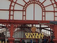 Nach einen sehr reichhaltigen Frühstück checkten wir aus und stellten unsere Koffer im Hotel unter. Dann hatten wir bis zum Mittagessen um 14.00 im Hotel Freizeit für eigene Unternehmungen. Unsere Reiseleiterin führte einige aus unserer Gruppe durch den Howard Davis Park in die Altstadt von Jersey und dort zur Markthalle, wo unter den vielen Angeboten auch interessante, lokale Produkte, wie die „Jersey Black Butter“ zu bekommen ist. Dann hatten wir noch Zeit für eigene Erkundungen bevor wir uns zur verabredeten Zeit zum Mittagessen im Restaurant „Bonetti“ im Hotel Merton trafen.