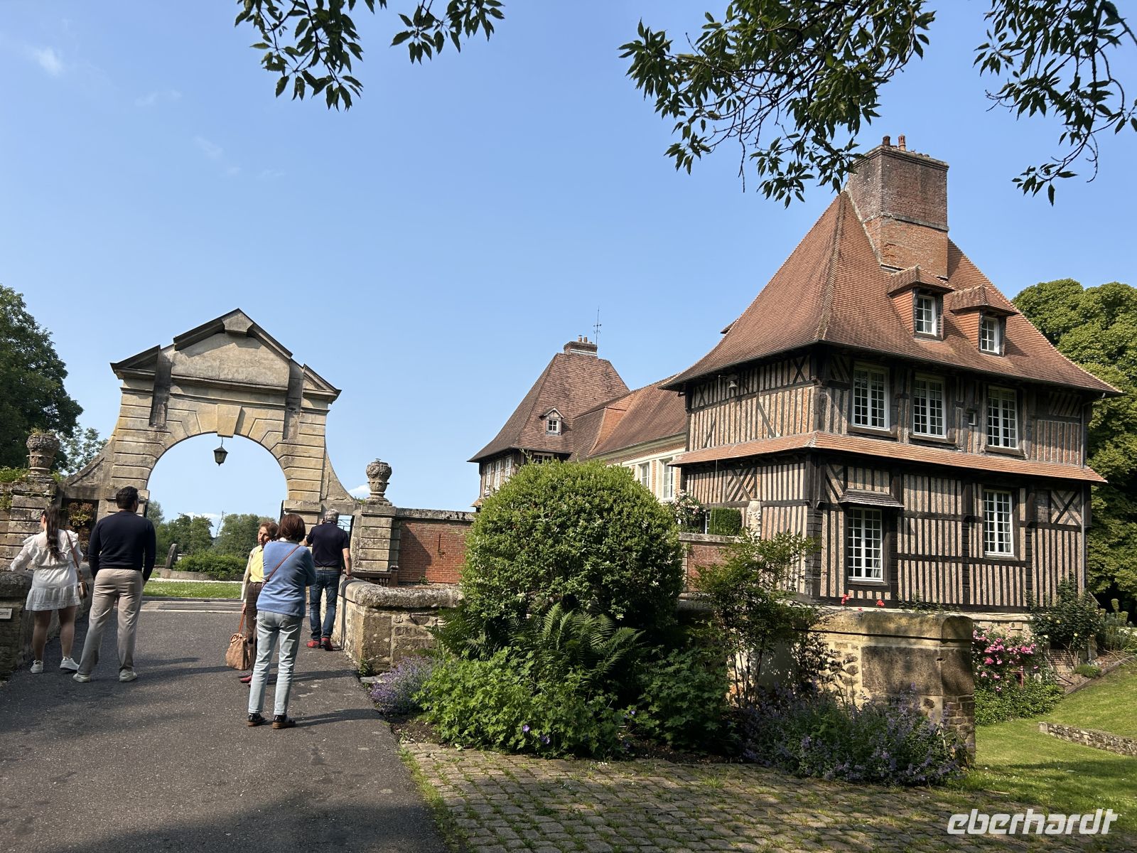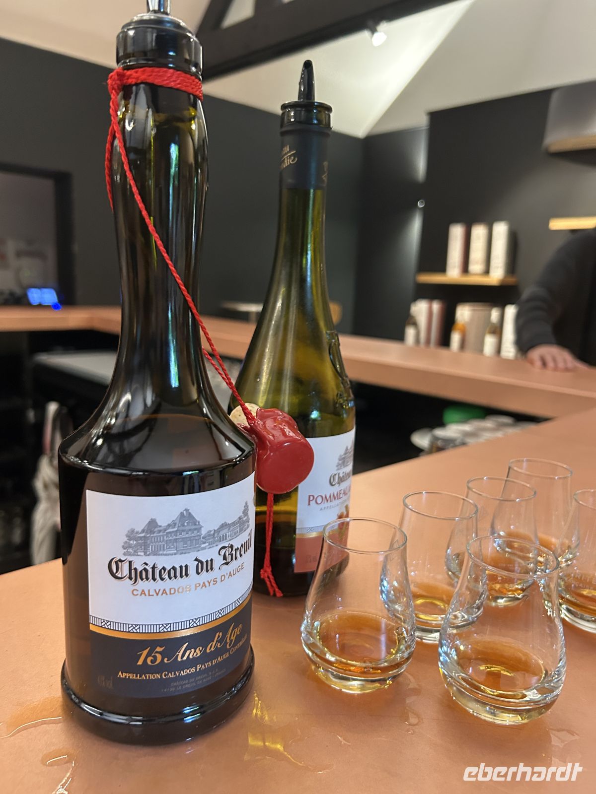In der Umgebung besuchen wir das Cave Chateau de Breuil, eine traditionelle Calvados-Destillerie. Hier erfahren wir, wie aus normannischen Äpfeln der berühmte Apfelbranntwein entsteht – natürlich mit Verkostung.