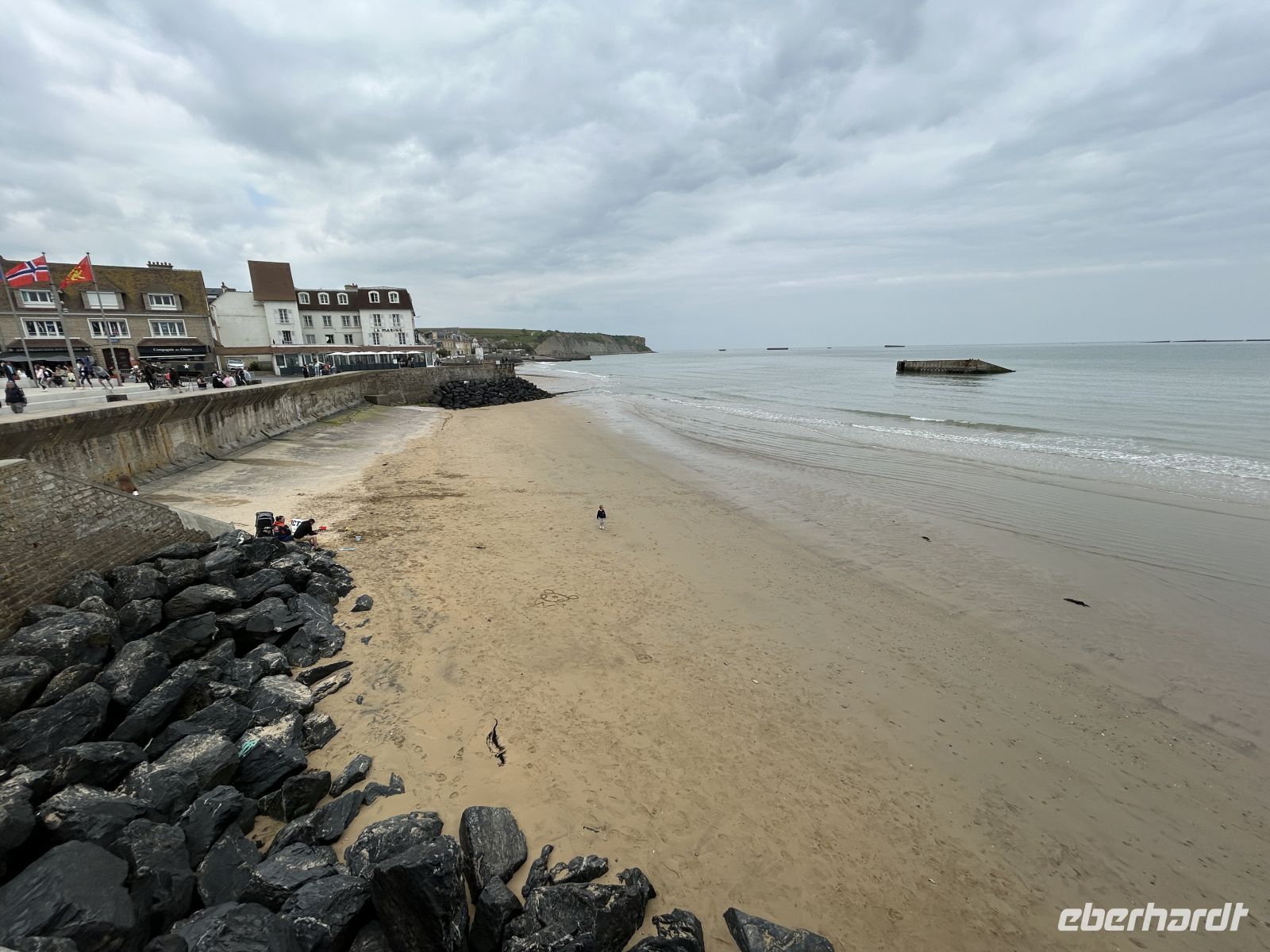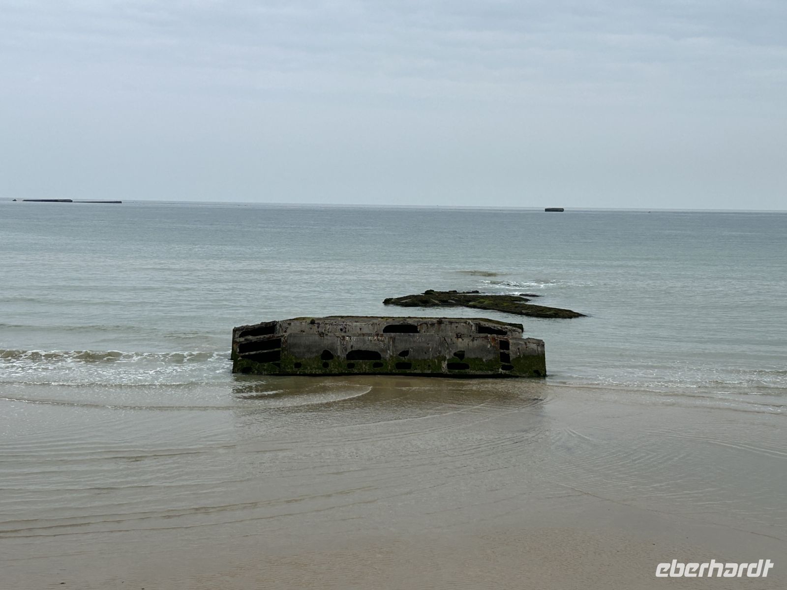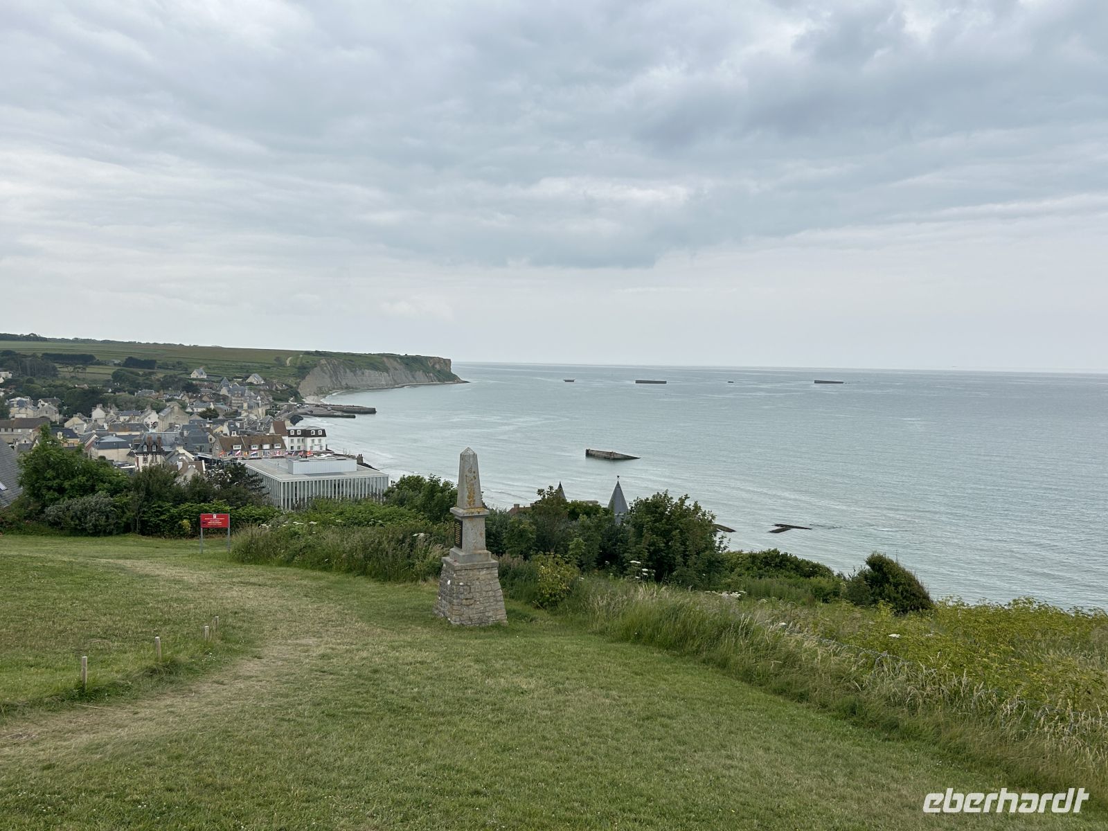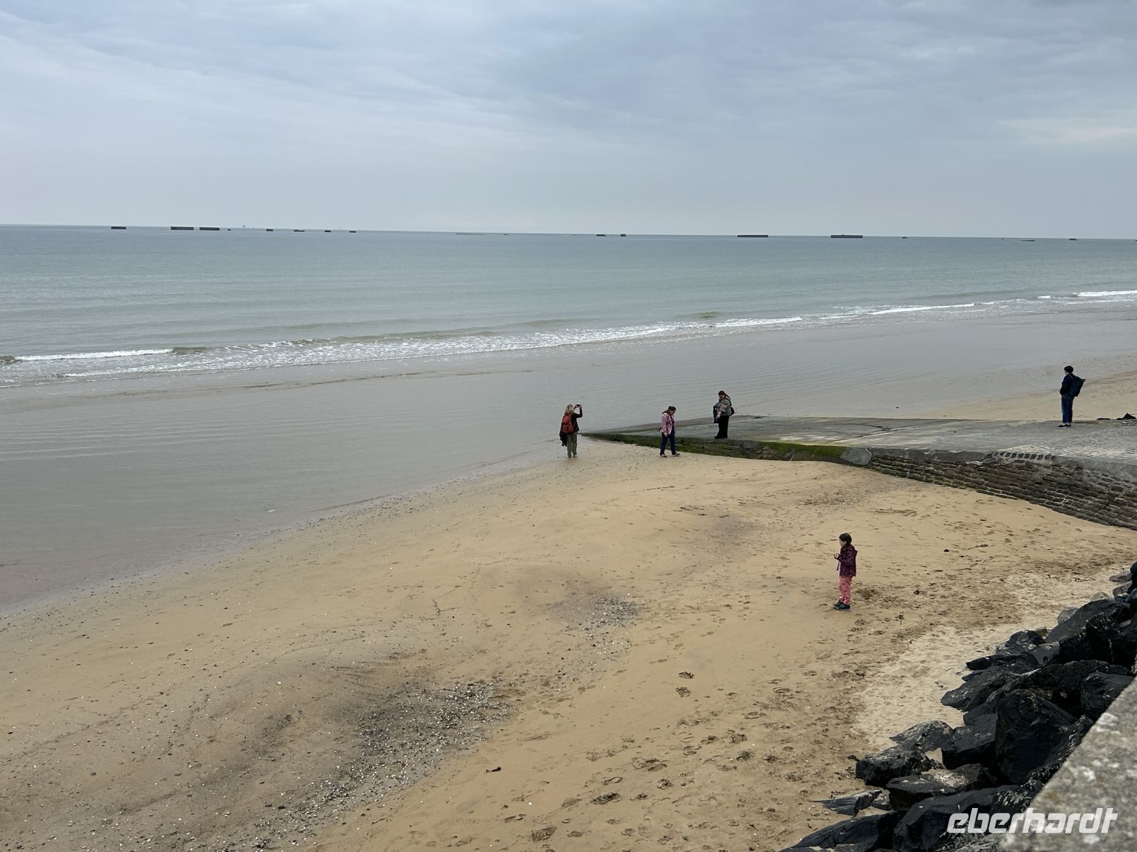 Wir besuchen Arromanches-les-Bains, wo am weitläufigen Sandstrand noch Überreste des künstlichen Hafens „Mulberry Harbour“ zu sehen sind. Ein 360Grad-Kino zeigt eindrucksvolle Szenen der damaligen Ereignisse und macht die Geschichte greifbar. Das kleine Städtchen ist heute ganz auf die Besucher ausgerichtet.