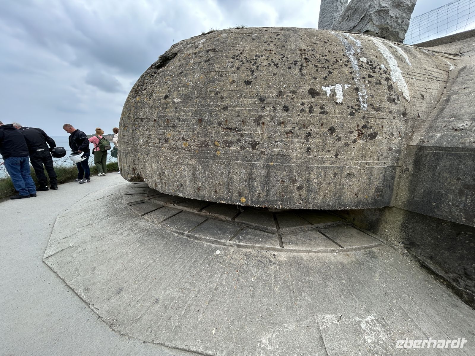 Weiter geht’s zur dramatischen Steilküste von Pointe du Hoc, wo amerikanische Ranger am 6. Juni 1944 unter schwerem Beschuss die Klippen stürmten. Die erhaltenen Bunker und Krater geben einen beklemmenden Eindruck vom Kampf.