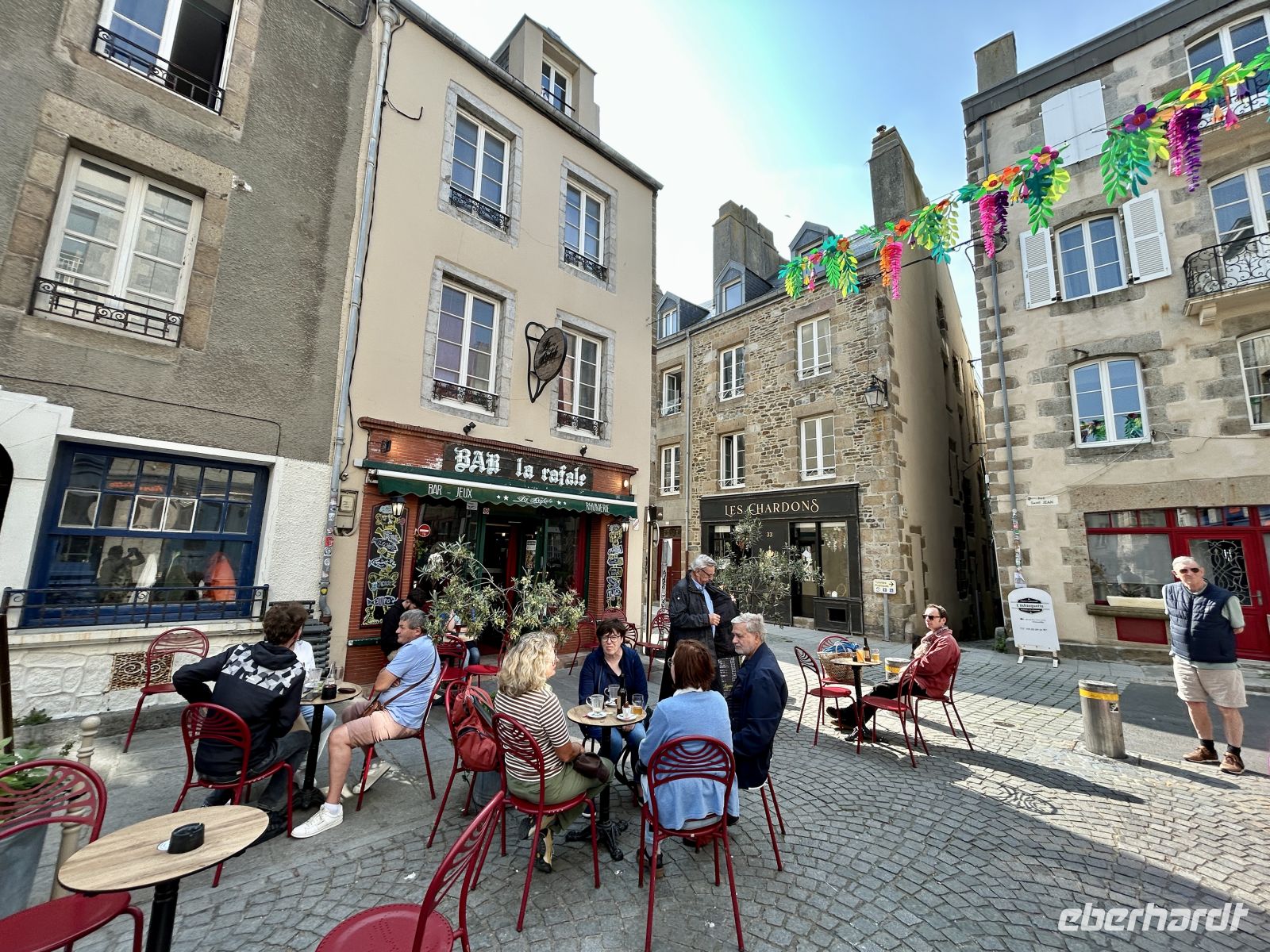 Zurück in Saint-Malo erleben wir die Stadt bei einem Spaziergang über die Stadtmauer, mit weitem Blick auf das Meer und die vorgelagerten Inselchen. Wir hören einiges über Korsaren, Roscoff und Chateaubriand. Wir besuchen die Kathedrale Saint-Vincent, schlendern durch die Fußgängerzone mit ihren Boutiquen und Crêperien, und lassen den Tag stilvoll am Place Chateaubriand ausklingen – der eine oder andere mit einem Glas Wein oder einem kühlen Blonde.