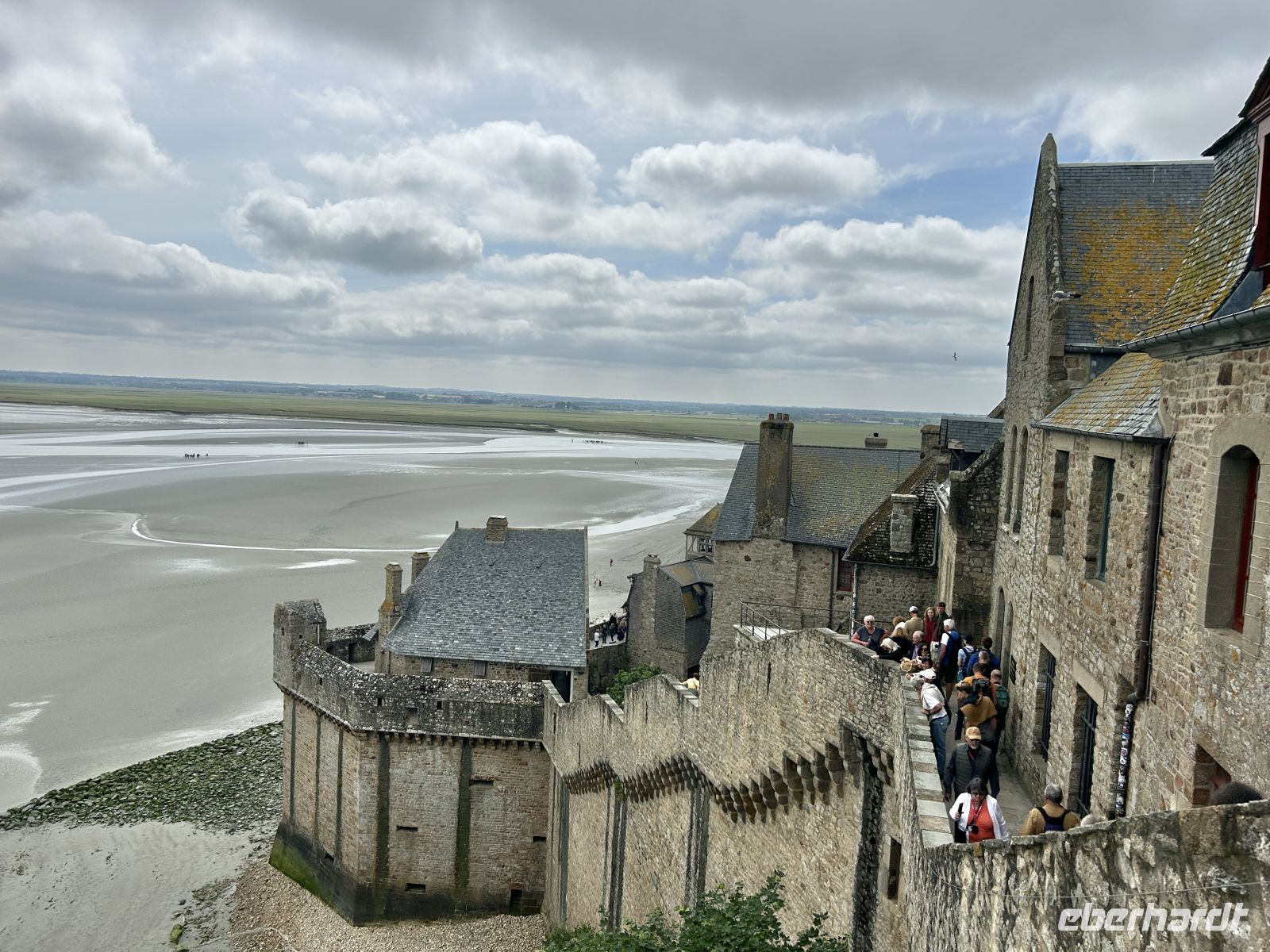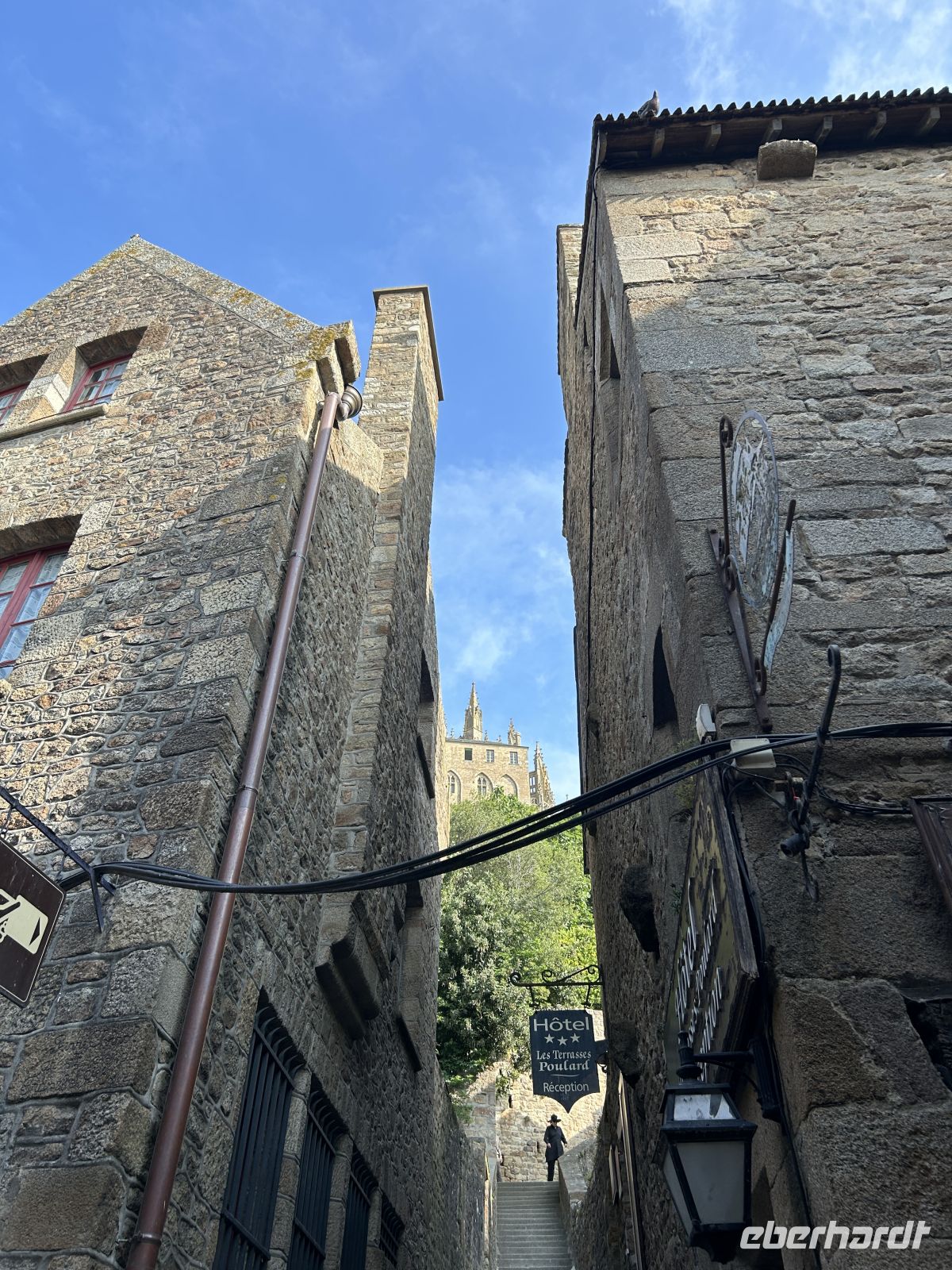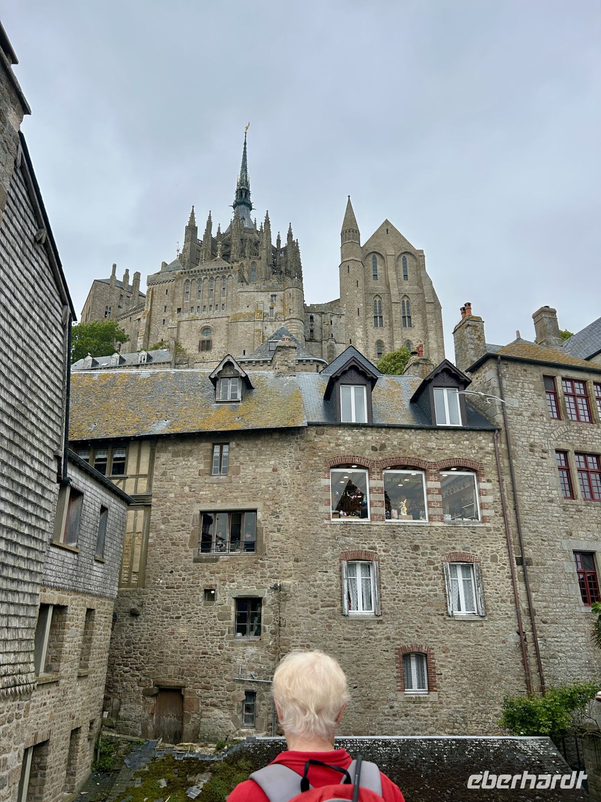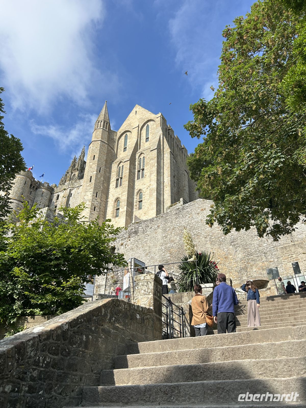 Die Abtei aus dem 8. Jahrhundert wirkt wie aus einer anderen Welt. Wir erklimmen die steilen Gassen bis zur Abtei und genießen einen Blick über das Wattenmeer – ein Ort zwischen Himmel und Erde, Spiritualität und Geschichte.