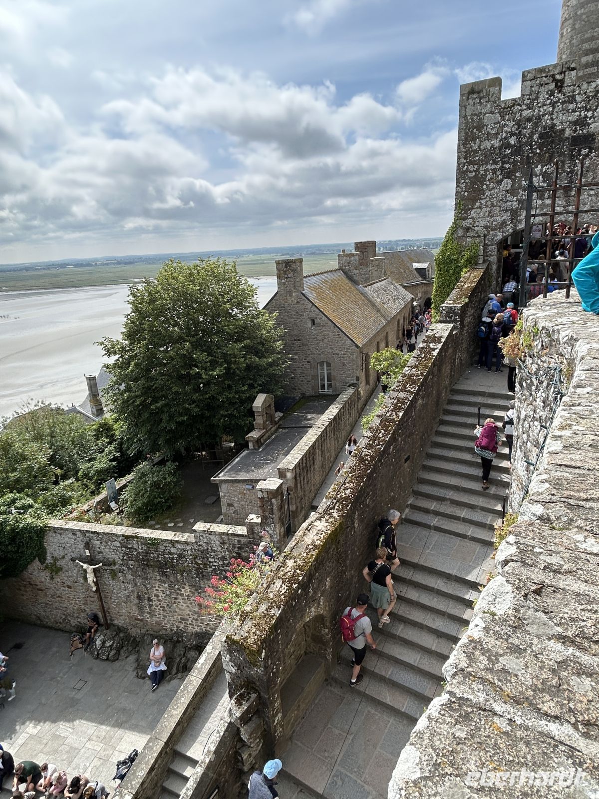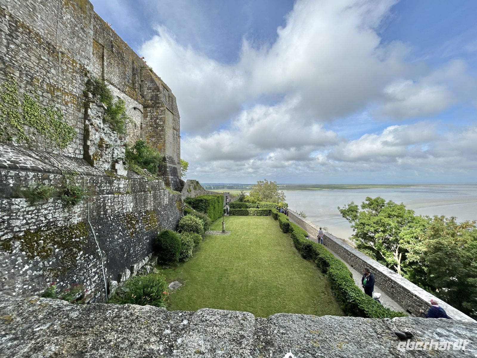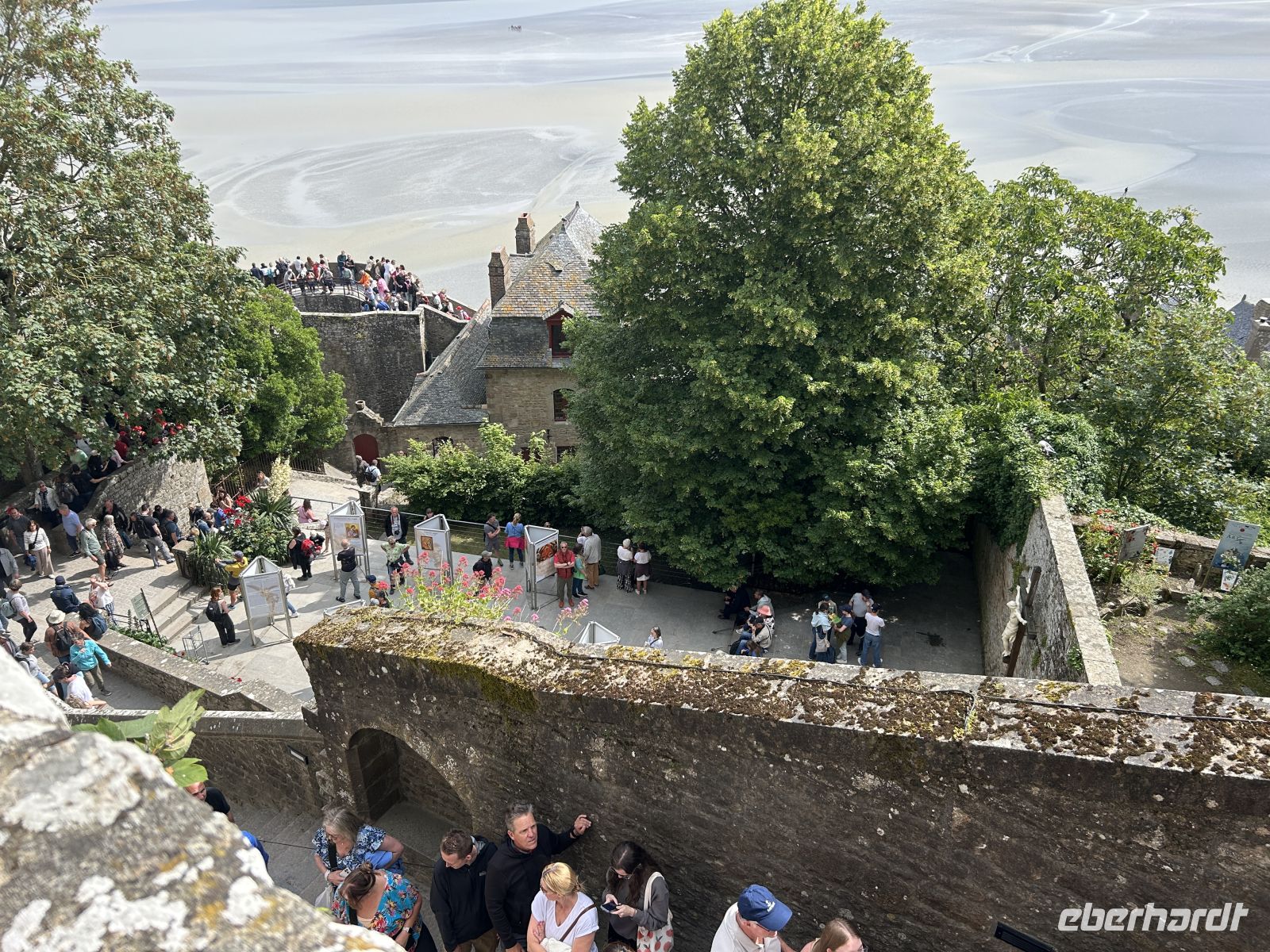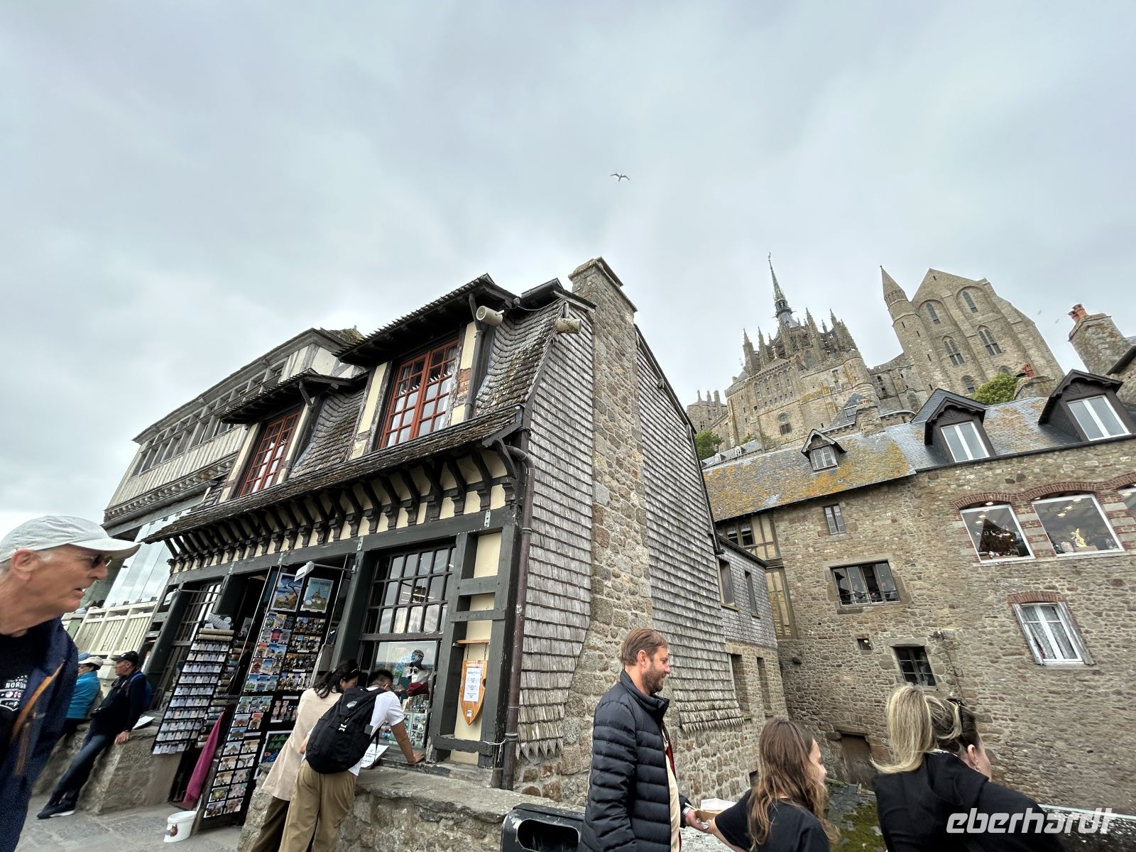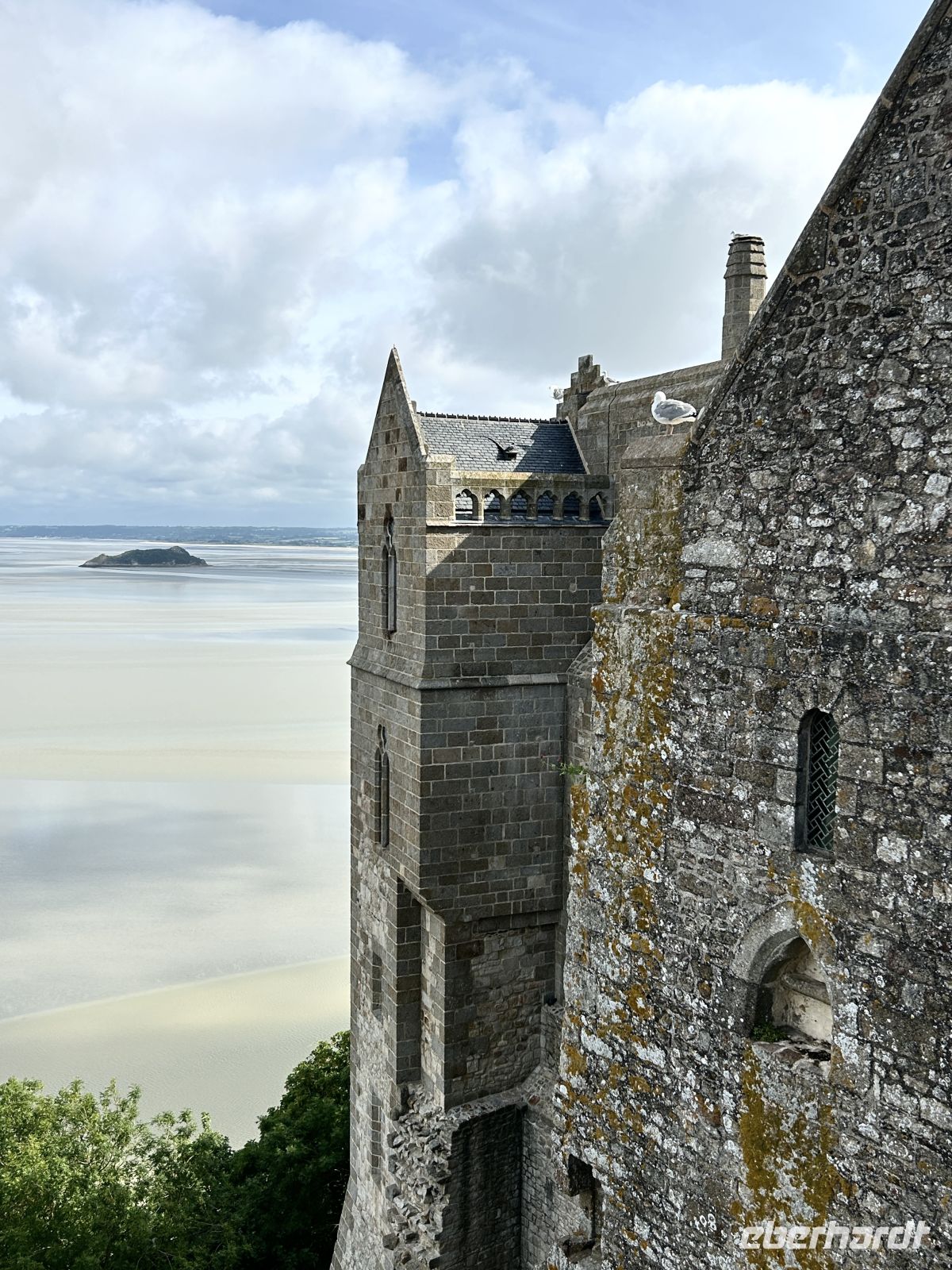 Die Abtei aus dem 8. Jahrhundert wirkt wie aus einer anderen Welt. Wir erklimmen die steilen Gassen bis zur Abtei und genießen einen Blick über das Wattenmeer – ein Ort zwischen Himmel und Erde, Spiritualität und Geschichte.
