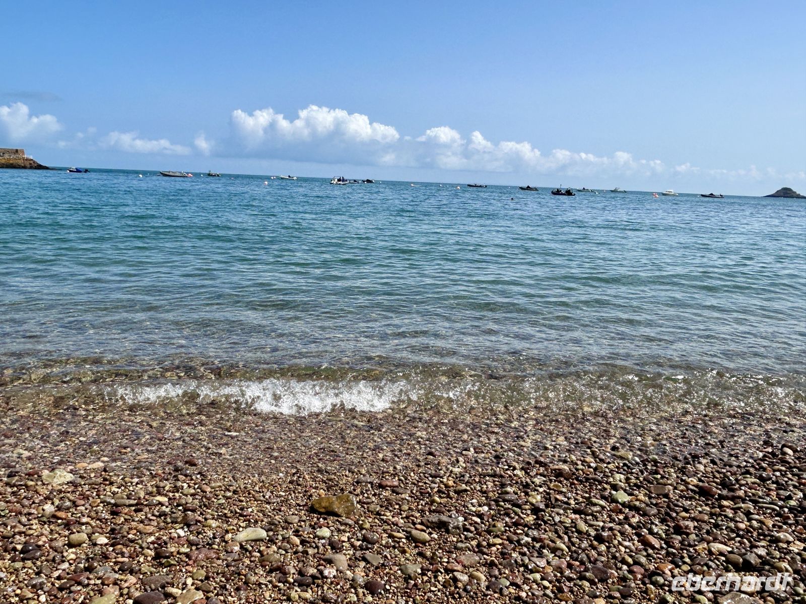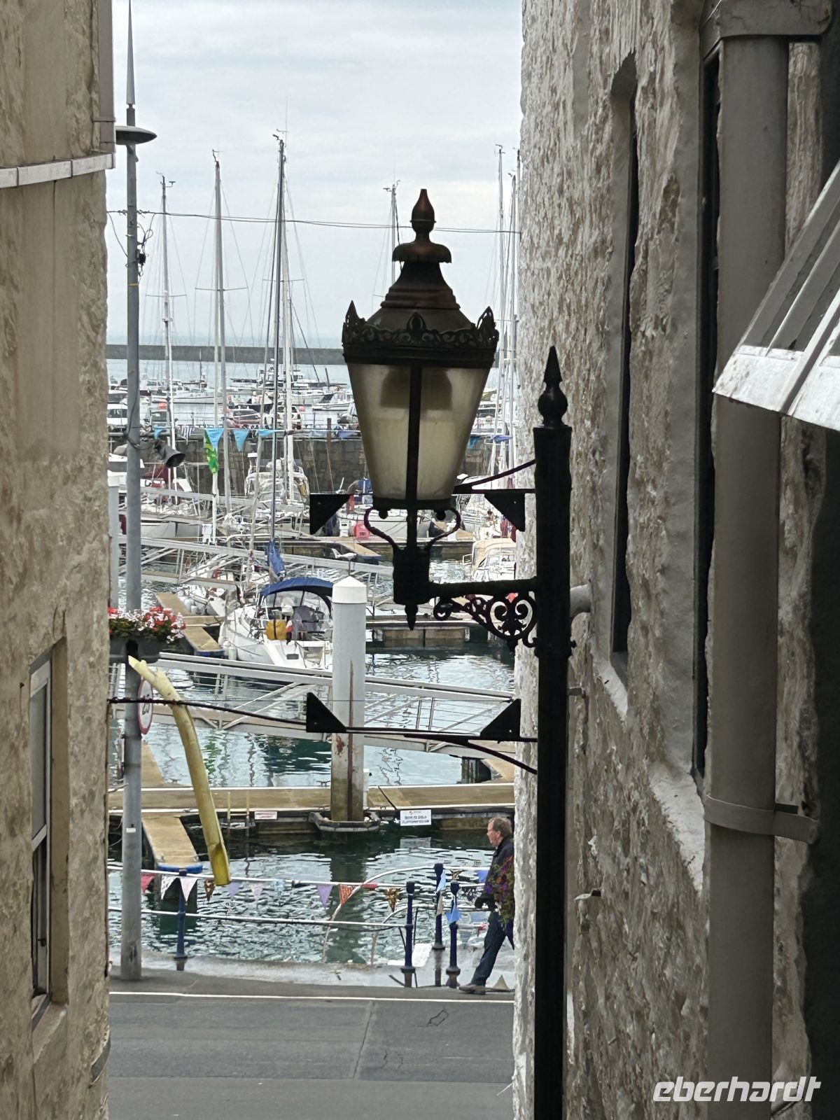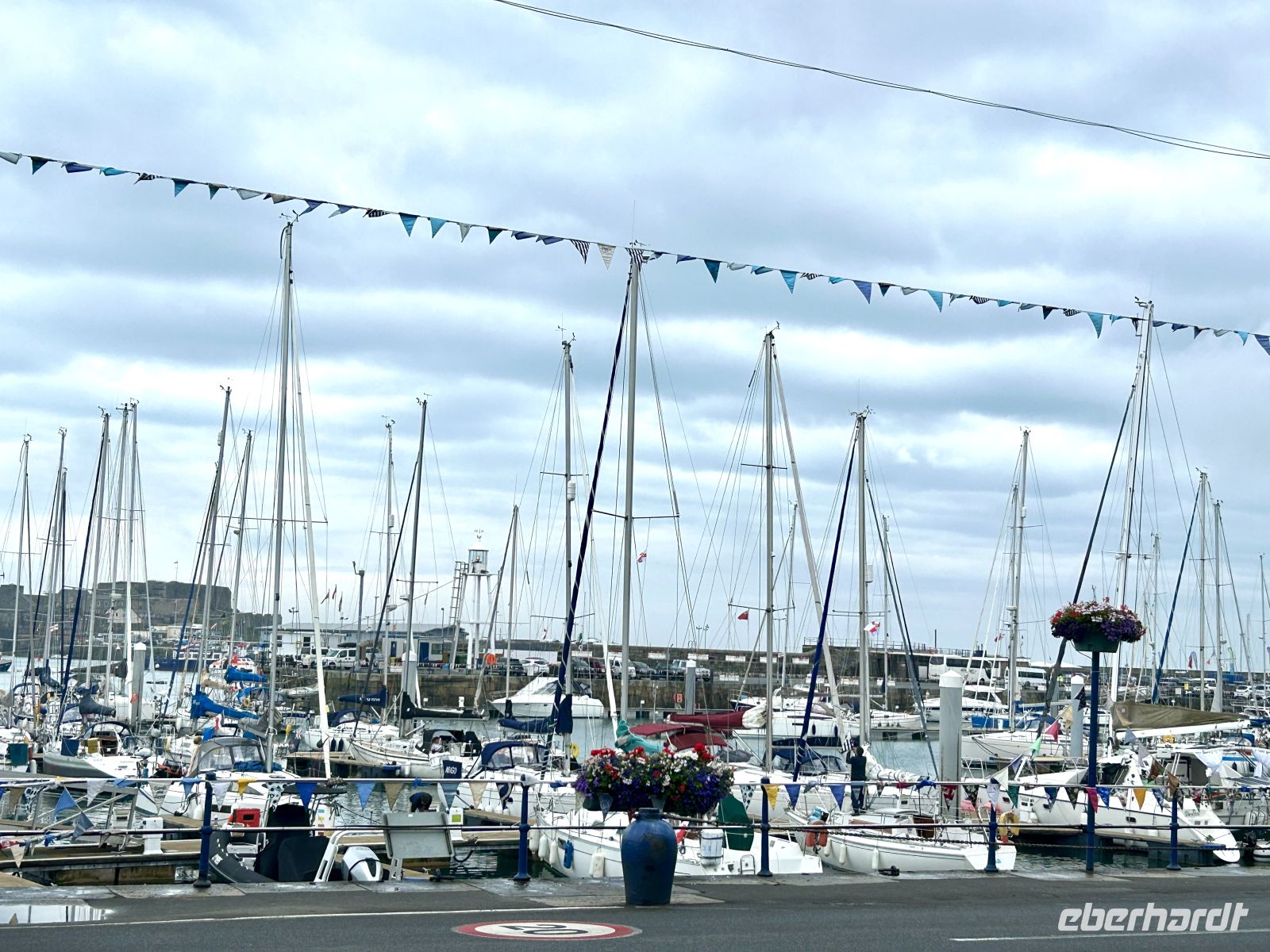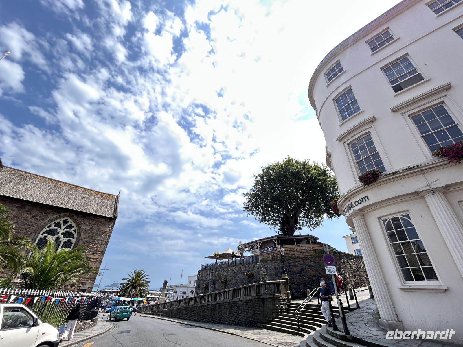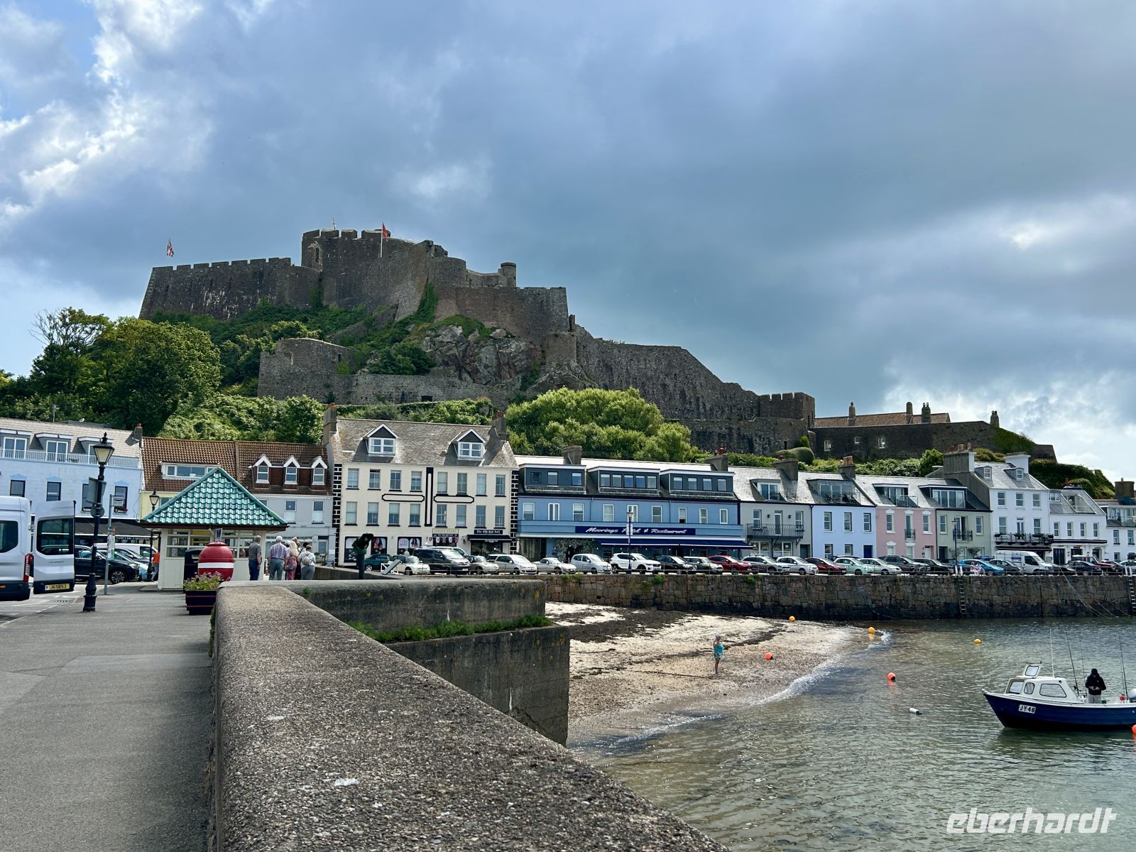 Am Vormittag erkunden wir nochmals St. Peter Port auf eigene Faust, eine kurze Stippvisite hatten wir bereits am Vortag gemeinsam mit Ken. Nun wollen wir noch etwas in den Lädchen stöbern oder schöne Fotos sammeln. Am Nachmittag setzen wir über zur größten der Kanalinseln, Jersey, und staunen über die abwechslungsreiche Küstenlinie. Vom Fährhafen aus blicken wir auf ein imposantes Fort, malerische Hafenhäuser, eine Vielzahl von Segelbooten und hören das Krächzen von Möwen, bevor wir zu unserem Hotel weiterfahren. Den Abend verbringen wir mit ersten Erkundungen entlang der Promenade von St. Helier und genießen den goldenen Abendhimmel