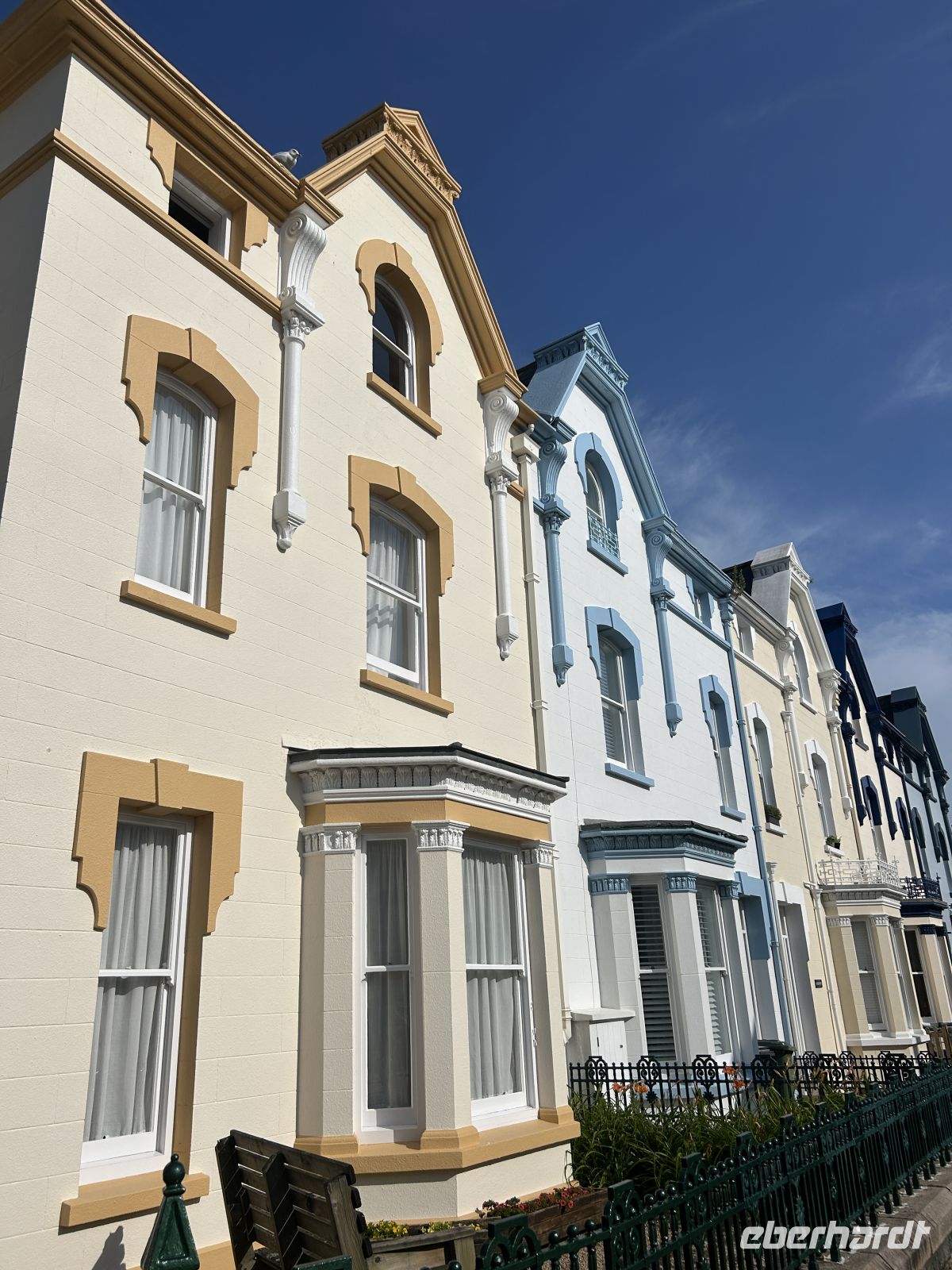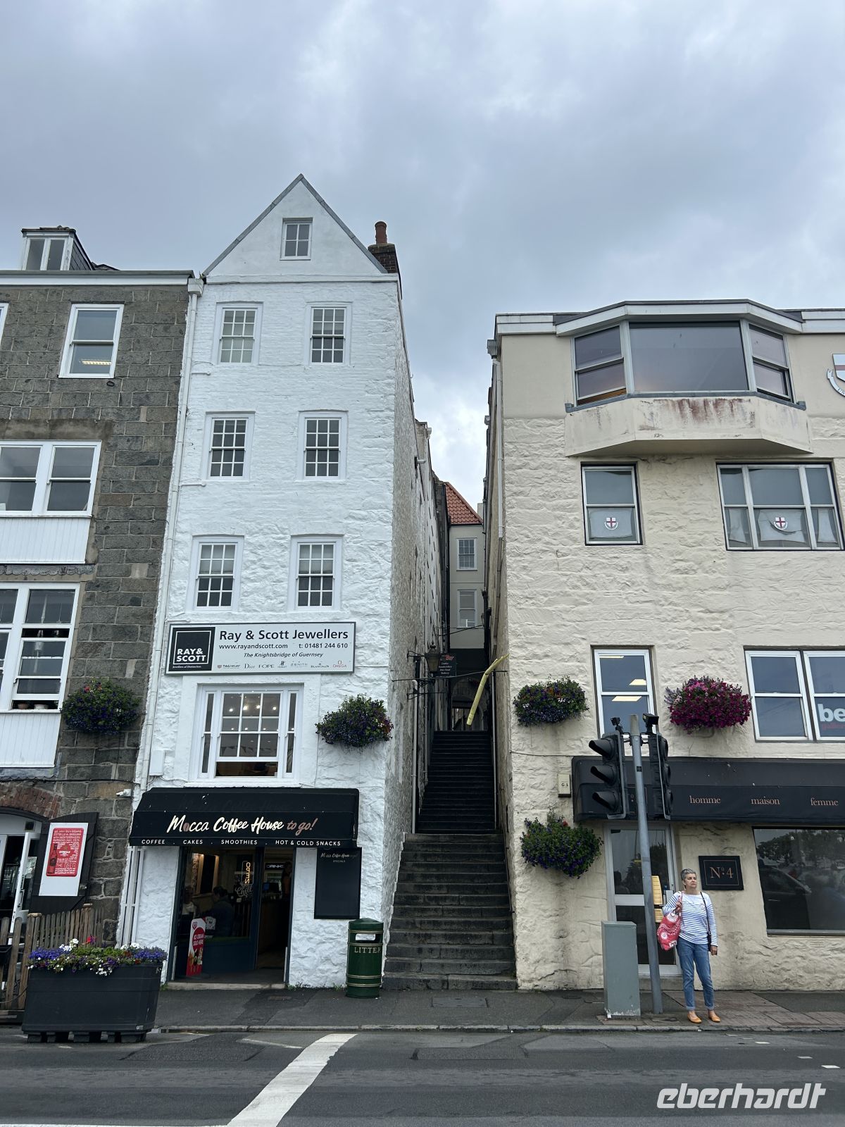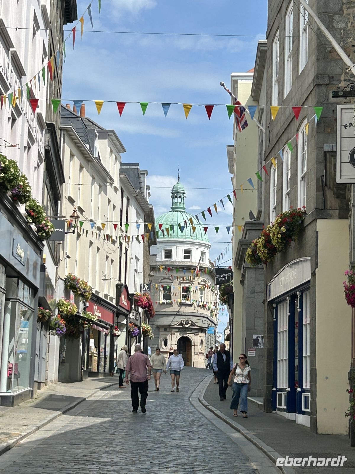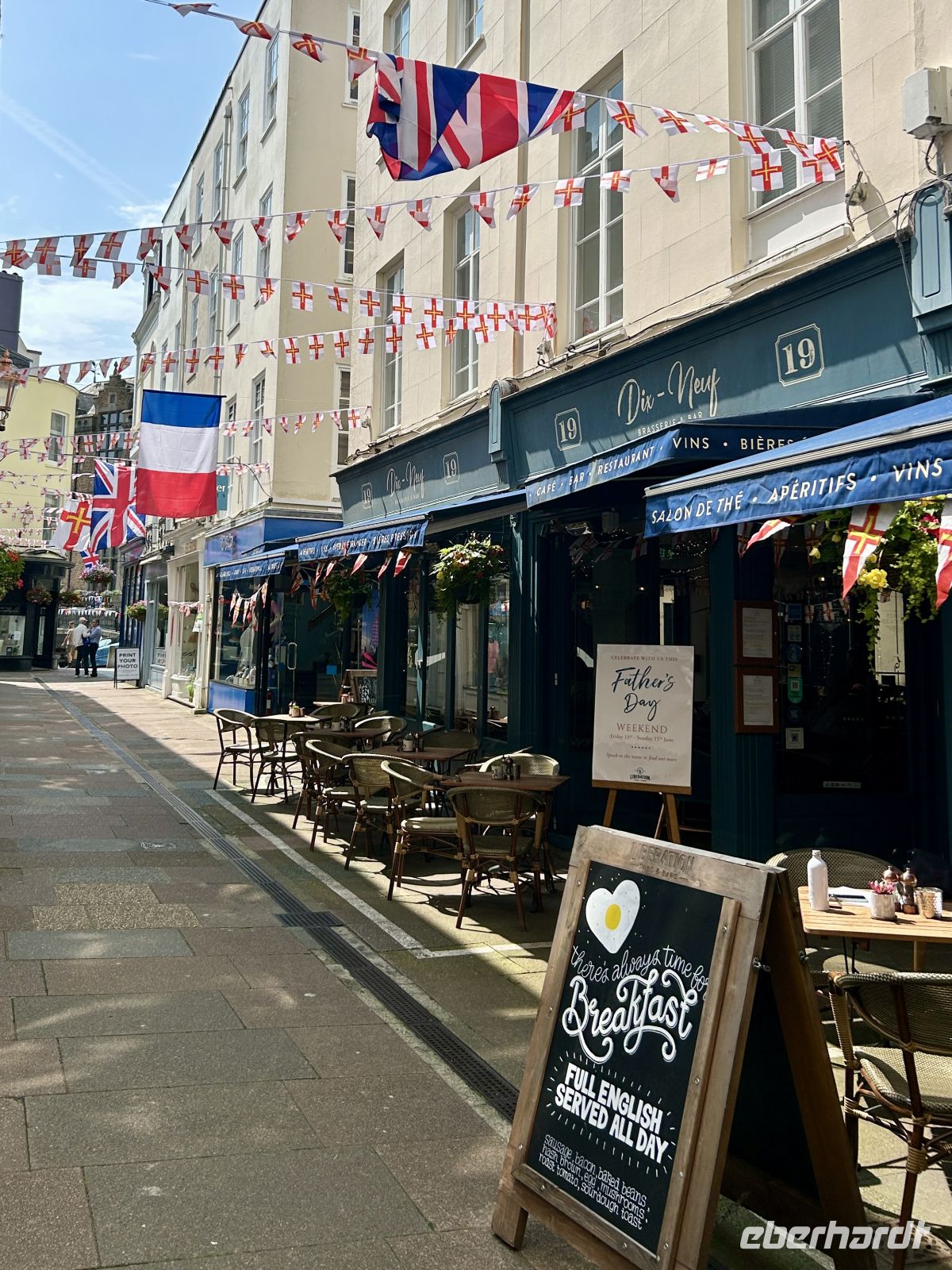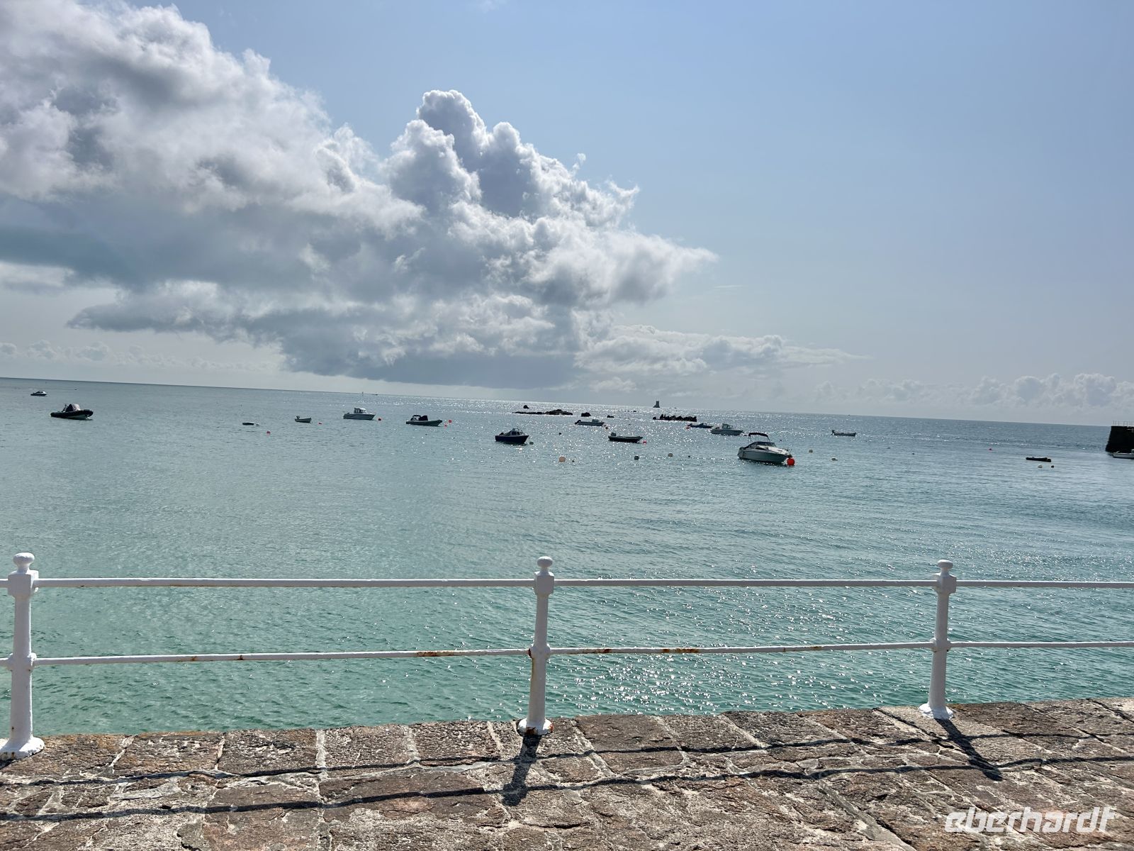 Am Vormittag erkunden wir nochmals St. Peter Port auf eigene Faust, eine kurze Stippvisite hatten wir bereits am Vortag gemeinsam mit Ken. Nun wollen wir noch etwas in den Lädchen stöbern oder schöne Fotos sammeln. Am Nachmittag setzen wir über zur größten der Kanalinseln, Jersey, und staunen über die abwechslungsreiche Küstenlinie. Vom Fährhafen aus blicken wir auf ein imposantes Fort, malerische Hafenhäuser, eine Vielzahl von Segelbooten und hören das Krächzen von Möwen, bevor wir zu unserem Hotel weiterfahren. Den Abend verbringen wir mit ersten Erkundungen entlang der Promenade von St. Helier und genießen den goldenen Abendhimmel