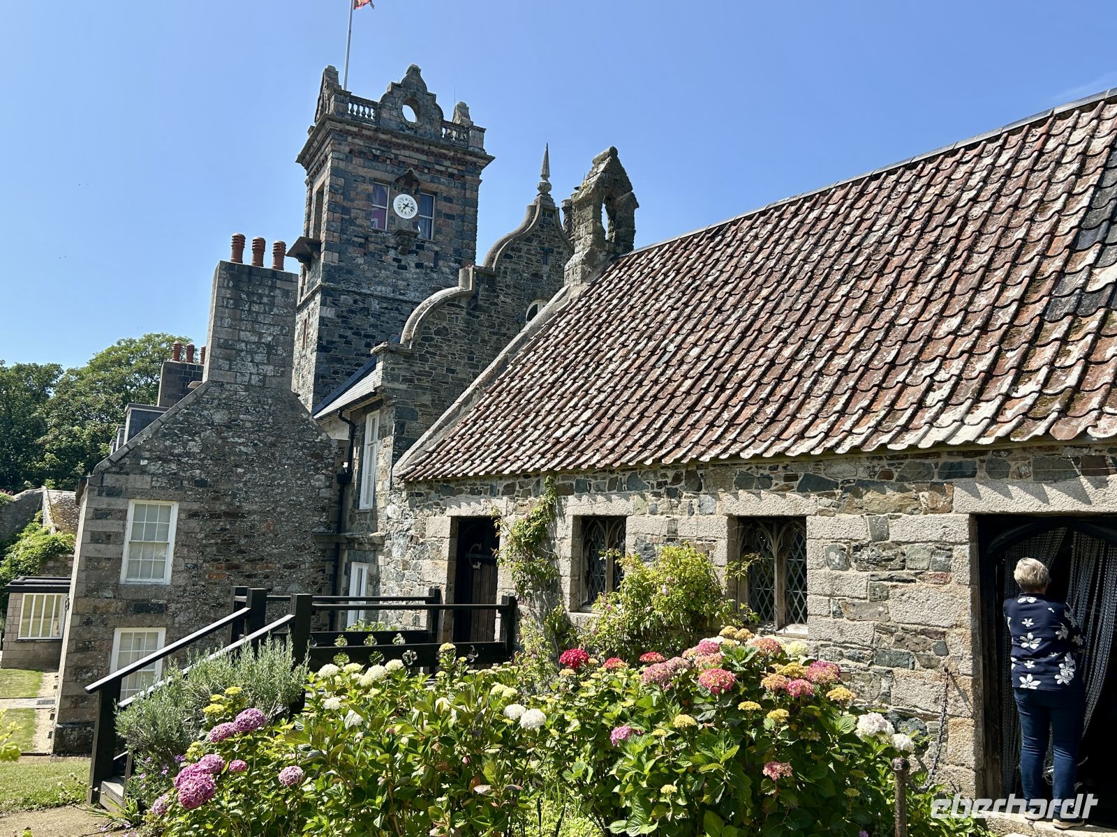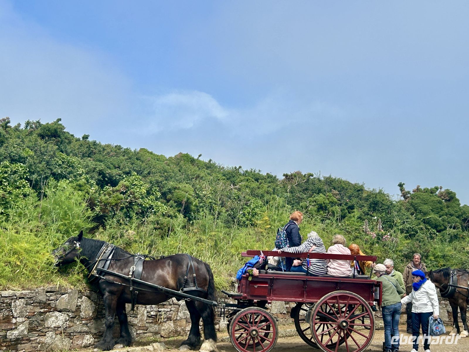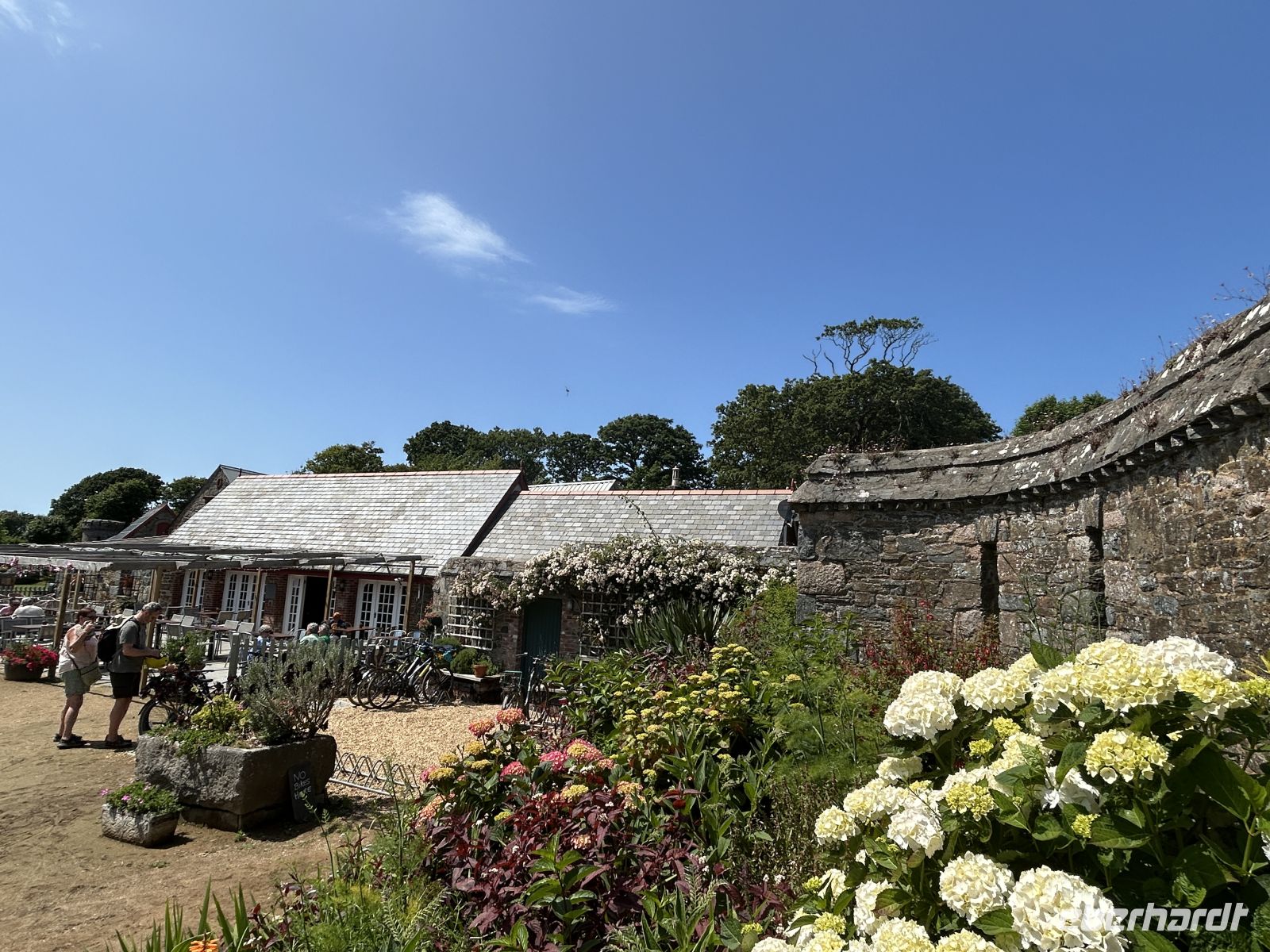 Wir setzen mit der Fähre in einer Stunde nach Sark über, wo keine Autos, sondern Pferdekutschen und Traktoren das Bild prägen. Eine Zeitreise in gewisser Weise. Sark ist nur knapp 5km lang und bis zu 2 km breit, mit einer Hochebene, die wir nach Ankunft am Hafen auf einem Anhänger vom Traktor gezogen erklimmen. Ein ausgedehnter Spaziergang führt uns zum steil über dem Meer thronenden Aussichtspunkt La Coupée – ein schmaler, windumtoster Damm, der die Hauptinsel mit Little Sark verbindet. Zur Mittagszeit lassen wir uns im charmanten Café Casanova nieder, genießen hausgemachte Quiches und frischen Salat. Am Nachmittag schlendern wir durch den Seigneurie Garden, wo üppige Blumenrabatten, versteckte Teiche und Herrschaftshäuser eine märchenhafte Kulisse bieten. Gegen 16h geht es wieder hinunter zum Hafen mit seiner malerischen Küstenszenerie und wir nehmen die letzte Fähre zurück nach Guernsey. Sark verfällt wieder in seinen Dornröschenschlaf.