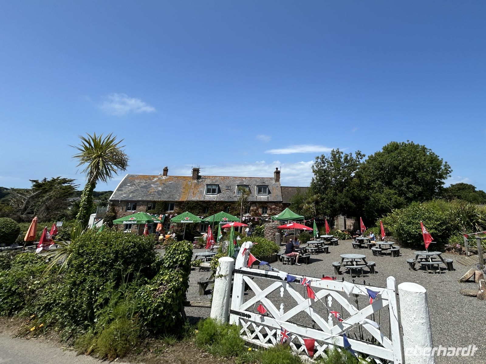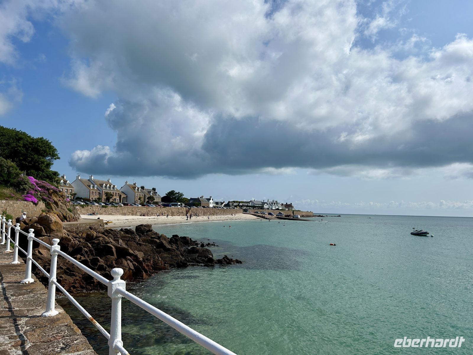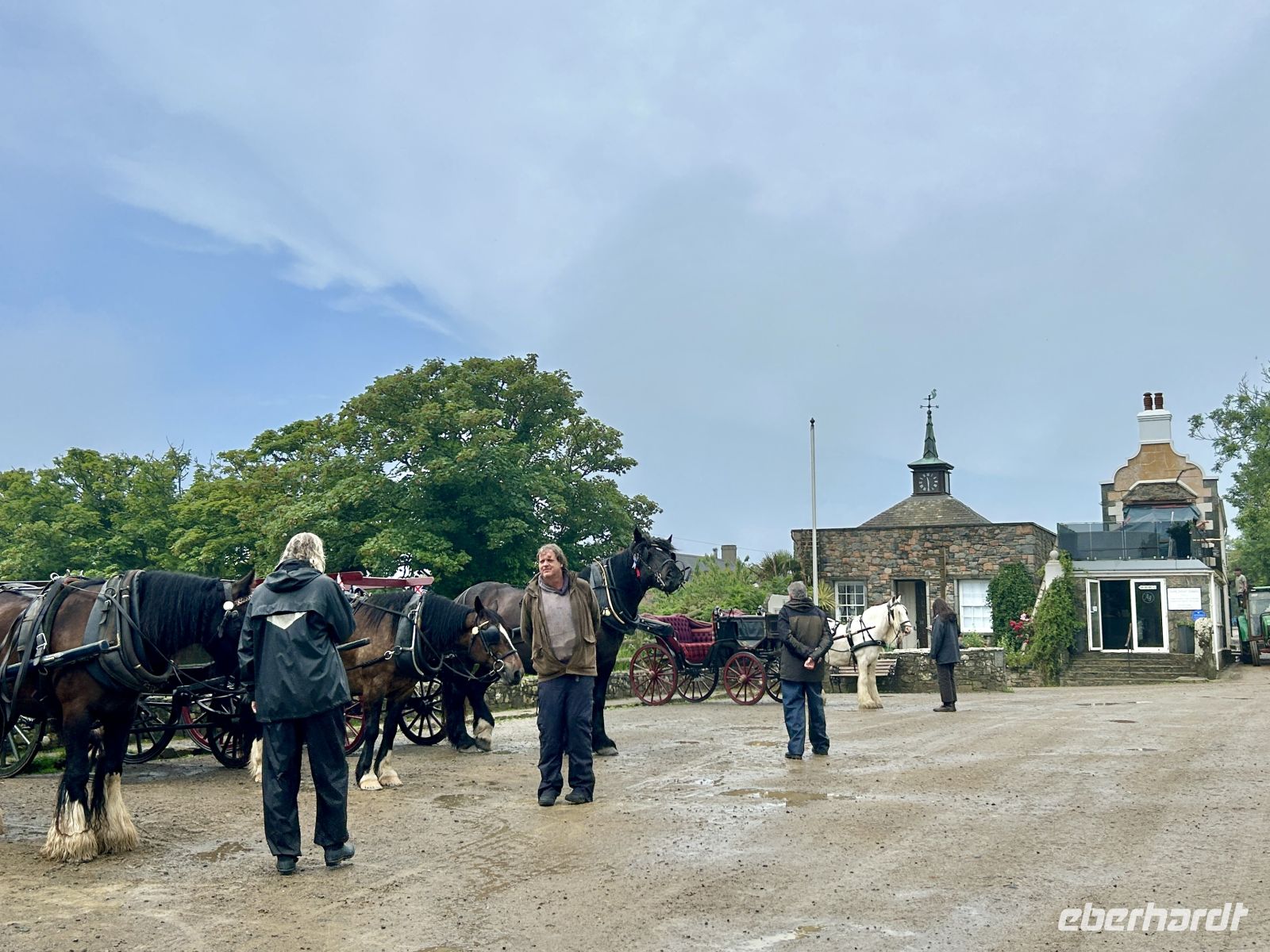 Wir setzen mit der Fähre in einer Stunde nach Sark über, wo keine Autos, sondern Pferdekutschen und Traktoren das Bild prägen. Eine Zeitreise in gewisser Weise. Sark ist nur knapp 5km lang und bis zu 2 km breit, mit einer Hochebene, die wir nach Ankunft am Hafen auf einem Anhänger vom Traktor gezogen erklimmen. Ein ausgedehnter Spaziergang führt uns zum steil über dem Meer thronenden Aussichtspunkt La Coupée – ein schmaler, windumtoster Damm, der die Hauptinsel mit Little Sark verbindet. Zur Mittagszeit lassen wir uns im charmanten Café Casanova nieder, genießen hausgemachte Quiches und frischen Salat. Am Nachmittag schlendern wir durch den Seigneurie Garden, wo üppige Blumenrabatten, versteckte Teiche und Herrschaftshäuser eine märchenhafte Kulisse bieten. Gegen 16h geht es wieder hinunter zum Hafen mit seiner malerischen Küstenszenerie und wir nehmen die letzte Fähre zurück nach Guernsey. Sark verfällt wieder in seinen Dornröschenschlaf.