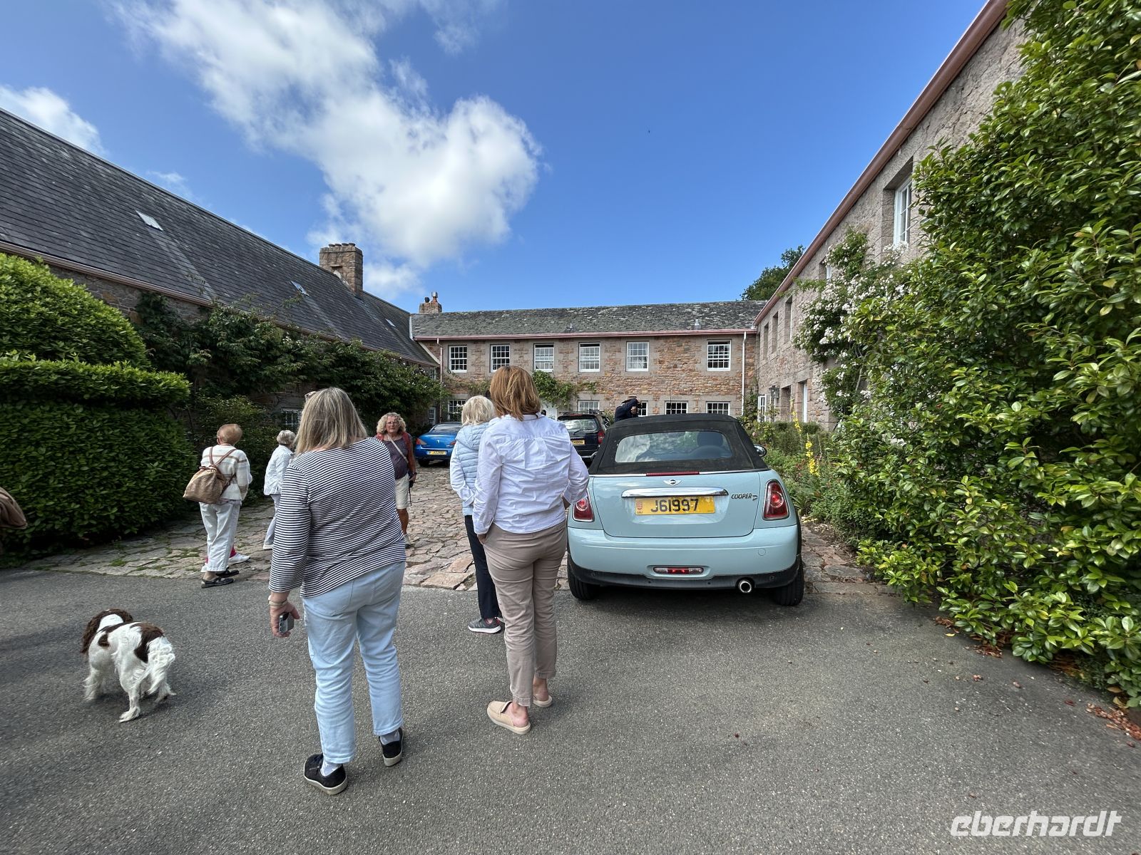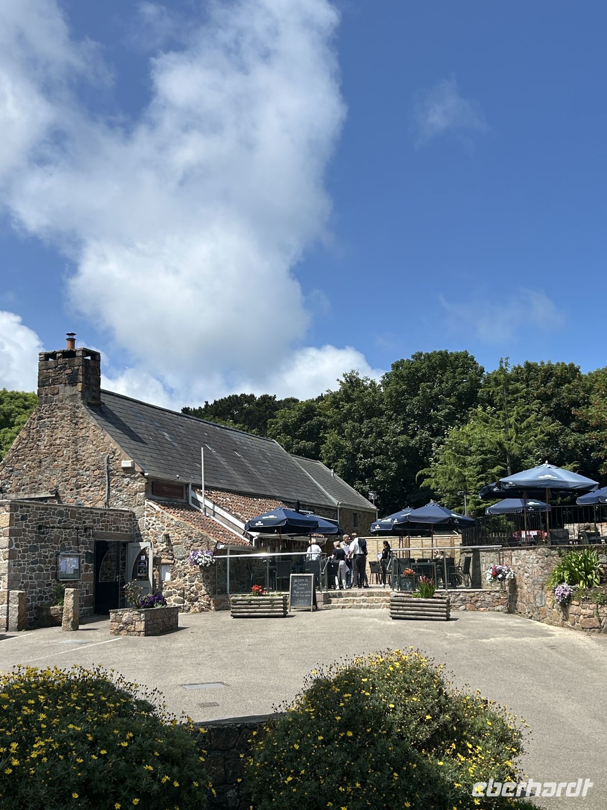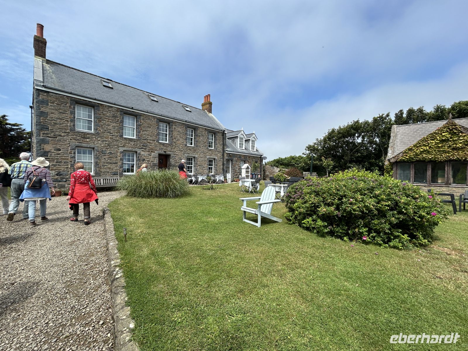 Bei sanftem Sonnenschein starten wir unsere Gartentour: Zuerst führt uns unser Weg in die prachtvolle Welt der Orchidfoundation von Eric Young, wo uns bunte Orchideen aus aller Welt verzücken. Nicht minder eindrucksvoll ist der Private Garten von Ann und Markus, wo Farnkaskaden und exotische Palmen neben Hortensien eine fast tropische Atmosphäre schaffen. Wir spazieren den Hang hinunter und der Hausherr erzählt uns die Geschichte der Entstehung des Gartens. Die Mittagspause an der Portelet Bay ist gut gewählt, es schmeckt uns vorzüglich im Portelet Inn. Weiter geht es zum eleganten Samares Manor, dessen weitläufiger, famose Botanische Garten mit Rosenbeeten, Laubengängen, Rasenteppichen und verschlungenen Wasserläufen verzaubert. Dort setzen wir uns zu einem klassischen Cream Tea: zarte Scones, dicke Clotted Cream und fruchtige Erdbeermarmelade schmecken unvergleichlich – begleitet von duftendem Schwarztee mit Milch. Abends freuen wir uns wieder über das vielseitige und reichhaltige Buffet in unserem Hotel The Merton. Gutes Essen ist eben die halbe Miete.