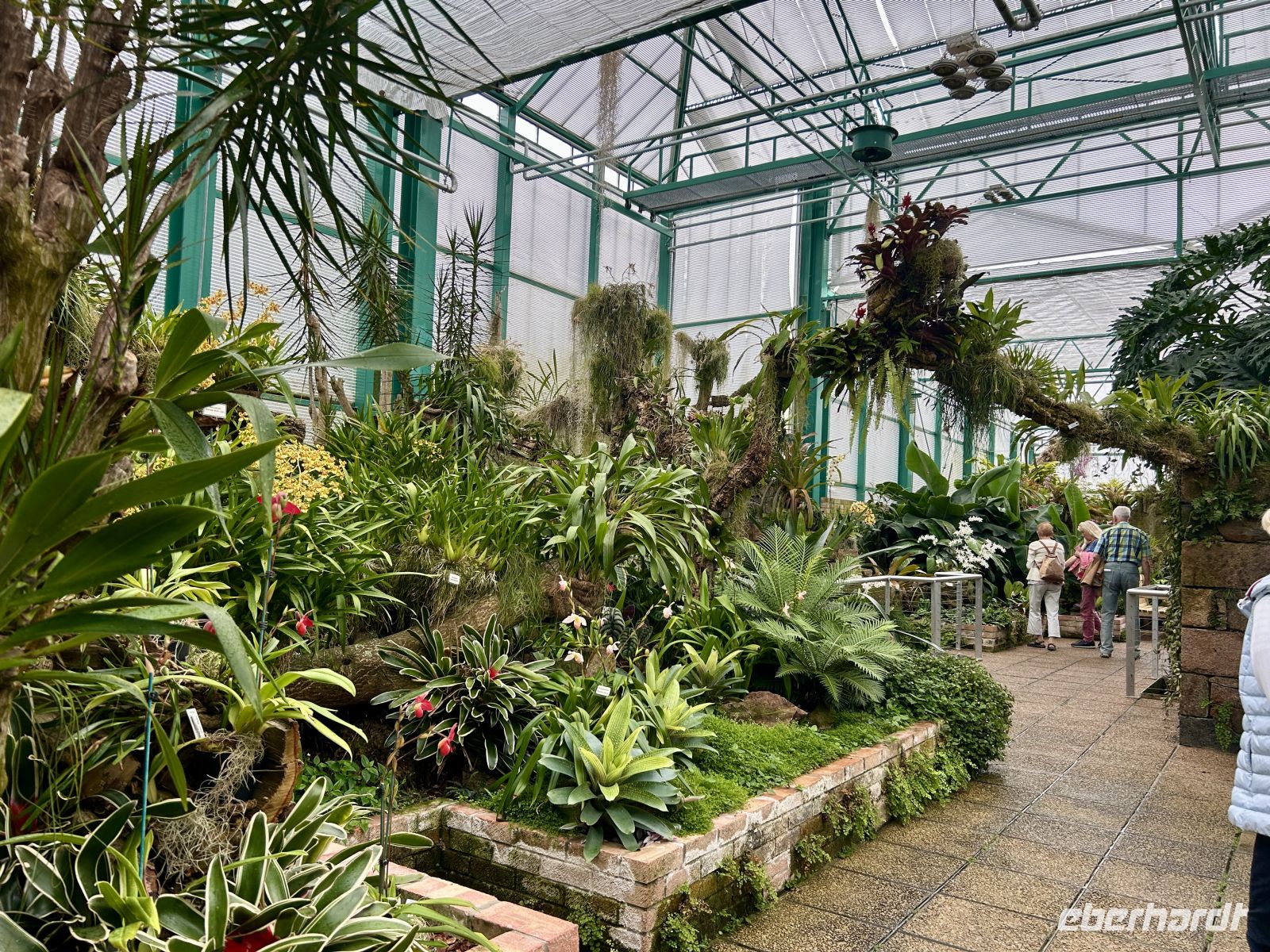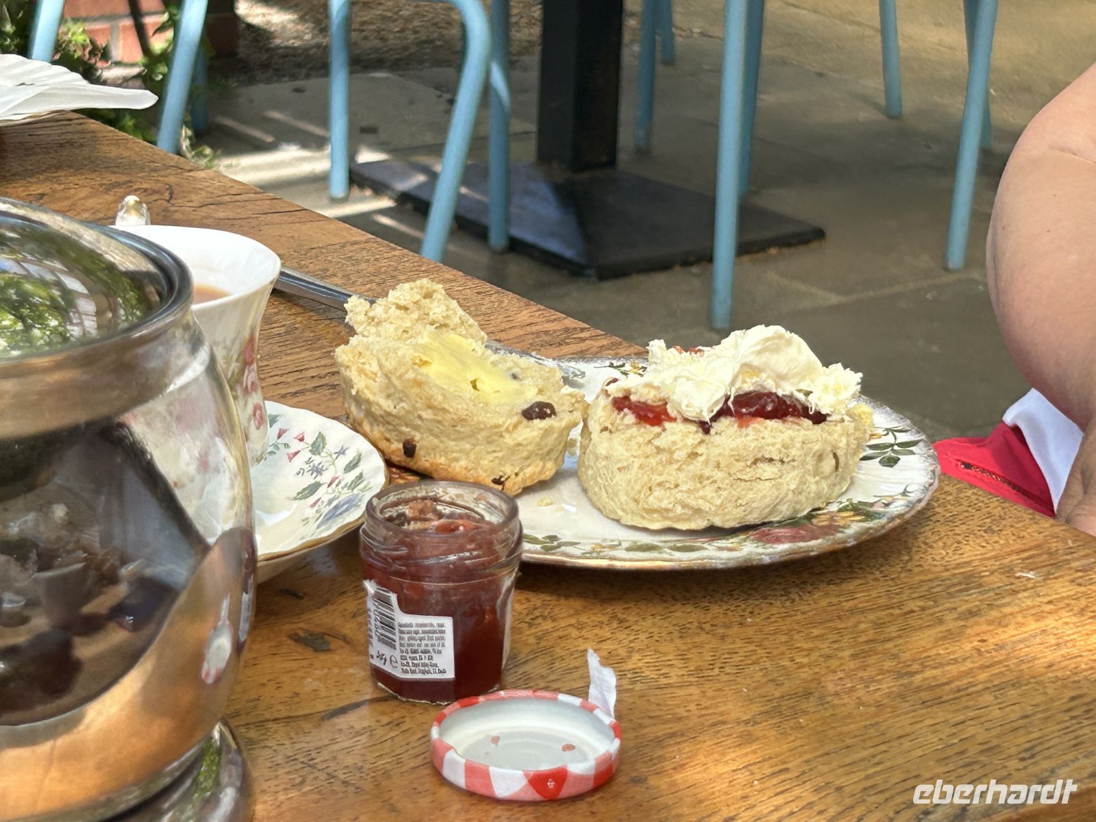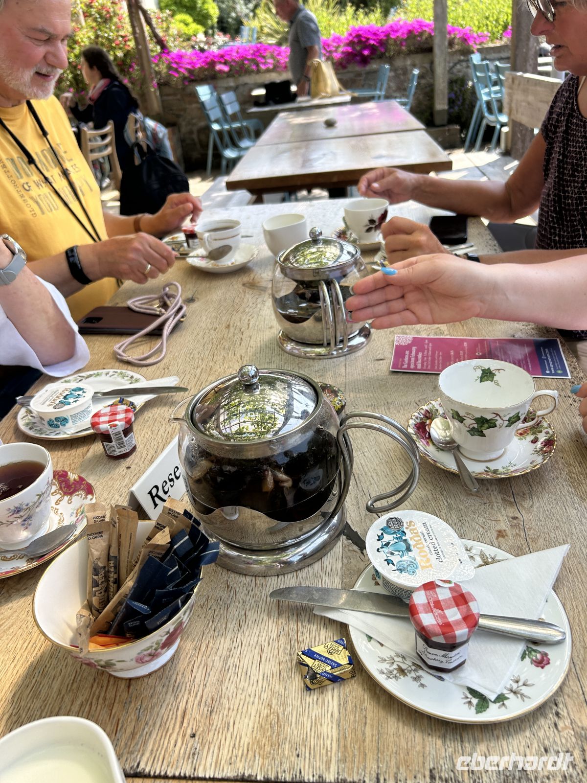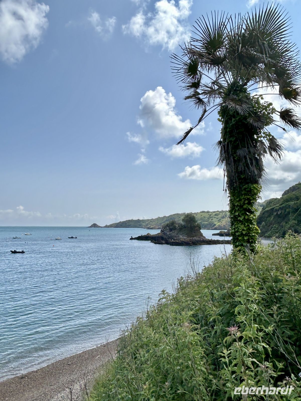 Bei sanftem Sonnenschein starten wir unsere Gartentour: Zuerst führt uns unser Weg in die prachtvolle Welt der Orchidfoundation von Eric Young, wo uns bunte Orchideen aus aller Welt verzücken. Nicht minder eindrucksvoll ist der Private Garten von Ann und Markus, wo Farnkaskaden und exotische Palmen neben Hortensien eine fast tropische Atmosphäre schaffen. Wir spazieren den Hang hinunter und der Hausherr erzählt uns die Geschichte der Entstehung des Gartens. Die Mittagspause an der Portelet Bay ist gut gewählt, es schmeckt uns vorzüglich im Portelet Inn. Weiter geht es zum eleganten Samares Manor, dessen weitläufiger, famose Botanische Garten mit Rosenbeeten, Laubengängen, Rasenteppichen und verschlungenen Wasserläufen verzaubert. Dort setzen wir uns zu einem klassischen Cream Tea: zarte Scones, dicke Clotted Cream und fruchtige Erdbeermarmelade schmecken unvergleichlich – begleitet von duftendem Schwarztee mit Milch. Abends freuen wir uns wieder über das vielseitige und reichhaltige Buffet in unserem Hotel The Merton. Gutes Essen ist eben die halbe Miete.