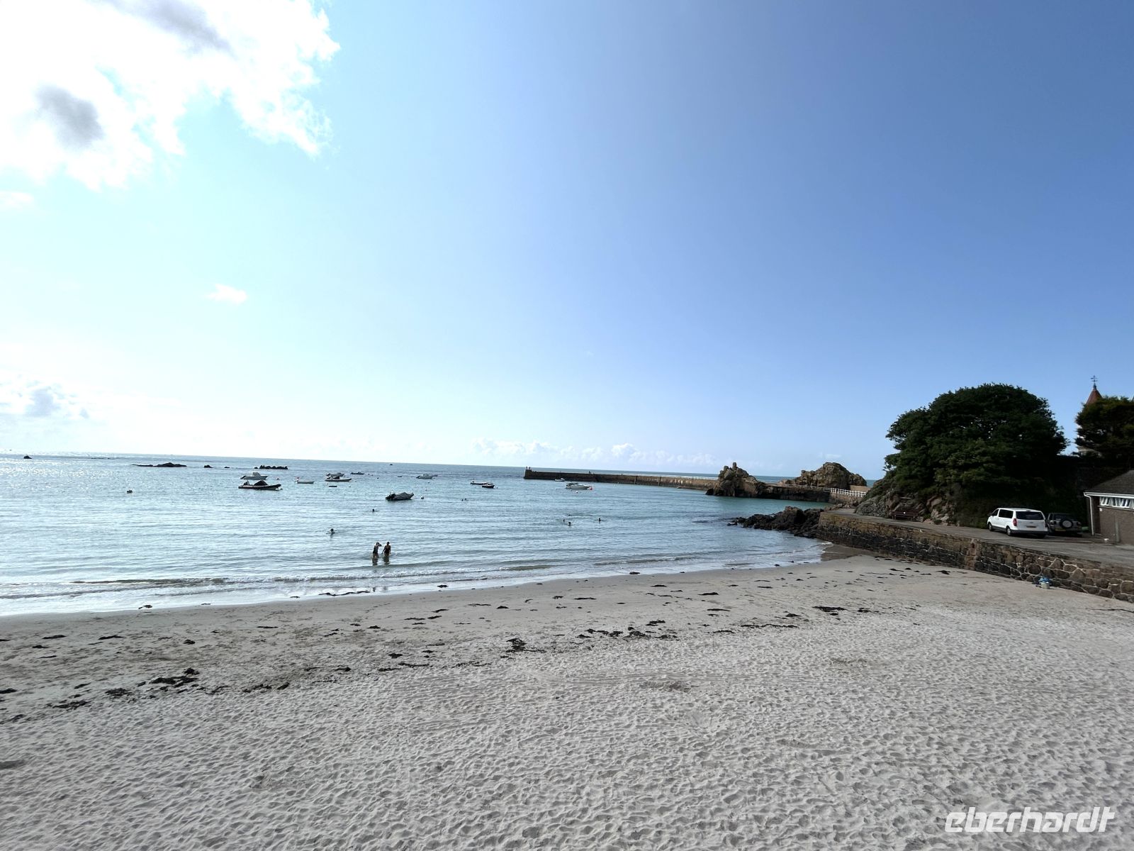 Wir umrunden Jersey in Richtung Osten und erreichen zuerst den stillen Rocque Bay Beach, wo schroffe Felsformationen im Wechselspiel von Ebbe und Flut geheimnisvolle Buchten freigeben. Entlang unzähliger kleiner Buchten und Strände erreichen wir mittags die „Fontaine Tavern“, die wiederum ein leckeres Mittagessen ermöglicht. Weiter zieht es uns zum majestätischen Grosnez Point, einer Ruine auf schroffen Klippen, wo sich Wind und Meer zu einem spektakulären Schauspiel vereinen. Am Nachmittag bestaunen wir den malerischen Leuchtturm von La Corbière, der wie ein Wächter über Brandung und Schafherden wacht, und gönnen uns genüsslich eine Jersey Icecream an der Bude. Letzte Rast in der sanften Bucht von St. Brelade’s Bay, wo weicher Sand und ruhiges Wasser zum Baden einladen. Wir stapfen über den Sand zur Kirche St. Brelade und sehen auch die Fisherman’s chapel. Die weit geschwungene Bucht von St. Aubin’s Bay entlang geht es auf der Rückfahrt zum Hotel.