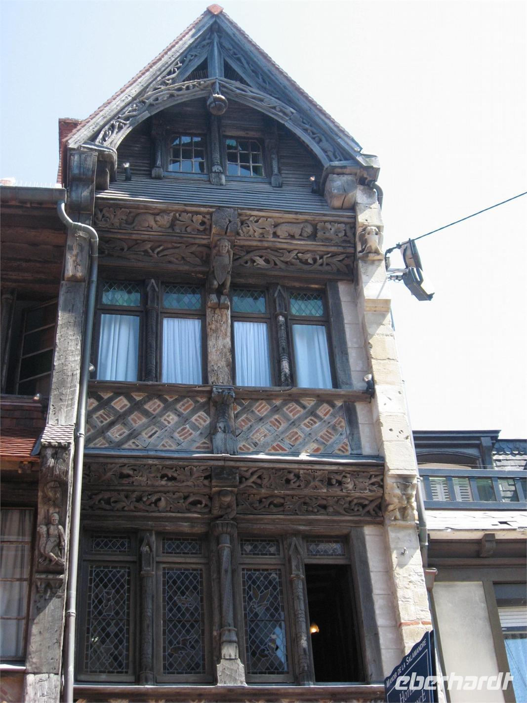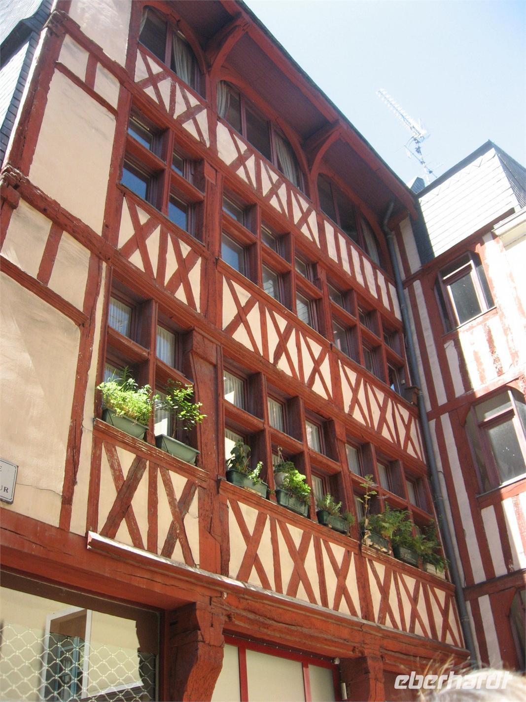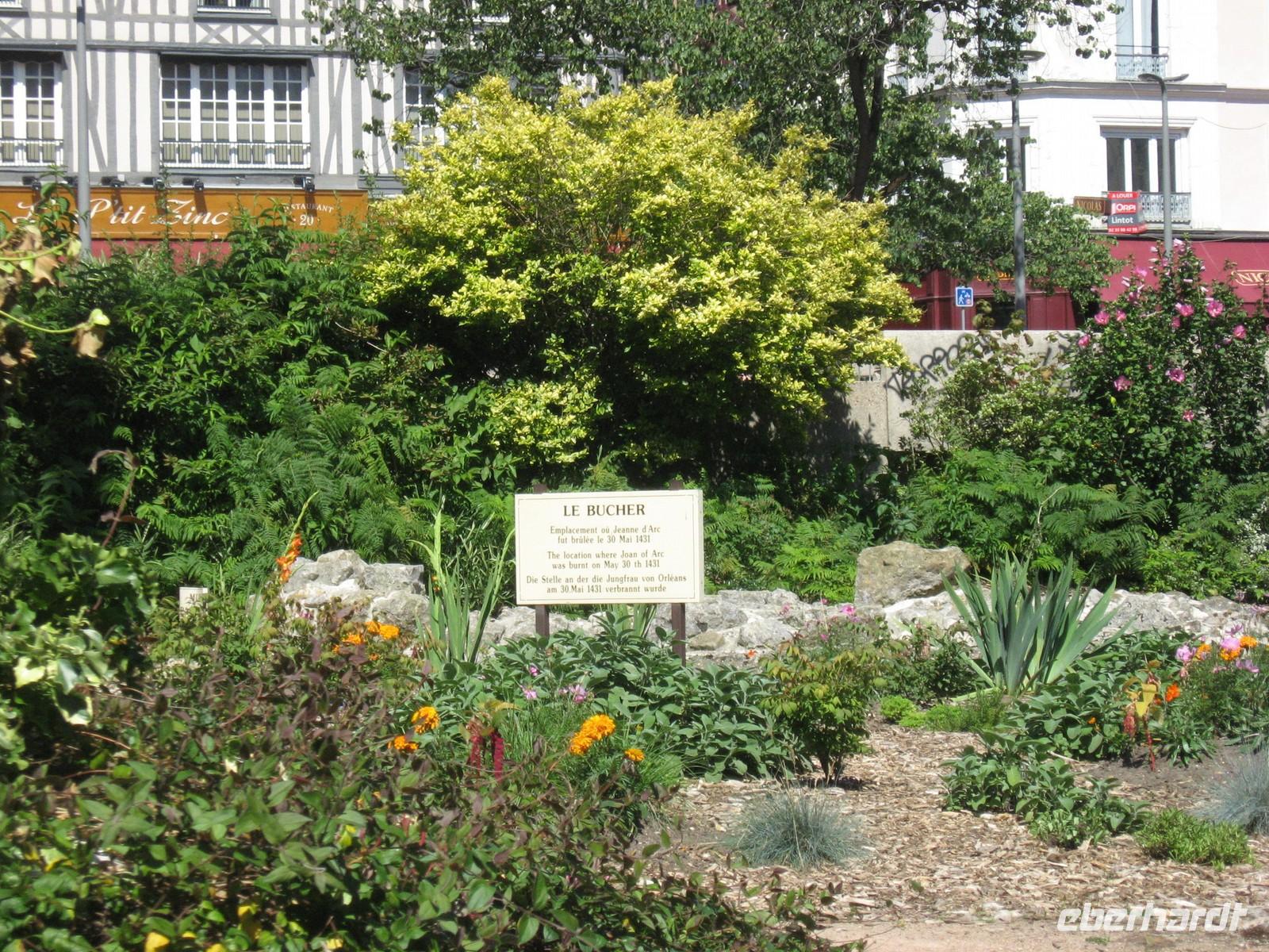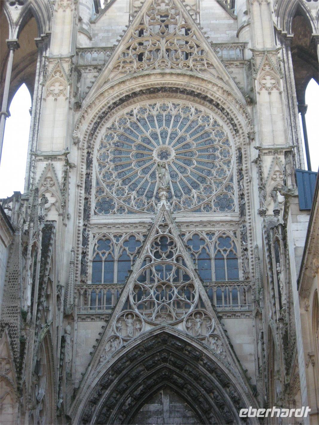 Mittags geht es zurück nach Rouen, der Stadt mit den 100 Kirchtürmen, zunächst zum Mittagessen und dann zur Stadtbesichtigung. Rouen ist die Hauptstadt der oberen Normandie. Die Kathedrale und ihre Rosetten sind nicht zuletzt durch einige Gemälde von Claude Monet berühmt geworden. Unser Stadtrundgang führt uns auch durch die Straßen und Gassen der Stadt, wir sehen viele Fachwerkhäuser, den reich geschmückten Uhrturm () und natürlich den alten Marktplatz, auf dem Johanna von Orléans mit 19 Jahren im Jahre 1431 auf dem Scheiterhaufen verbrannt worden ist.