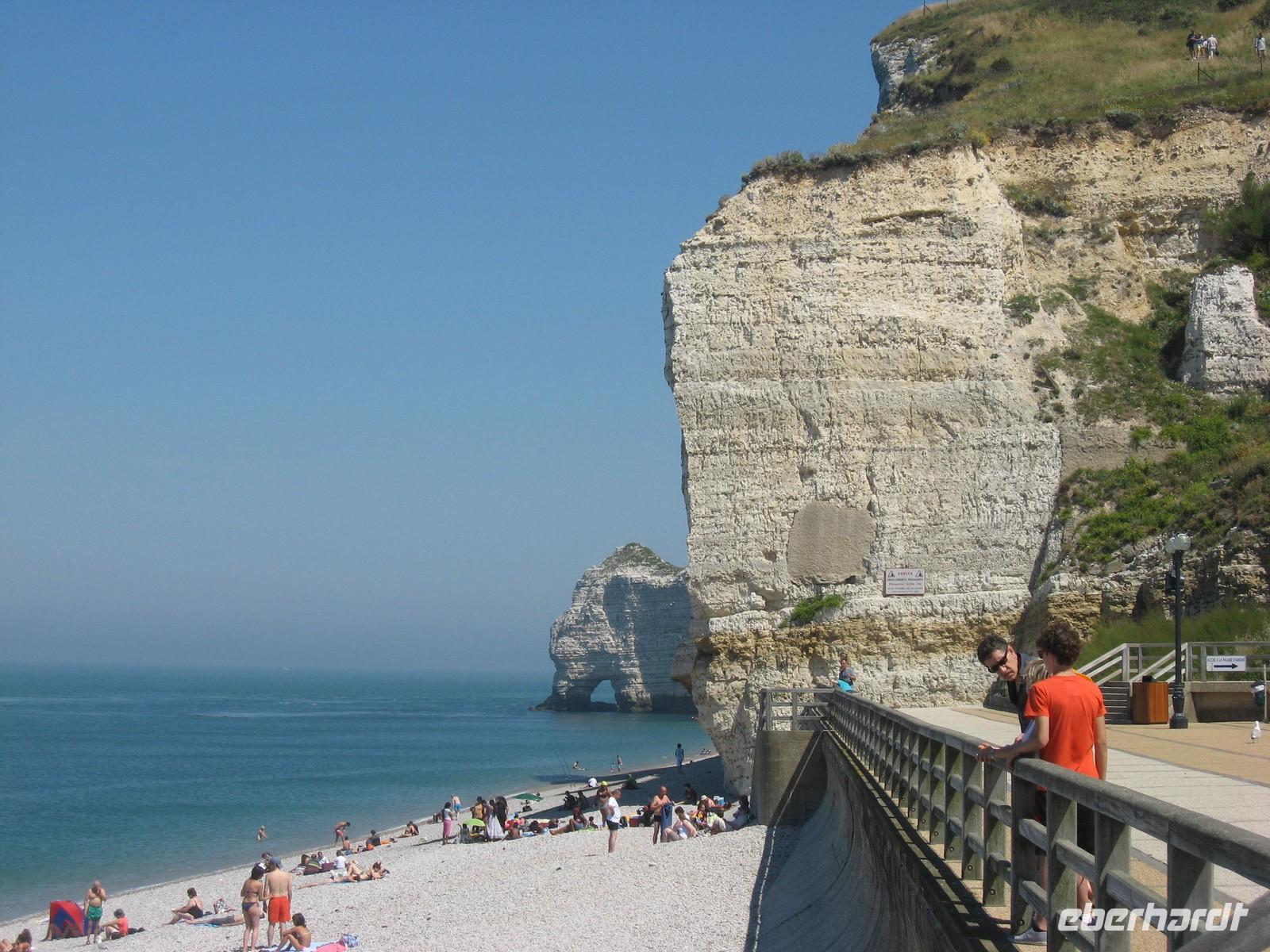 Hier stehen zu beiden Seiten des Strandes beeindruckende Felsentore (auch diese Ansichten sind durch Gemälde von Claude Monet und anderen Malern berühmt geworden).