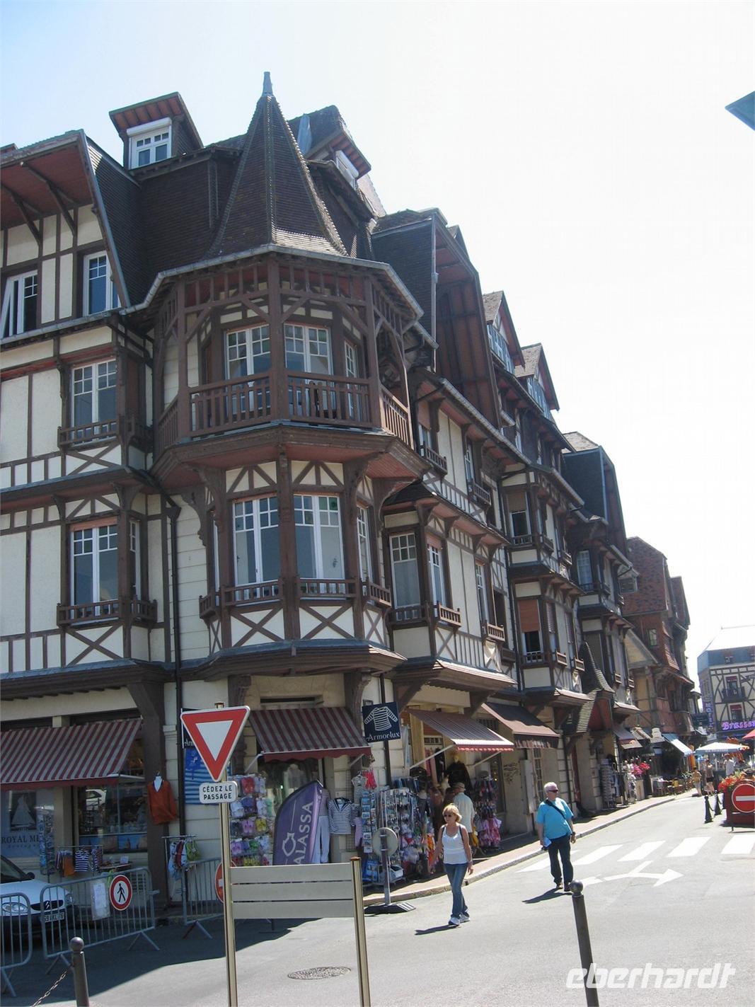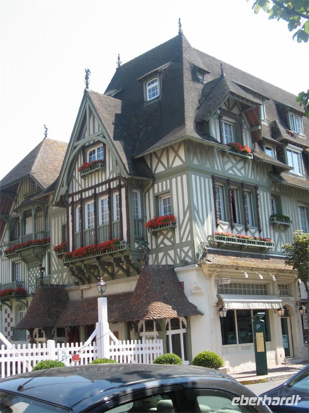 In dem mondänen Badeort Deauville, den wir anschließend besuchen, findet alljährlich das amerikanische Filmfestival statt. Alleine der Weg über die hölzerne Promenade am Strand und der Blick in die dahinter gelegenen « pompejanischen » Bäder lohnen den Besuch.