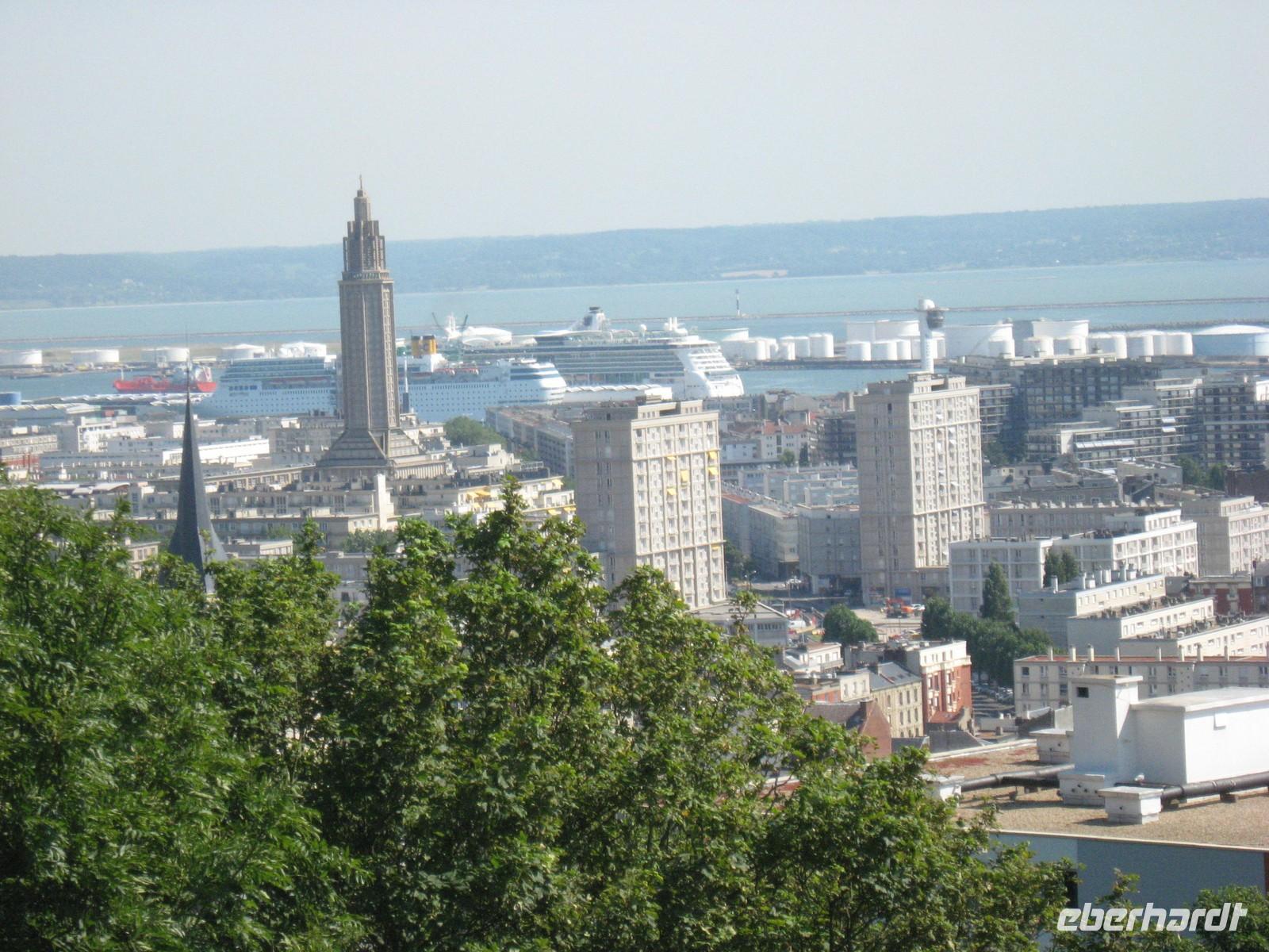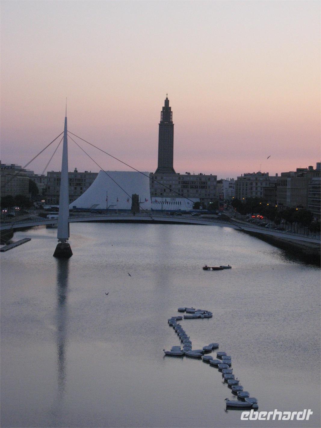 Wir machen uns frisch und alle, die nach dem langen Tag noch Lust haben, machen einen Spaziergang zum Hafen von Le Havre und zurück in die Stadt, die - nach dem zweiten Weltkrieg fast völlig zerstört - von dem berühmten Architekten Auguste Perret neu geplant und mit relativ geringen finanziellen Mitteln und unter Verwendung von viel Beton zu einer hochinteressanten Stadt geworden ist, die seit 2005 UNESCO-Weltkulturerbe ist.
