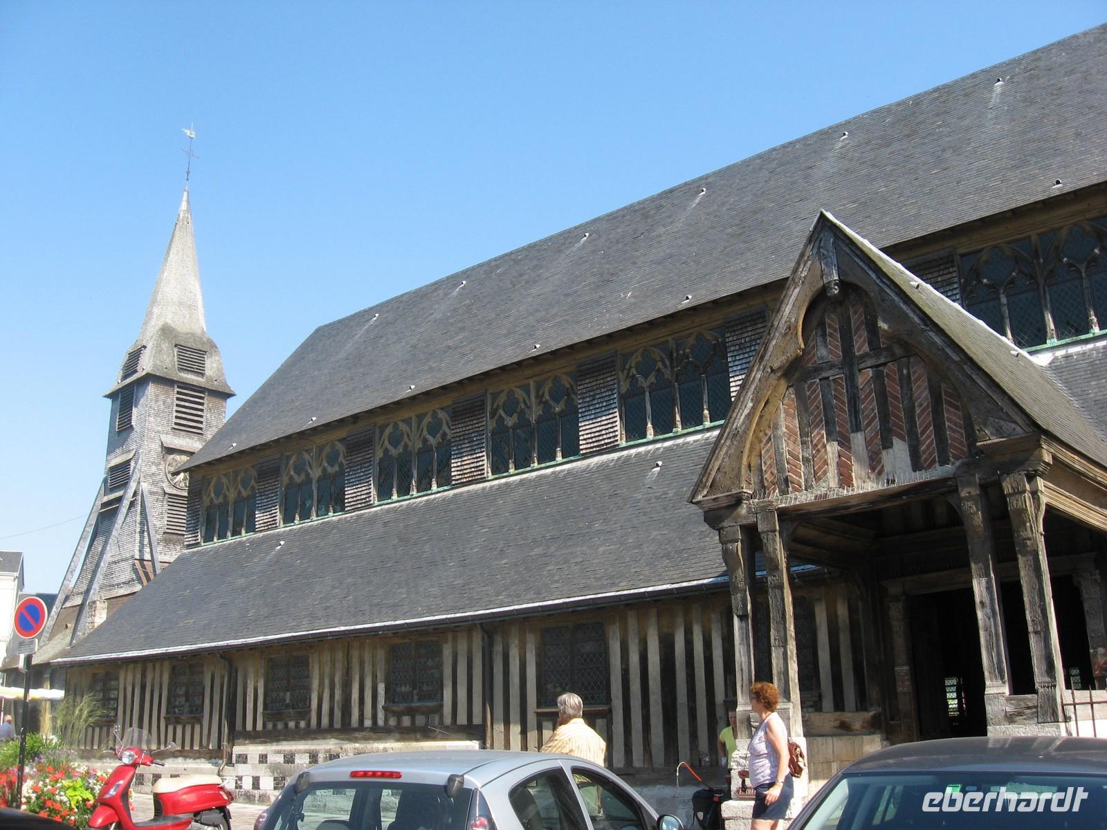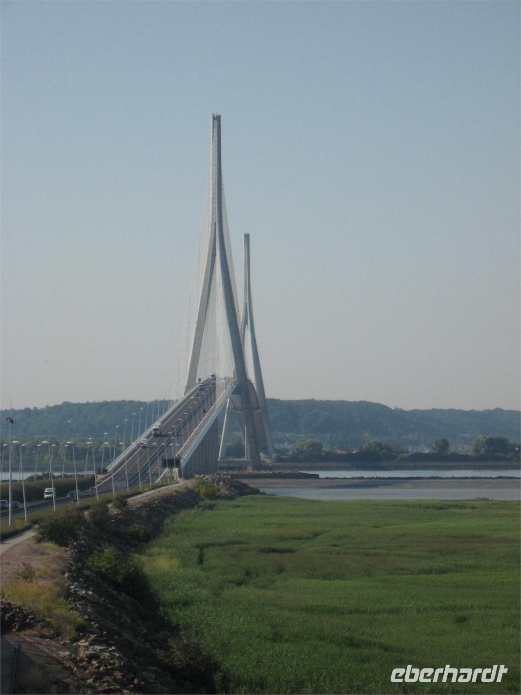 Nach dem Frühstück fahren wir über die beeindruckende Schrägseilbrücke über die Seinemündung in die früher wichtige Hafenstadt Honfleur. Um das Hafenbecken aus dem 17. Jahrhundert herum stehen alte 6-stöckige Häuser und nicht weit davon entfernt die alten Salzlager und eine tolle Holzkirche.