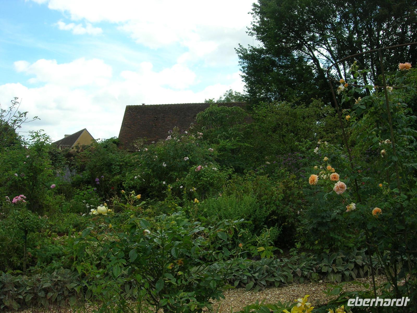 Wir hingegen stiegen in den Bus und fuhren in den Osten der Normandie, ins Perche. In Préaux-au-Perche hat Monsieur François um den Hof seines Bauernhauses herum ab 1995 ein ganz besonders schönes Gartenreich erschaffen. Zu den besonderen Höhepunkt dieses Garten zählt, der Blaue Garten und der Rosengarten, der jedoch durch die letzen Regenwochen etwas gelitten hatte. Nach einer Gartenführung durch den leitenden Gärtner genossen wir die angenehme Spätnachmittagsstimmung in der normannischen Landschaft bei einem Glas Cidre bzw. Apfelsaft sowie mit Riletts und Kuchen vom eigenen Hof.