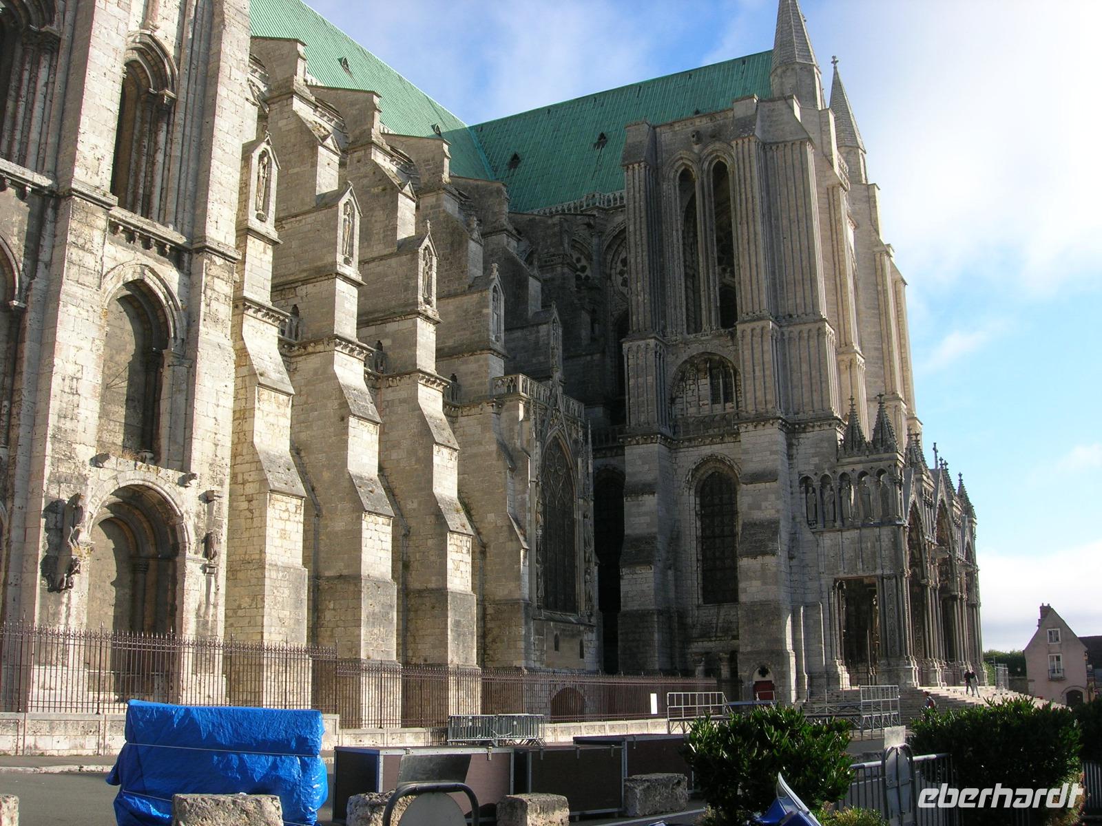 Früh am Morgen brachen wir heute auf, um vor unserer Abfahrt noch die Kathedrale von Chartres, den Schlüsselbau der Kathedralbaukunst Europas, zu besichtigen. Der Westliche Teil des Mittelschiffs, der im vergangenen Jahr noch restauriert wurde, war mit seinen ältesten noch von dem romanischen Vorgängerbau stammenden Fenstern schon zu besichtigen. Die Glasfensterzyklen in den Seitenschiffen und im Chor hingegen gehören zu den qualitätvollsten Zeugnissen der französischen Glasmalerei des 13. Jahrhunderts. Mit ihreren architektonischen Neuerungen erreichten die Baumeister der Kathedrale von Chartres eine in der Frühgotik bisher unbekannt Klarheit und Geschlossenheit. Sie wirkte europaweit vorbildhaft auf den Bau von Kathedralen und Domen in den folgenden Jahrhunderten.