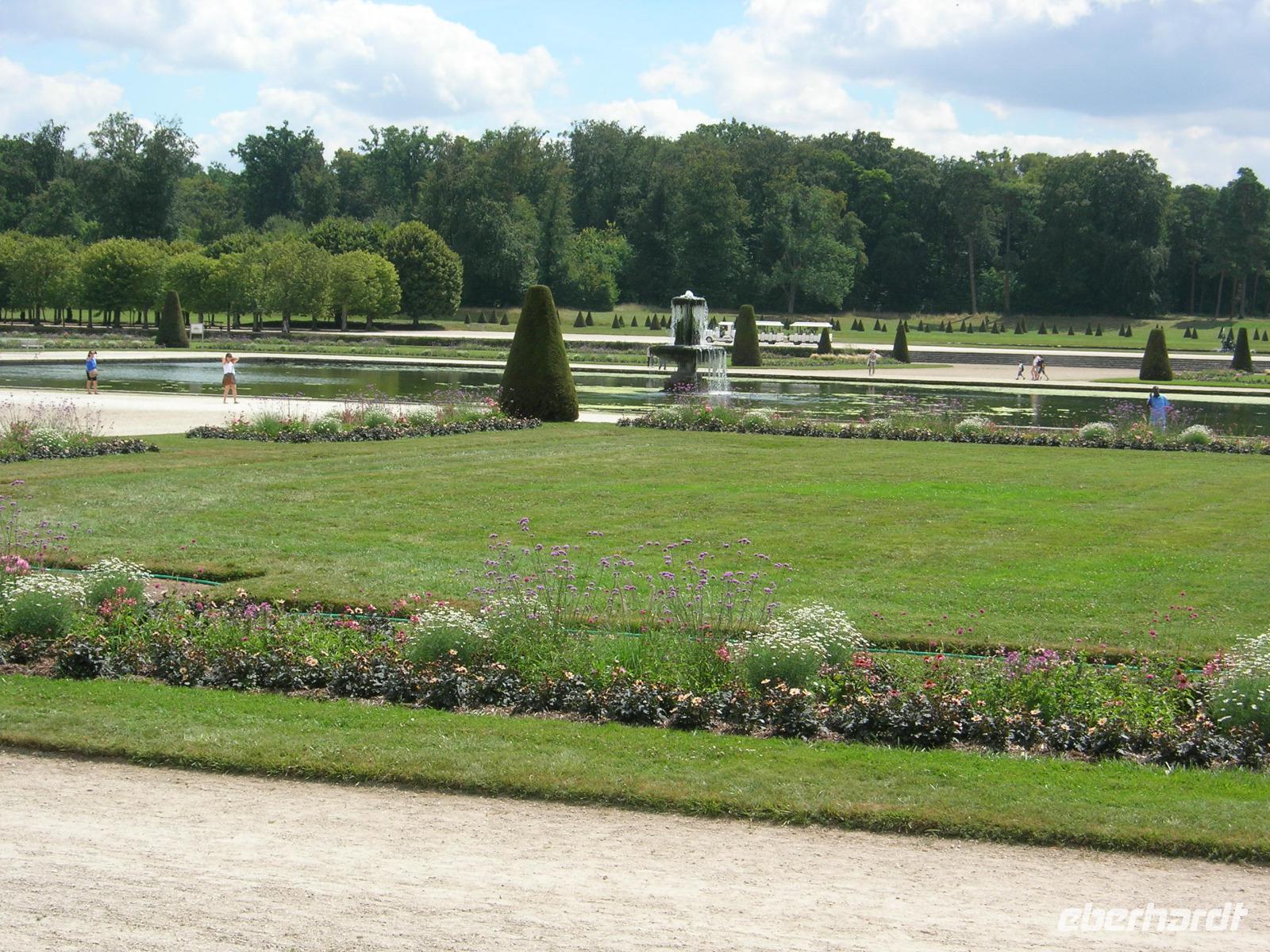 Kleiner im Format und überschaubarer in seiner Geschichte war das Château Vaux-le-Vicomte, dass wir am Nachmittag besuchten. Die Legende möchte, dass das Schloss des Finanzministers Nicolas Fouquet den Neid des jungen Königs erregte. Historisch dokumentiert ist hingegen, dass Fouquets Entlassung bereits vor dem opulenten Fest vom 17. August 1661 beschlossene Sache war. Festzuhalten bleibt ferner, dass an diesem Bau und seinen Gartenanlagen die junge Crème de la Crème des künftigen Stils König Louis XIV. mitwirkte: Louis le Veau, Charles Lebrun, Pierre Mignard und Pierre Puget sowie André Le Nôtre. Sie sollte wenig später im Auftrag König Louis XIV das kleine Jagdschloss in Versailles in die prachtvollste Residenz Europas verwandeln. Nach der Schlossbesichtigung genossen wir unter strahlend blauem Himmel den Garten von Le Nôtre, der als erster Barockgarten in Frankreich gilt - ein wahrhaft königlicher Abschluss einer Gartenreise.