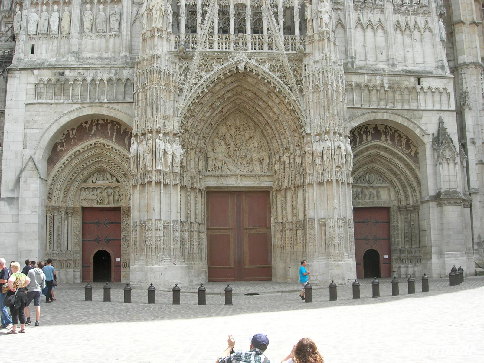 Früh am Morgen brachen wir heute auf, um vor unserer Abfahrt noch die Kathedrale von Chartres, den Schlüsselbau der Kathedralbaukunst Europas, zu besichtigen. Der westliche Teil des Mittelschiffs, der in den vergangenen Jahren restauriert wurde, war mit seinen ältesten noch von dem romanischen Vorgängerbau stammenden Fenstern schon zu besichtigen. Die Glasfensterzyklen in den Seitenschiffen und im Chor hingegen gehören zu den qualitätvollsten Zeugnissen der französischen Glasmalerei des 13. Jahrhunderts. Mit ihreren architektonischen Neuerungen erreichten die Baumeister der Kathedrale von Chartres eine in der Frühgotik bisher unbekannt Klarheit und Geschlossenheit. Sie wirkte europaweit vorbildhaft auf den Bau von Kathedralen und Domen in den folgenden Jahrhunderten.