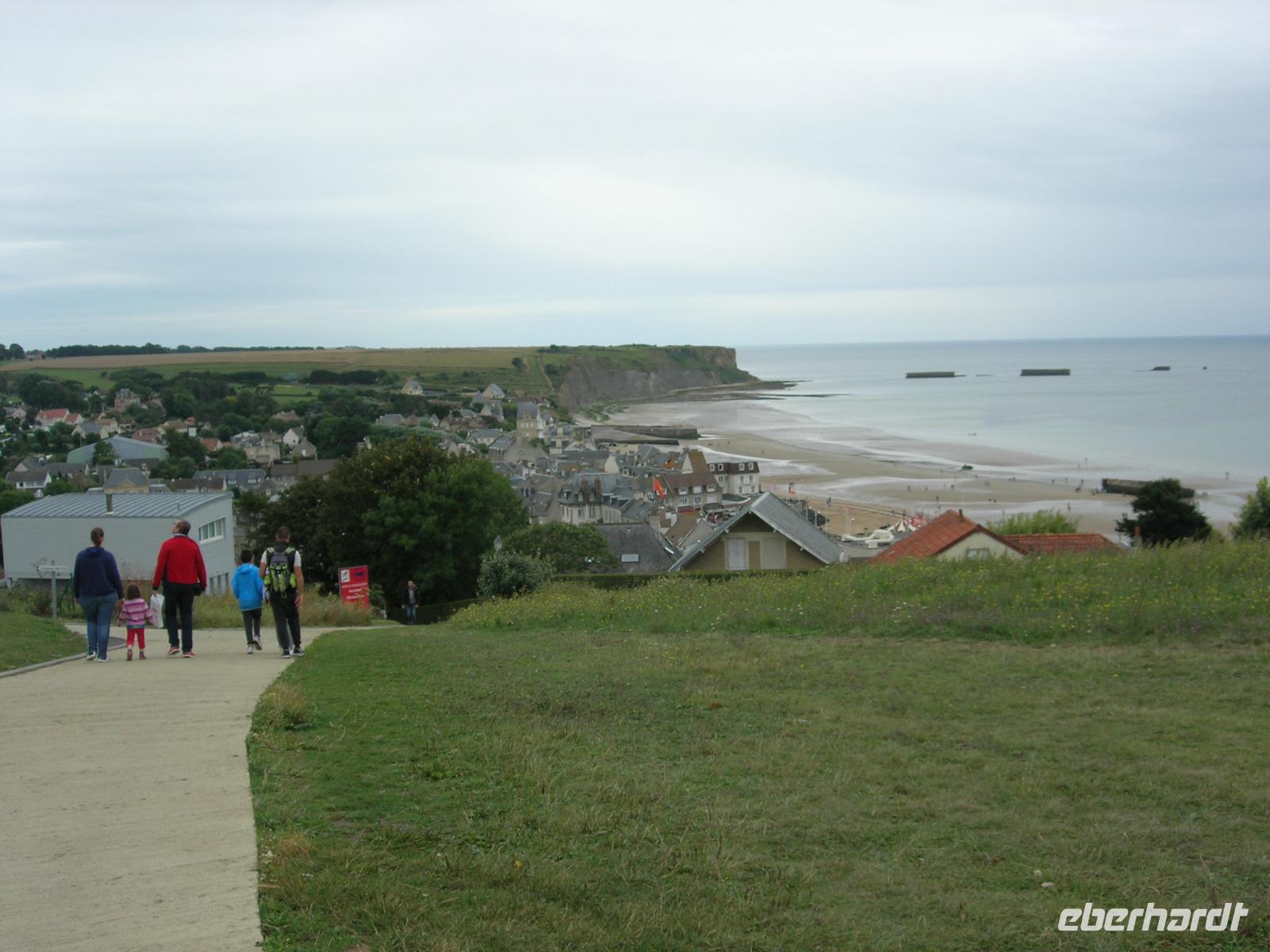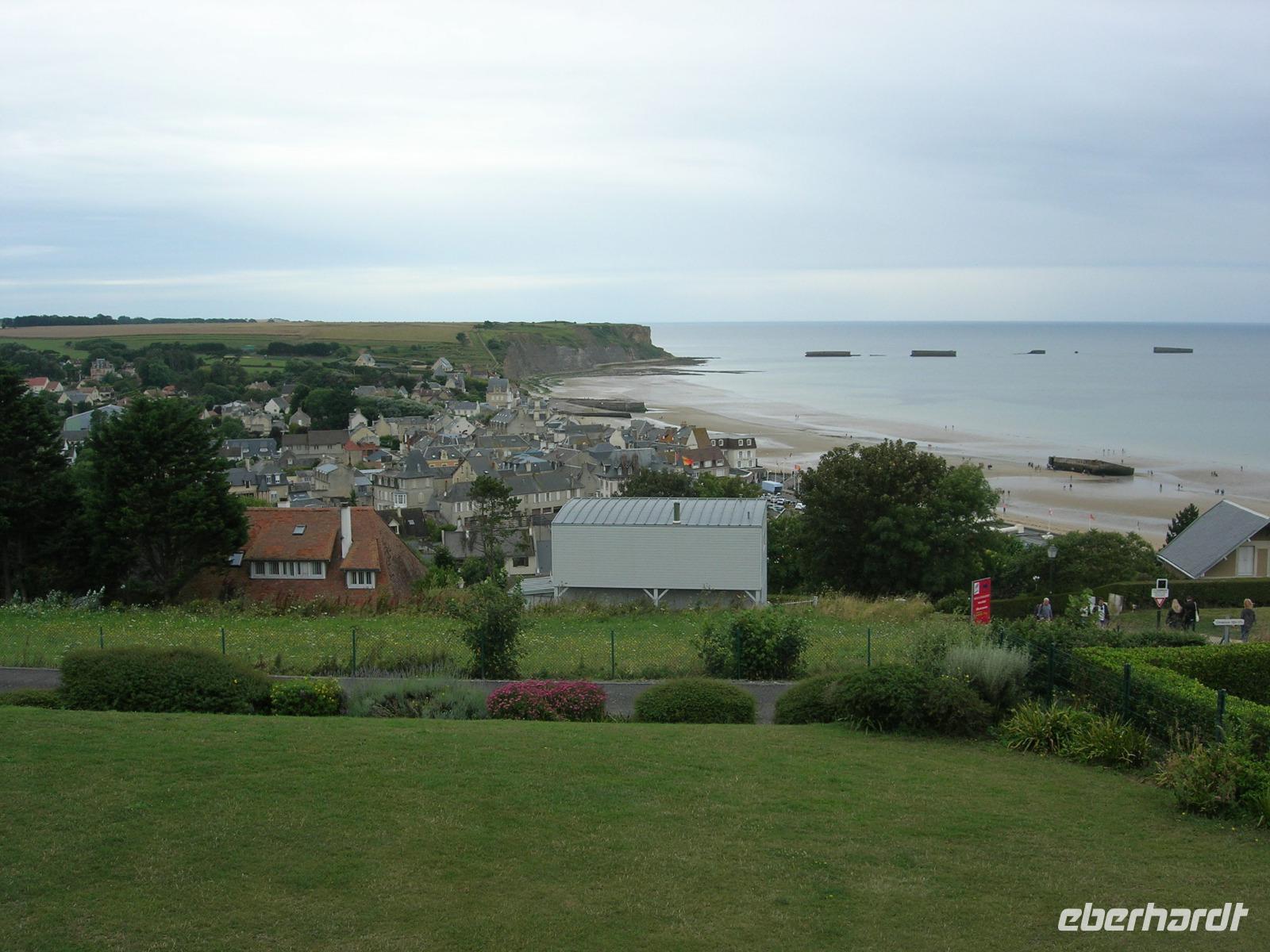 Da der starke Regen, der uns im Rosengarten des Parks überraschte, inzwischen etwas nachgelassen hatte, fuhren wir wieder zur Küste - diesmal zur Côte de Nacre nach Arromanches. Hier befand sich einer der Landungsstrände der Alliierten, wo am 6.6.1944 unter unvorstellbaren Opfern die Befreiung Frankreichs und Europas vom Faschismus begann. Später wurde hier der Mulberry Hafen angelegt, über den die ersten Transporte der Alliierten gingen. Mit Reims, dem Ort der Unterzeichnung der Kapitulationserklärung erinnert dieser Besuch an einen weiteren Hauptschauplatz des II. Weltkriegs, an dessen Ende vor 72 Jahren weltweit gedacht wird.