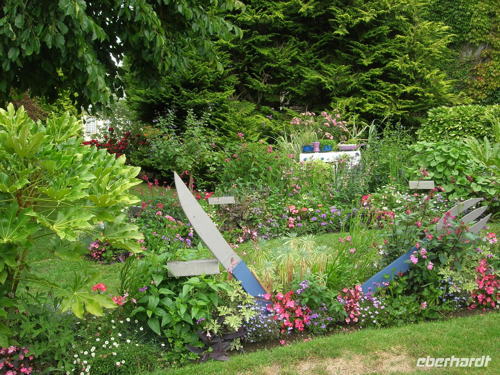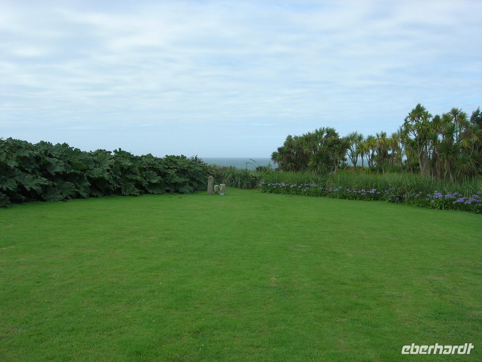 Nach einer Fahrt, die uns zunächst entlang der Küste der Halbinsel Cotentin und dann durch malerische Dörfer mit Häusern aus Granitgesteinen und liebevoll gestaltete Vorgärten führte, staunten wir über den Garten des "Château de Vauville" mit seinem exotischen Fluidum. Fast wie auf den Kanarischen Inseln war es hier. Dieses von Eric und Nicole Pellerin ab 1947 angelegte exotische Gartenreich verdankt seine Existenz dem milden Klima des nahen Golfstroms und dem Wasserreichtum der Region. Palmen, Aloe, Eukalyptus-Bäume, Bambusstauden .... schaffen eine subtropische Atmosphäre in Nordfrankreich 300 m entfernt vom Atlantik.