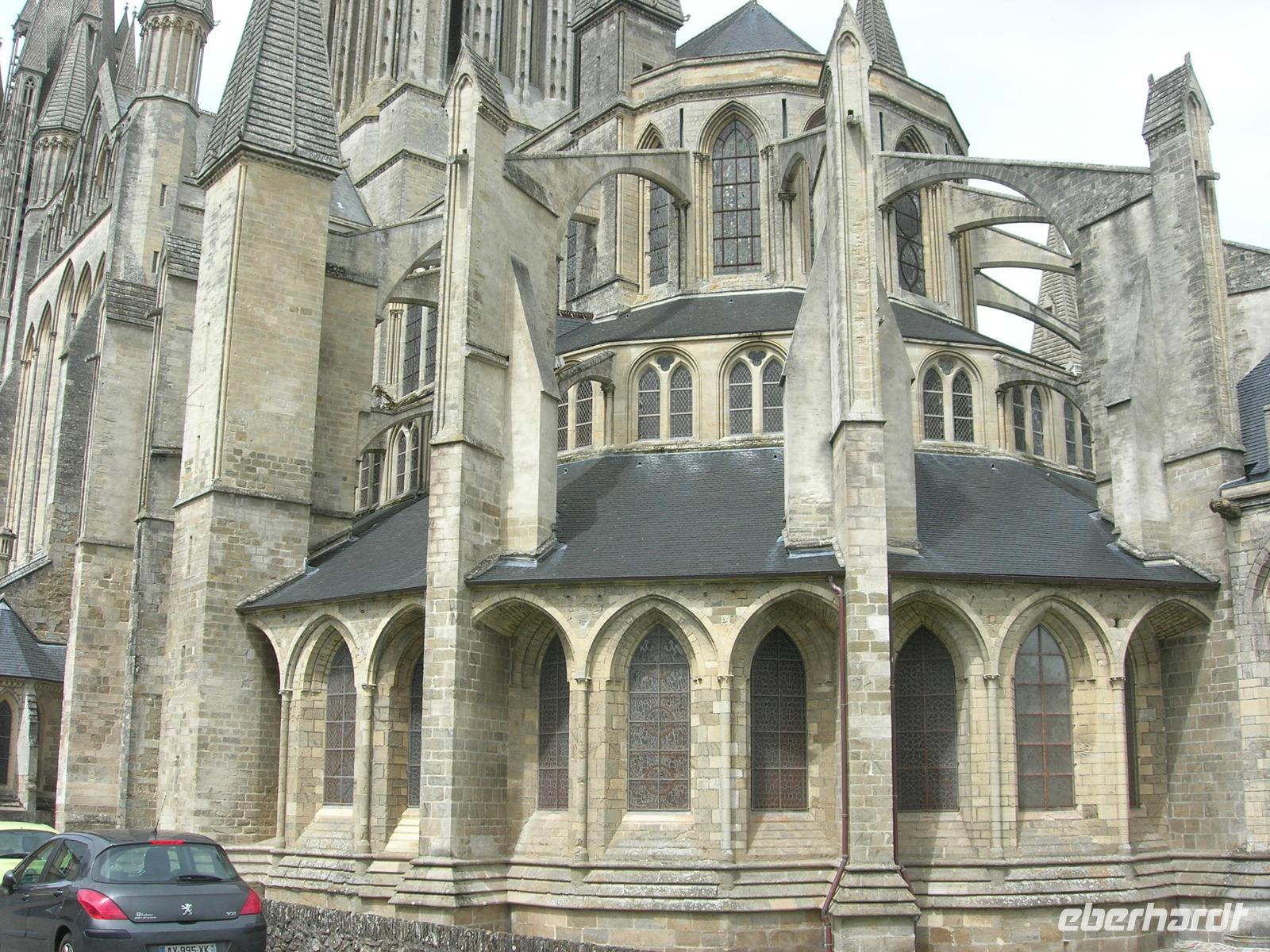 Bevor wir Caen verliessen und unsere Reise zur Halbinsel Cotentin fortsetzten, sahen wir uns am Morgen die von Wilhelm dem Eroberer gegründete Abteikirche St-Étienne der Abbaye-aux-Hommes und die von seiner Gemahlin, Mathilde von Flandern, gestiftete Kirche Sainte-Trinite der Abbaye-aux-Dames sowie den dazwischen liegenden Burgberg mit seinen Baulichkeiten an.
