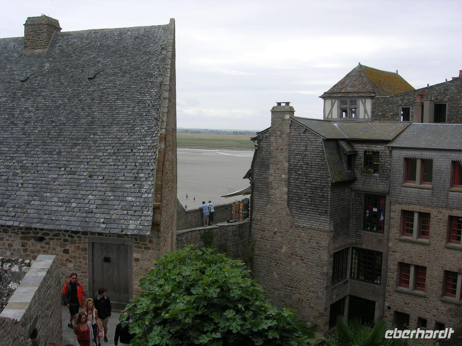 Nachdem Frühstück fuhren wir mit einem der Shuttelbusse über die neue Stelzenbrücke zum Mont St. Michel. Wir gehörten an diesem Morgen zu den Ersten, die den Abteiberg "erklommen" und waren daher noch nicht von den Besuchermassen umgeben, die sich wenige Stunden später einstellten - was den Aufstieg sehr erleichterte. In der Abtei gingen wir durch die ehrwürdigen Räumlichkeiten und lauschten dabei den interessanten Informationen des Audiogerätes. Anschließen war noch etwas Zeit für einen Spaziergang entlang der Stadtmauer, ein gemütlichen Kaffee oder einen Crêpe mit bester Aussicht während sich die Hauptgasse schon mit Besucherströmen füllte.
