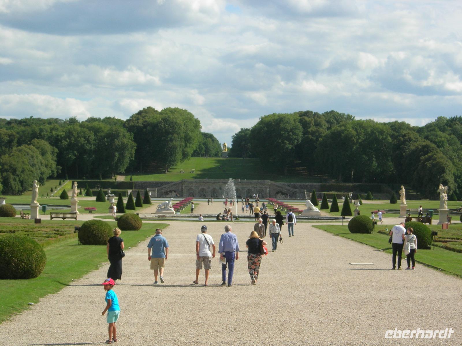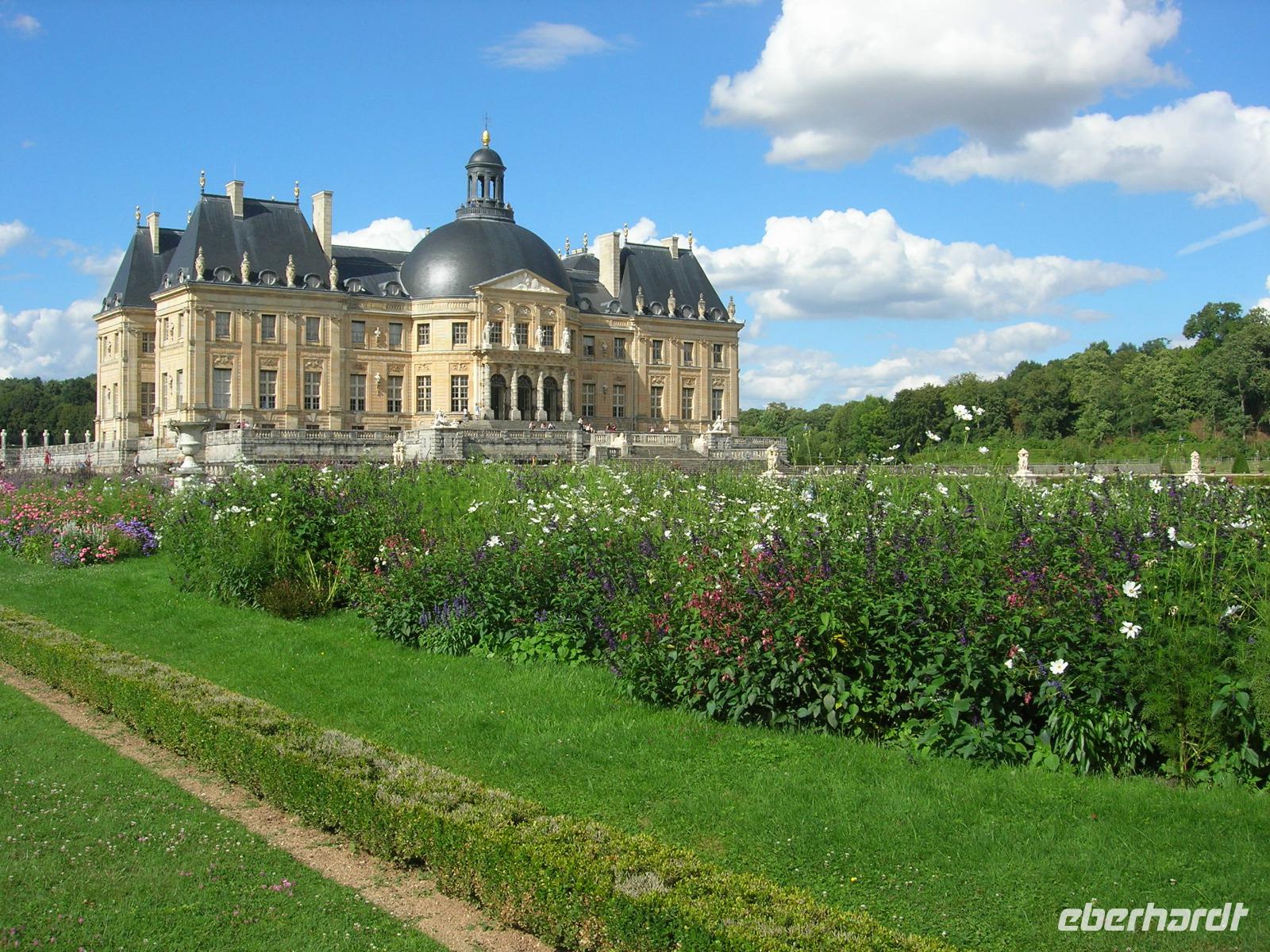 Kleiner im Format und überschaubarer in seiner Geschichte war das Château Vaux-le-Vicomte, dass wir am Nachmittag besuchten. Die Legende möchte, dass das Schloss des Finanzministers Nicolas Fouquet den Neid des jungen Königs erregte. Historisch dokumentiert ist hingegen, dass Fouquets Entlassung bereits vor dem opulenten Fest zu Ehren des Königs am 17. August 1661 beschlossene Sache war. Festzuhalten bleibt ferner, dass an diesem Bau und seinen Gartenanlagen die junge Crème de la Crème des künftigen Stils von König Louis XIV. mitwirkte: Louis le Veau, Charles Lebrun, Pierre Mignard und Pierre Puget sowie André Le Nôtre. Sie sollte wenig später im Auftrag König Louis XIV das kleine Jagdschloss in Versailles in die prachtvollste Residenz Europas verwandeln. Nach der Schlossbesichtigung genossen wir unter strahlend blauem Himmel den Garten von Le Nôtre, der als erster Barockgarten in Frankreich gilt - ein wahrhaft königlicher Abschluss einer Gartenreise.