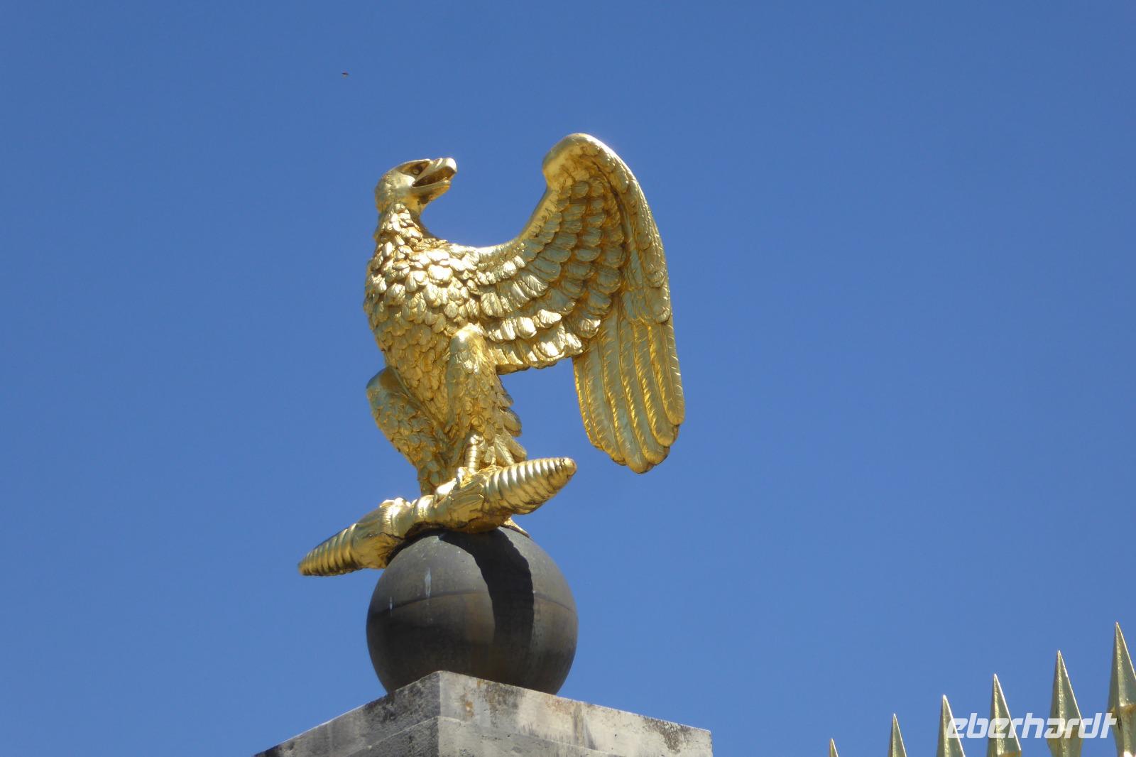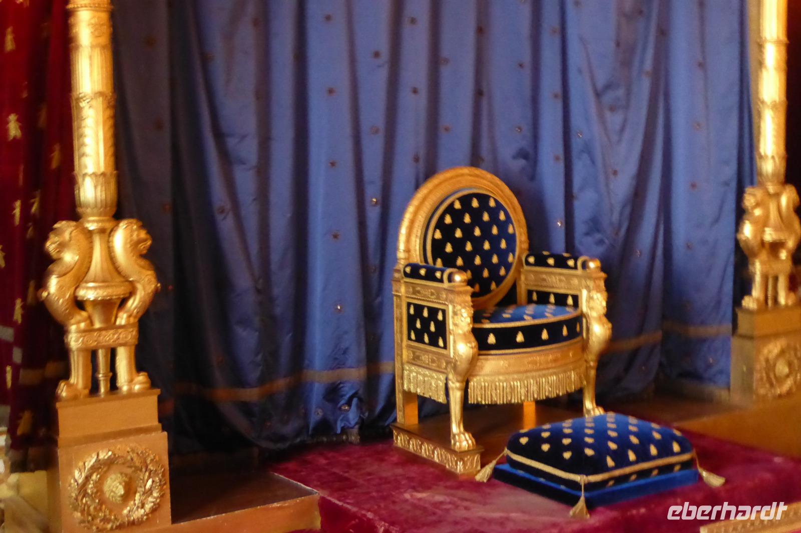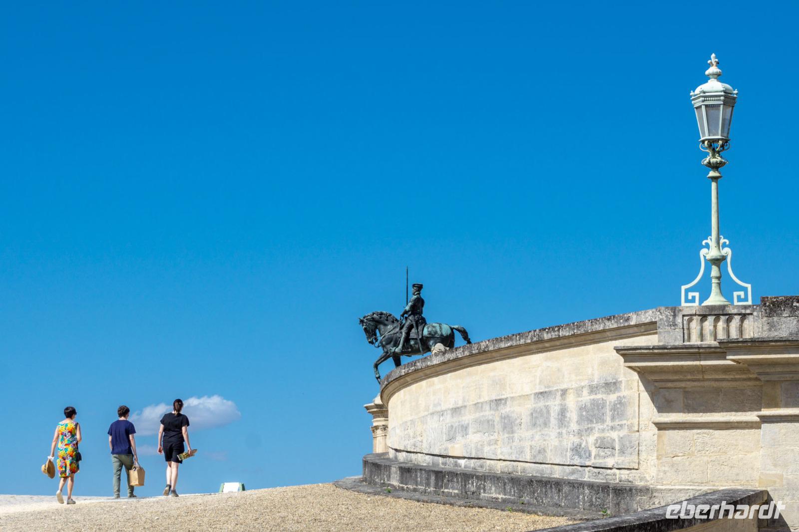 Im Schloss Fontainebleau, 60 km südlich von Paris, wurde europäische Geschichte geschrieben. Mit der Abdankung Napoleons 1814 kehrten die Boubonen wieder zurück. Von 1949 bis 1966 war das Schloss NATO-Hauptquartier des Allied Forces Central Europe. Es ist berühmt für seine Innenausstattung aus der Zeit der Renaissance, an der zahlreiche italienische Künstler arbeiteten. Es wurde 1981 von der UNESCO zum Weltkulturerbe erklärt. Die Anlage wurde an der Stelle einer Burganlage aus dem 13. Jahrhundert gebaut, dessen Donjon in den Bau eingefügt und unter König Francois I zu einem prunkvollen Jagdschloss erweitert. Bauanfang des heute sichtbaren zentralen Gebäudes war 1528. Das Schloss gilt als erster Renaissancebau auf französischem Boden, wurde jedoch mehrfach umgebaut. Schloss Fontainebleau hat fünf Höfe, eine Kapelle, Prunkräume, Fresken und Stuckaturen. Ludwig XIV. ließ in den Gärten ein neues Parterre im Stil des Barocks, einen großen Kanal und einen neuen weitläufigen Park mit Seen anlegen. Mit dem Schloss Fontainebleau sind die sogenannte Erste und Zweite Schule von Fontainebleau verknüpft, von der wichtige Kunstimpulse der französischen Malerei ausgegegangen sind. Wir spazierten durch die gespenstisch menschenleeren Gemächer und konnten in aller Ruhe die wertvollen Kunstschätze betrachten. Auch der Park war menschenleer, was jedoch auch an den Temperaturen über 30° und der schattenlosen Gestaltung der Anlage des königlichen Gartenarchitekten Le Nôtre lag. Die wenigen schattigen Plätze im hinteren baumbestandenen Gartenhof waren dünn bevölkert von ein paar Touristen und in der Mittagspause Ruhe suchender Arbeiter.