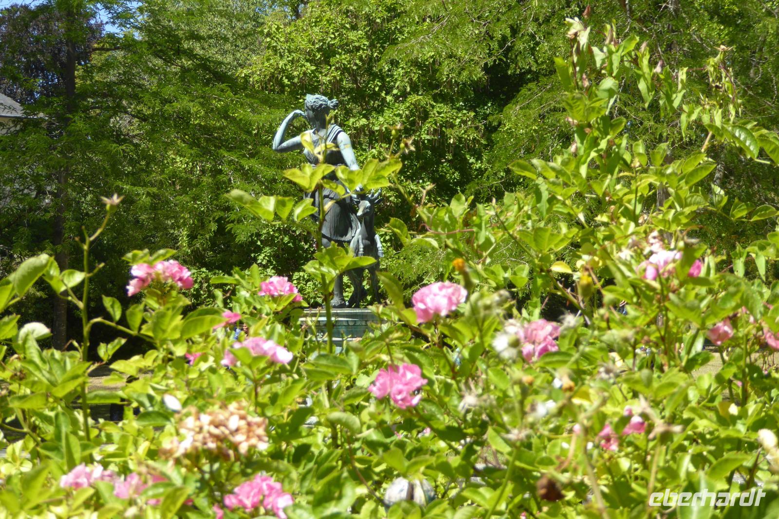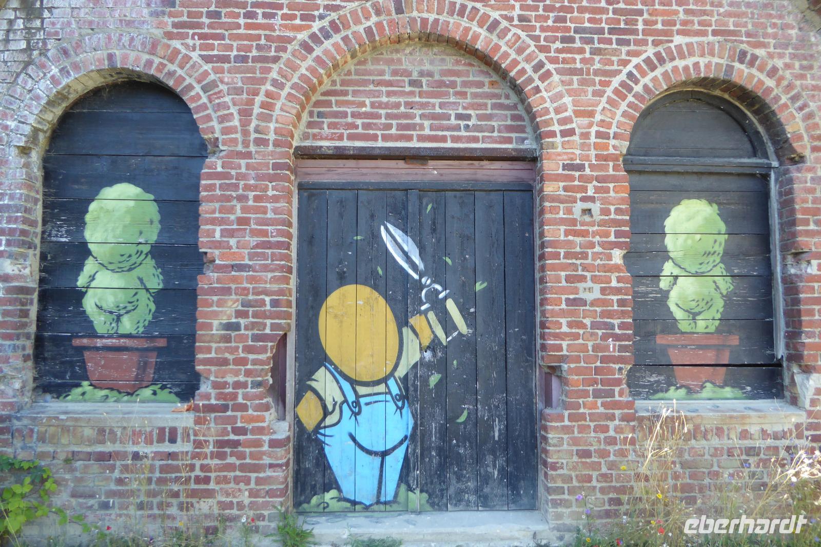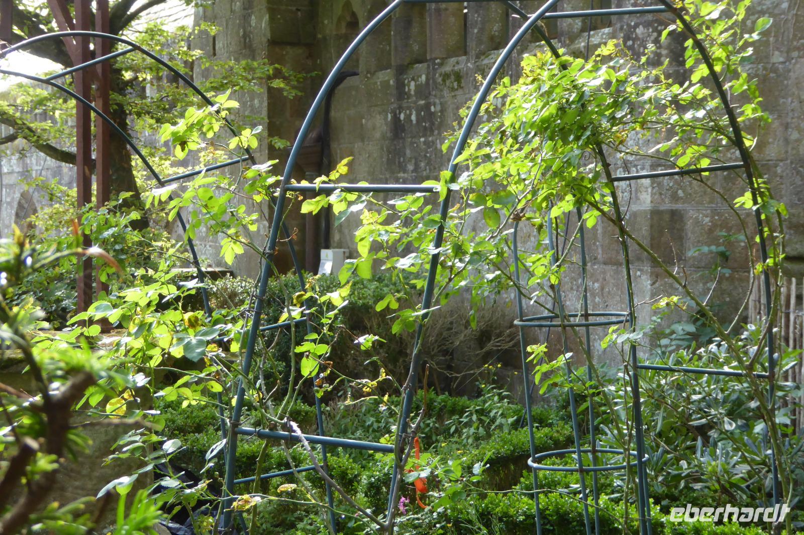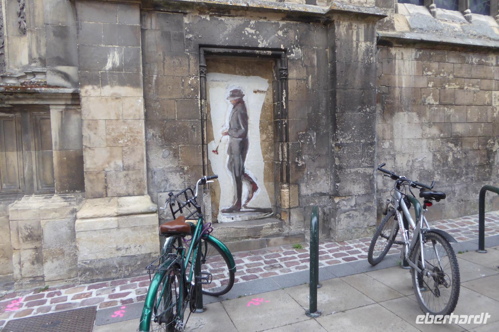 Gleich nach dem Frühstück, das uns Coronasicher auf einem mit Folie abgedeckten Tablett serviert wurde machten wir uns auf zu einem Spaziergang durch die Stadt, vorbei an St. Pierre ins Viertel Vauguex und zur Burg Williams des Eroberers. Unter dessen Schutz und Herrschaft erlangte die Region eine wirtschaftliche Blütezeit. Die mächtige Wehranlage thront über der Stadt, die im zweiten Weltkrieg fast völlig zerstört wurde. Heute hat sich die Burganlage der Kunst verschrieben, das normannische Kunstmuseum zeigt eindrucksvolle Großskulpturen von Rodin und Bourdelle sowie moderne Plastiken internationaler zeitgenössischer Künstler. Auch in der Stadt begegneten uns überall die Kunstwerke internationaler Street Art Künstler.Mit dem Bus erreichten wir wenig später die Abbay aux Hommes in Caen. William ließ zwei Klöster, St. Étienne, die Abbaye aux Hommes und Sainte Trinité, die Abbaye aux Dames im elften Jahrhundert errichten, um, wegen seiner von Papst Leo IX missbilligten Heirat mit seiner Cousine Mathilde von Flandern, Abbitte zu leisten. In der Abteikirche St. Étienne fand er seine letzte Ruhestätte, bis Aufständische das Grab plünderten. Lediglich eine bescheidene Grabplatte im Chor erinnert an den großen normannischen Herrscher.Im Park vor den Klostergebäuden, in denen sich das Rathaus und ein Museum befinden, machten wir eine gemütliche Kaffeepause, bevor wir zum Parc floral weiterfuhren.