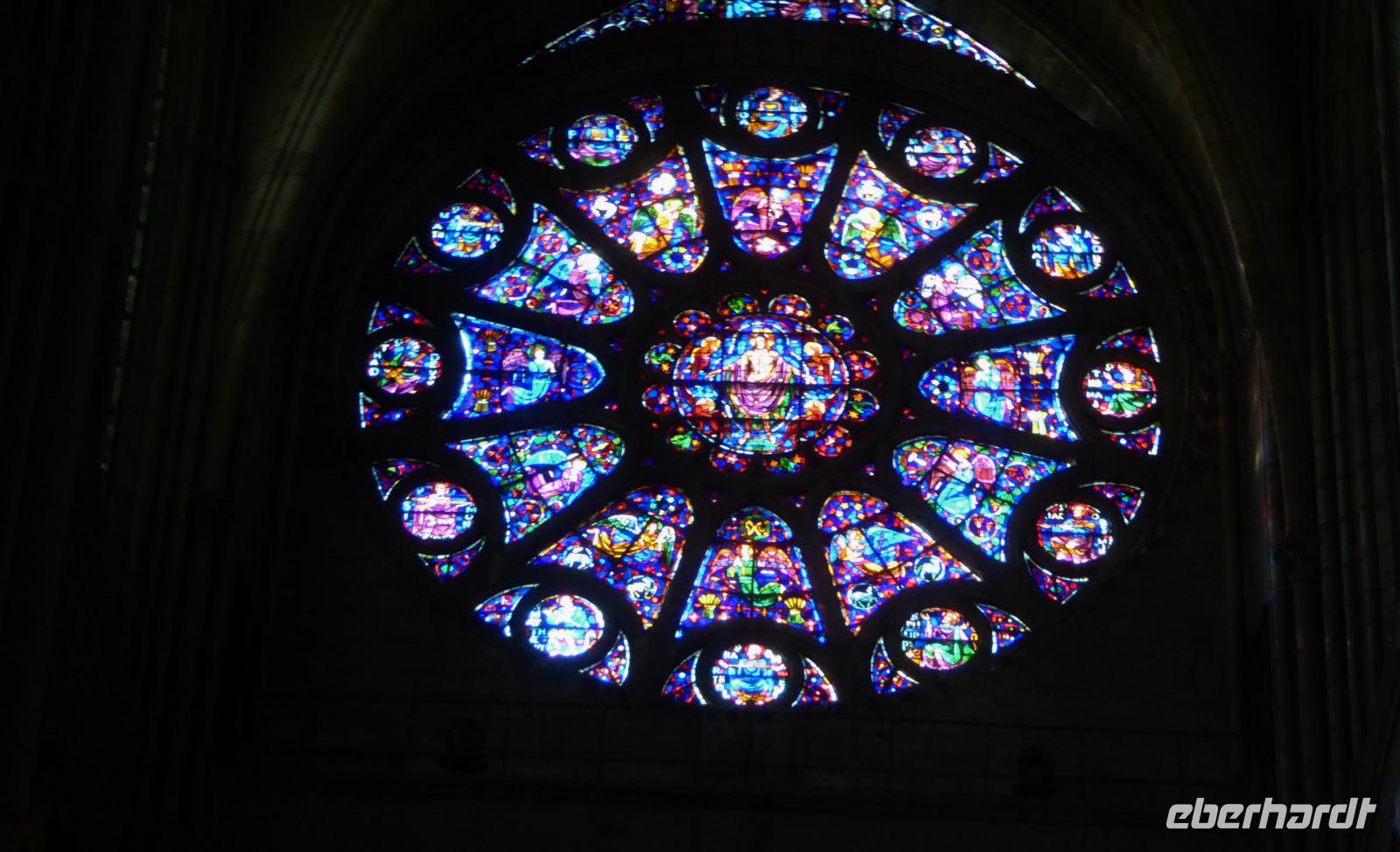 Am frühen Abend trafen wir in Chartres ein. Nach einem leckeren Abschiedsessen in einer örtlichen Crêperie ließen wir uns von der Lichtshow verzaubern, die die Geschichte der Kathedrale mit buntem Licht auf die Fassade malte. Da die Kathedrale schon um 8.30 öffnet, hatte jeder Gast am nächsten Morgen individuell die Möglichkeit, das berühmte Gotteshaus auch im Inneren zu besichtigen. Viele Geschichten ranken sich um das Bauwerk. Dem Baubeginn um 1194 folgte die offizielle Weihe am 24. Oktober 1260. Der Bildhauer Auguste Rodin nannte sie die Akropolis Frankreichs. Seit 1979 steht sie auf der Welterbeliste der UNESCO. Chartres ist nie zerstört worden. Während an vielen Kathedralen die Portalfiguren im Bildersturm der Hugenotten oder der Französischen Revolution zerstört wurden und zahllose Glasmalereien noch nach den Kriegen dem Bedürfnis nach mehr Helligkeit zu Opfer fielen, sind hier der gesamte figürliche Schmuck sowie die Fenster fast unversehrt erhalten. Daher vermittelt die Kathedrale von Chartres die Atmosphäre der Hochgotik so intensiv und unverfälscht wie kein anderes Gotteshaus.