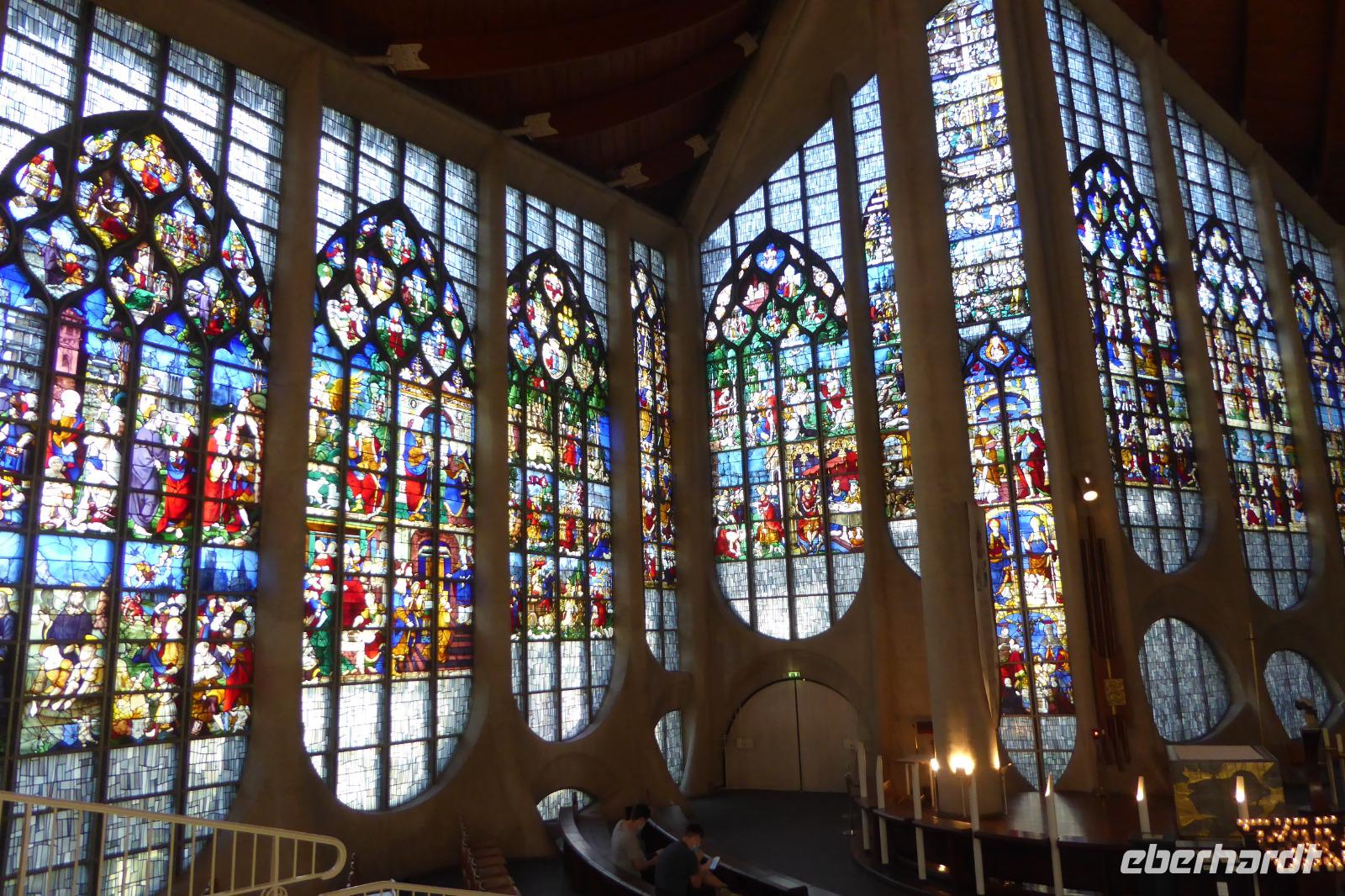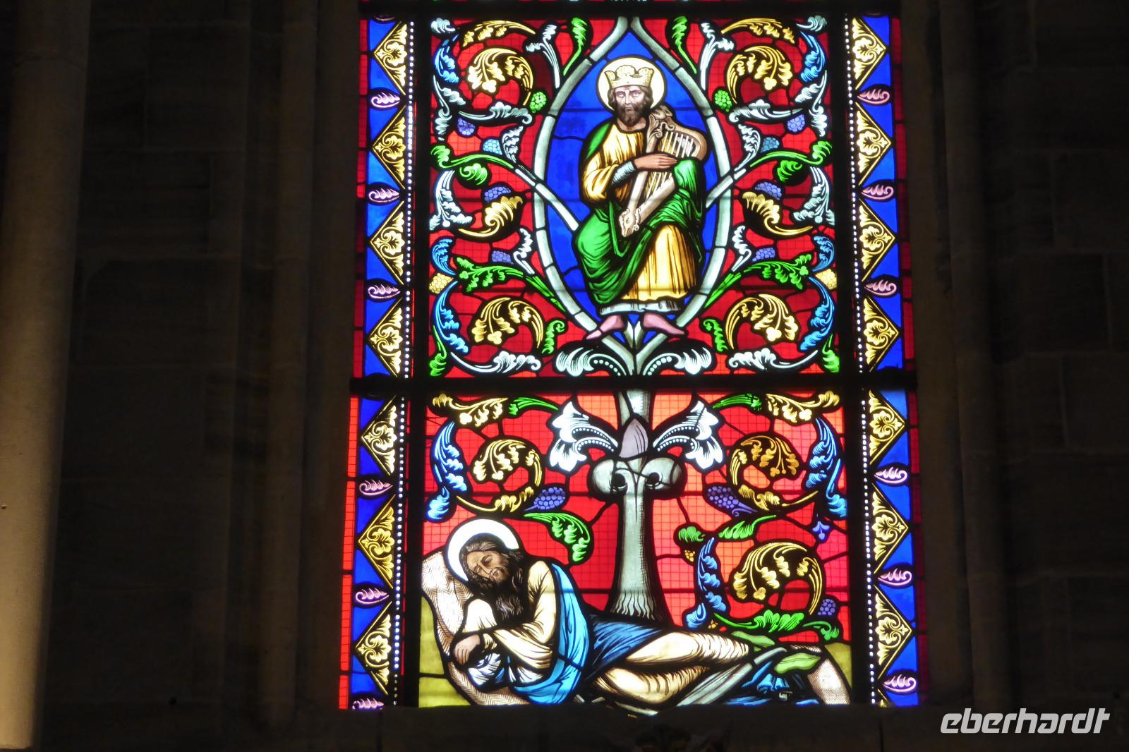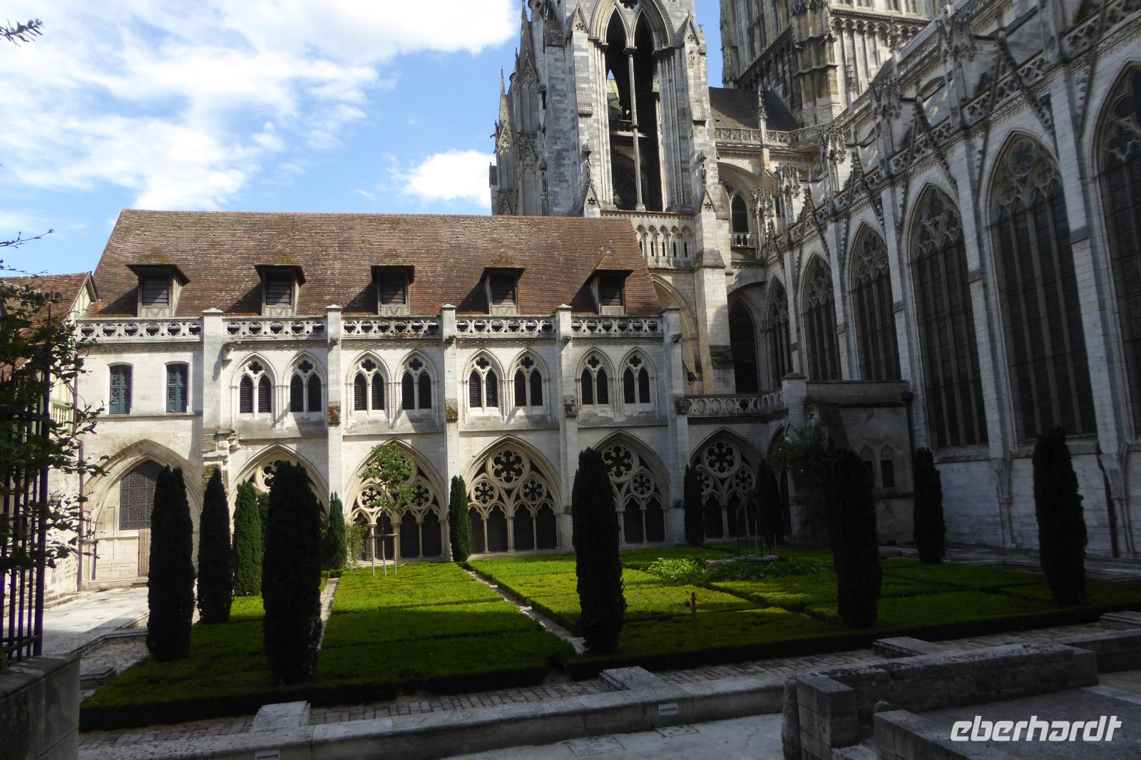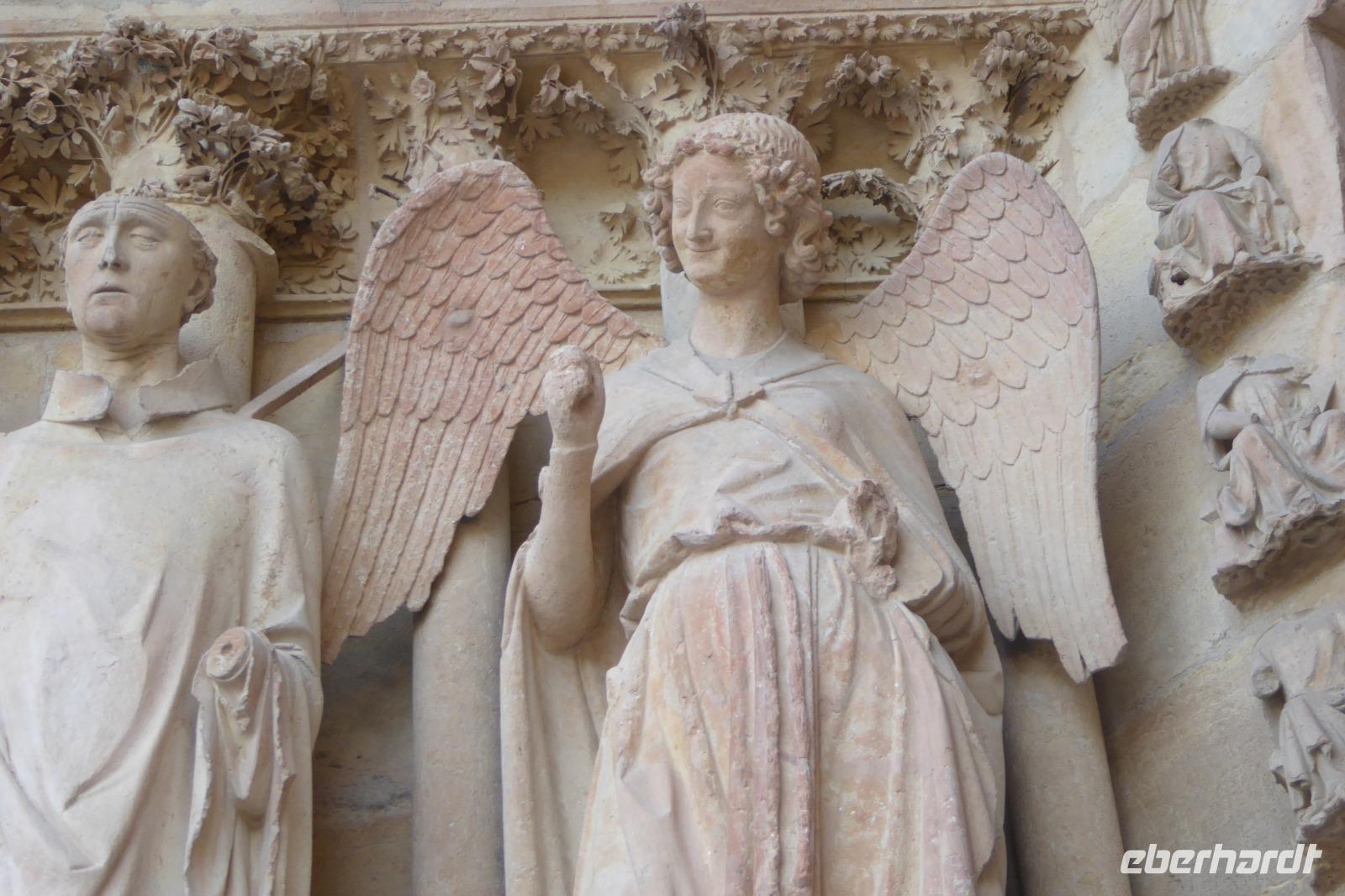 Am nächsten Morgen stand erst ein Besuch in Reims auf dem Programm, der Stadt, in der 29 französische Könige gekrönt wurden und die heute fest mit feinperligem Champagner verbunden ist. Nur eine einzige weitere Reisegruppe war vor Ort und so hatten wir keine Parkplatzprobleme und genügend Zeit, etwas durch die Stadt zu bummeln und das neue Straßenbahnsystem zu bewundern, bevor wir gemeinsam die Kathedrale mit ihren mittelalterlichen Skulpturen und den leuchtenden Glasfenstern besuchten. Im Ersten Weltkrieg wurde Reims schwer zerstört. Reiche Amerikaner, darunter Rockefeller und Carnegie, sorgten für einen baldigen Wiederaufbau der Stadt und der Kathedrale, die heute Weltkulturerbestatus hat. In ihrem Inneren sind auch Glasfenster berühmter Künstler der Neuzeit wie Marc Chagall, Imi Knöbl und Greg Tricker zu bewundern.