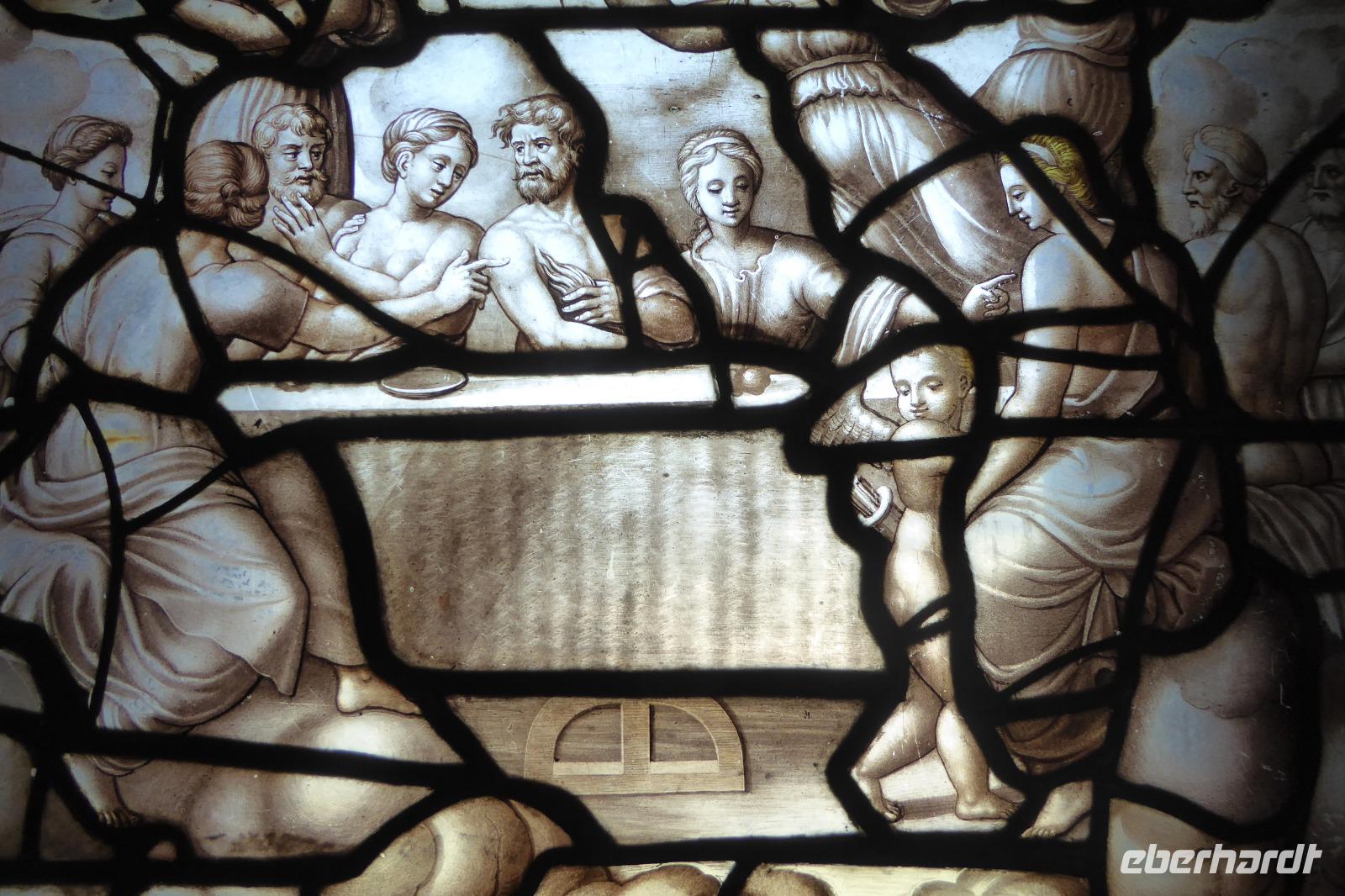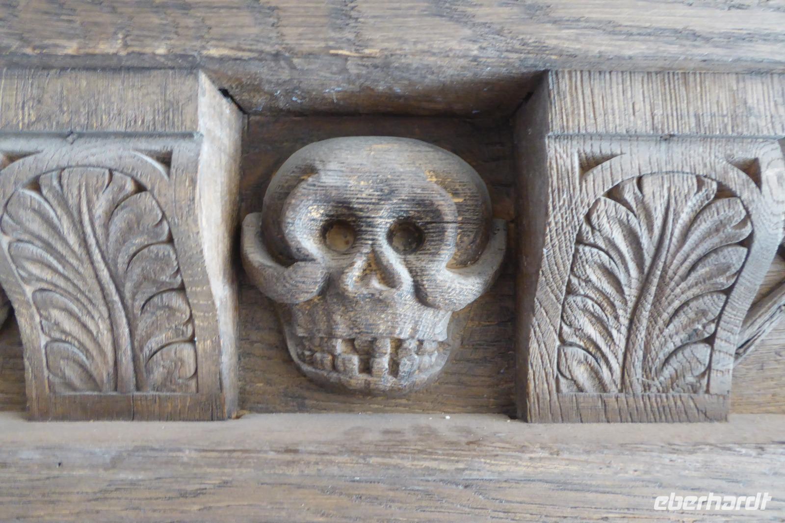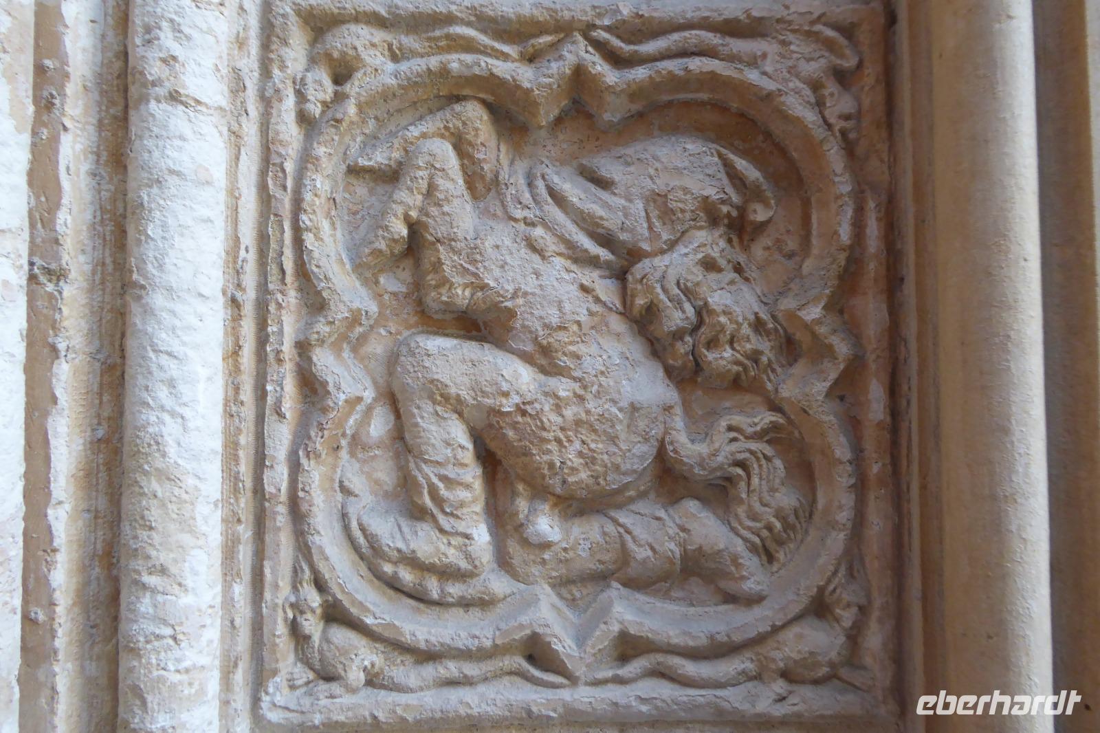 Mit der ganzen Gruppe ging es anschließend nach Saint Martin de Boscherville zu der Abteikirche Saint-Georges, einem gut erhaltenen Beispiel normannischer Romanik mit zwei zierlichen Westtürmen und einem reich gegliederten und ornamentierten Stufenportal. Der Skulpturenschmuck im Inneren, vegetabilische und figürliche Kapitelle sowie die figürlichen Reliefplatten der Querhausemporen sind durch übereifrige Restaurierungsmaßnahmen kaum mehr zu erkennen. Der restaurierte Kapitelsaal aus dem 12./13. Jahrhundert begeisterte uns durch eine außergewöhnlich reich gestaltete dreiteilige Portalzone mit Säulenfiguren und einem bemerkenswerten Rippengewölbe im gut sechs Meter breiten Innenraum.Der angrenzende Park aus dem 17. Jahrhundert mit Gemüse- Kräuter- und Obstgarten liegt malerisch am Hang und wurde in den letzten Jahren des 20. Jahrhunderts rekonstruiert. Wie in biblischen Zeiten konnte auch uns kein Gottesgebot von den Früchten der Bäume abhalten und so labten wir uns in der Hitze des Mittags an herrlich frischen Reineclauden und anderen Steinobstfrüchten!