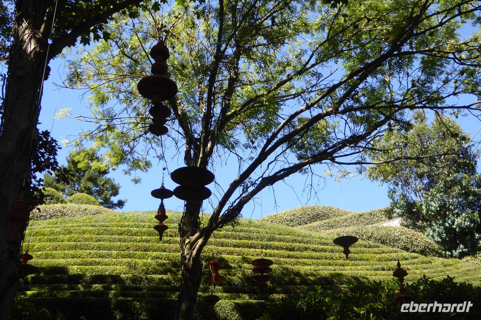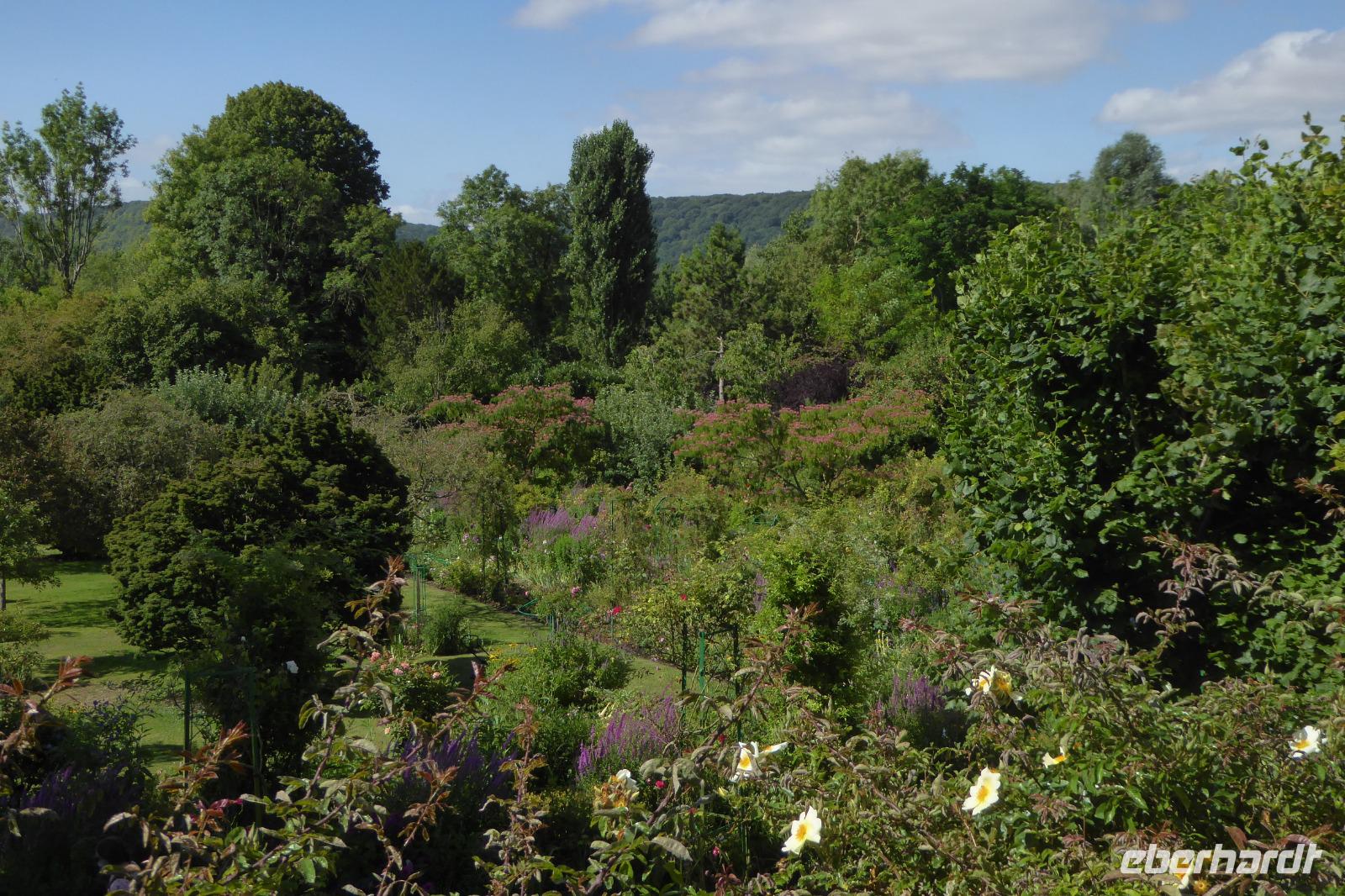 Der ganze Garten ist eine einzige bunte Malerpalette an Farben! Die Rede ist vom Garten von Claude Monet mit dem berühmte Seerosenteich und der Brücke nach japanischem Vorbild in dem französischen Dorf Giverny. Auf dem kleinen Dorffriedhof fand der Maler seine letzte Ruhestätte. In seinem Wohnhaus inmitten des blühenden Gartenparadies hängen Replikate berühmter impressionistischer Gemälde und Fotografien aus der Zeit sowie Bilder und Holzschnitte des japanischen Malers Katsushika Hokusai, der, wie vieles mehr aus dem fernöstlichen Raum, großen Einfluss auf das Werk Monets und die Künstler seiner Zeit hatte. Monet liebte diesen Ort und seinen Garten. Er las Fachliteratur und besuchte Gartenausstellungen. Der Garten war ihm Erholung und Inspiration. Sein Spätwerk schöpfte er ausschließlich aus der Idylle seiner selbstgeschaffenen Enklave. Sein nachlassendes Augenlicht ließ ihn seine Bilder mehr erspüren als dass sie reale Abbilder der Wirklichkeit waren.Die Farbenpracht und die Formenvielfalt entzückte nicht nur die Fotografen, wir alle empfanden die Harmonie und Ruhe, die sich wie ein Zauber über diesen magischen Ort legt!