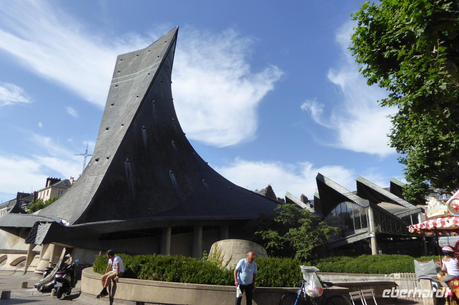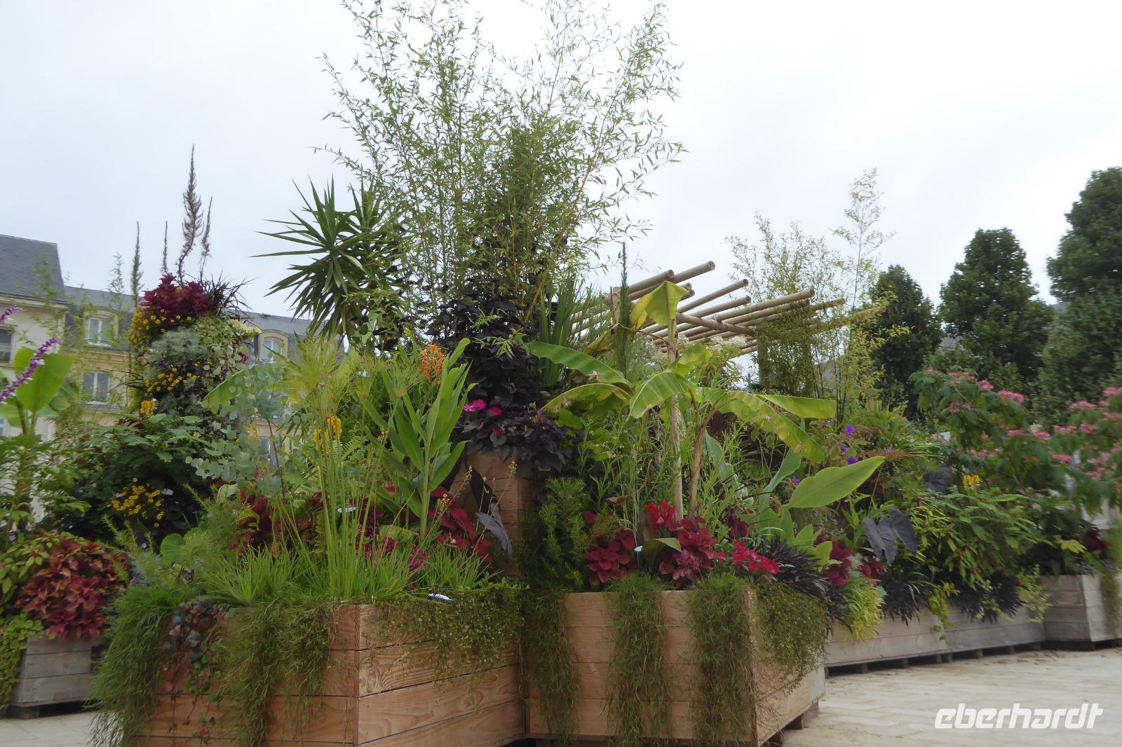 Am späten Nachmittag erreichten wir Le Havre und fuhren zu den hoch über der Stadt gelegenen Jardins suspendus, die sich in einem Fort aus dem 19. Jahrhundert befinden. Auf den vier Eckbastionen sind vor 12 Jahren beeindruckende Themengärten entstanden, die das Erbe der Seefahrer und frühen Botaniker aus aller Welt nach Frankreich brachten. Douglasien aus Nordamerika, Araucarien aus Chile, Manukabäume aus Australien und immer wieder die längst in der Normandie heimischen Hortensien, die einst aus Japan ihren Weg nach Frankreich fanden. Im Inneren der Anlage wurde eine Ausstellung gezeigt: sämtliche 3,3 Mio Einwohner der Normandie auf winzigen Portraitfotos zieren die sonst kargen Wände des ehemaligen Pulverlagers. Mit einem Glas Cidre starteten wir in den Abend und genossen den Blick über das Hafenbecken und auf den 102 Meter hohen Kirchturm der Betonkirche St. Joseph, der, wie der Großteil der im Zweiten Weltkrieg komplett zerstörten Stadt, in den fünfziger Jahren von dem belgischen Architekten August Perret gebaut wurde.