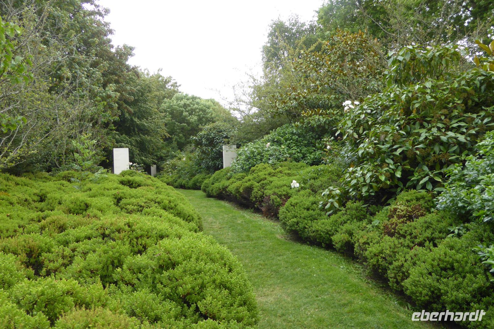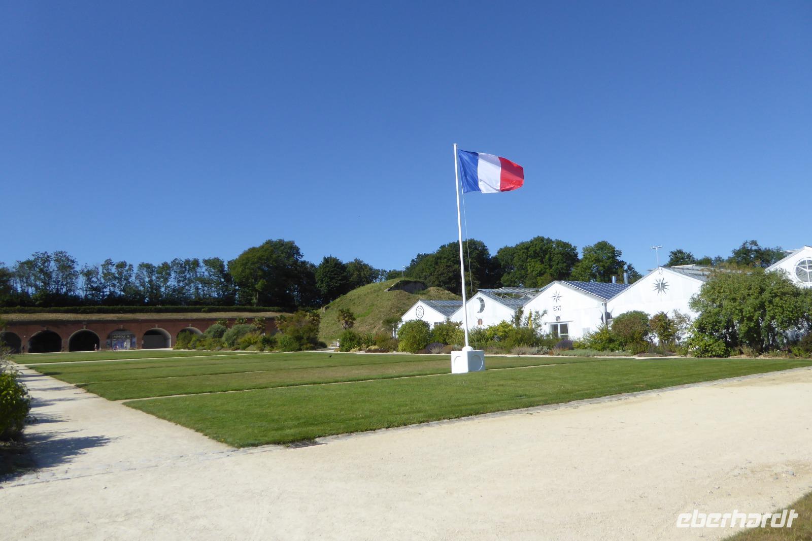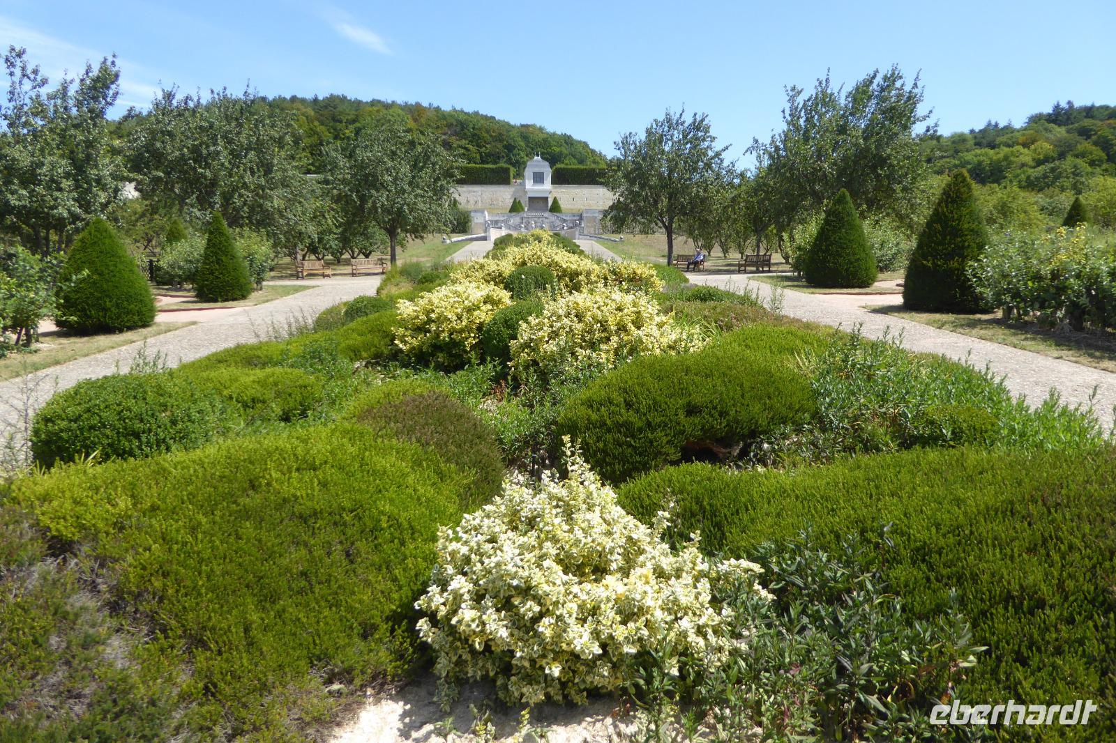 La Colline aux Oiseaux ist ein ganz besonderer Ort: zuerst ein Steinbruch, dann für 50 Jahre eine Mülldeponie und heute ein öffentlicher 17 Hektar großer Blumenpark, der zum Gedenken des fünfzigsten Jahrestag der Landung der Alliierten in der Normandie am 06.06.1944 eröffnet wurde.In einer kleine Farm auf der Spitze des Hügels präsentieren sich alte normannische Tierrassen und zeichnen deren Herkunft nach. Ein Spielplatz, ein Labyrinth und ein wunderschönes Tal der Rosen: Die abwechslungsreiche Gestaltung der gepflegten Anlage läd zum Flanieren ein. Und gleich am Eingang des Parks lockt ein kleines Restaurant zu einer Pause im Schatten. Zu Fuß erreichten wir in wenigen Minuten das gleich neben dem Park befindliche Mémorial von Caen.
