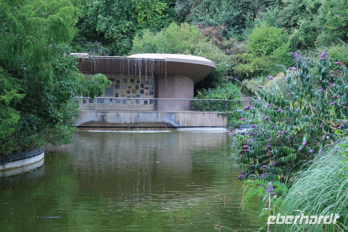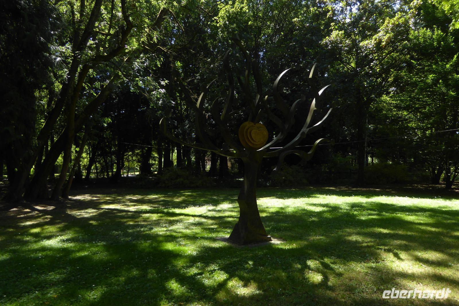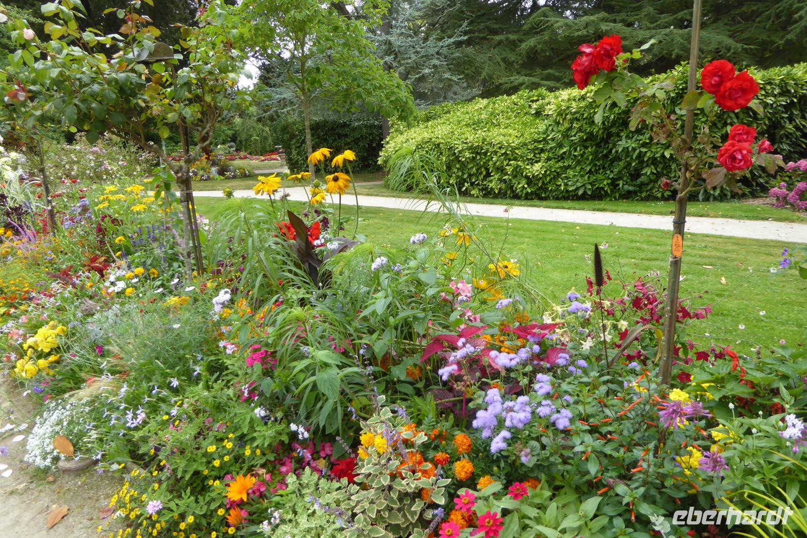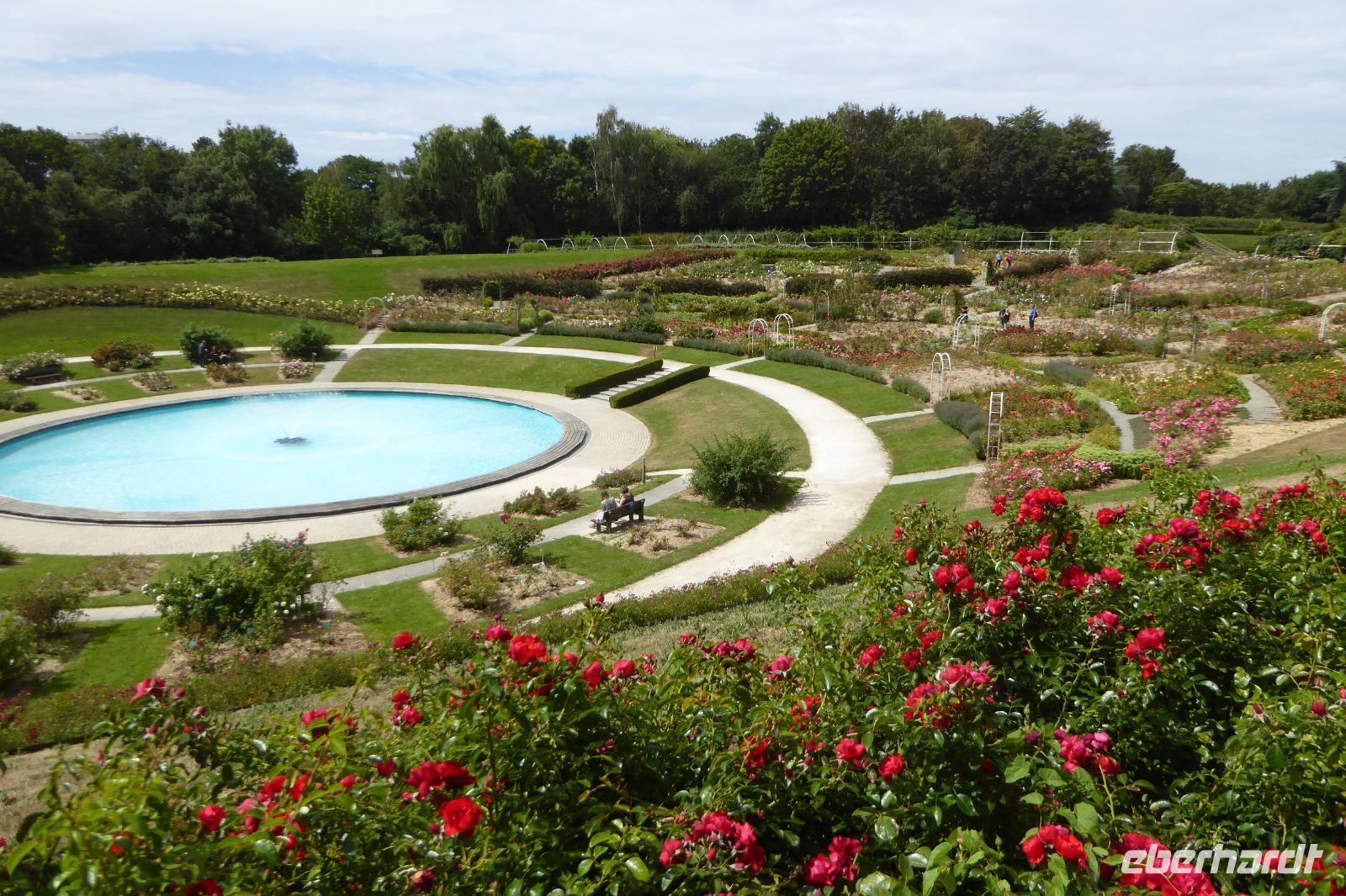 La Colline aux Oiseaux ist ein ganz besonderer Ort: zuerst ein Steinbruch, dann für 50 Jahre eine Mülldeponie und heute ein öffentlicher 17 Hektar großer Blumenpark, der zum Gedenken des fünfzigsten Jahrestag der Landung der Alliierten in der Normandie am 06.06.1944 eröffnet wurde.In einer kleine Farm auf der Spitze des Hügels präsentieren sich alte normannische Tierrassen und zeichnen deren Herkunft nach. Ein Spielplatz, ein Labyrinth und ein wunderschönes Tal der Rosen: Die abwechslungsreiche Gestaltung der gepflegten Anlage läd zum Flanieren ein. Und gleich am Eingang des Parks lockt ein kleines Restaurant zu einer Pause im Schatten. Zu Fuß erreichten wir in wenigen Minuten das gleich neben dem Park befindliche Mémorial von Caen.