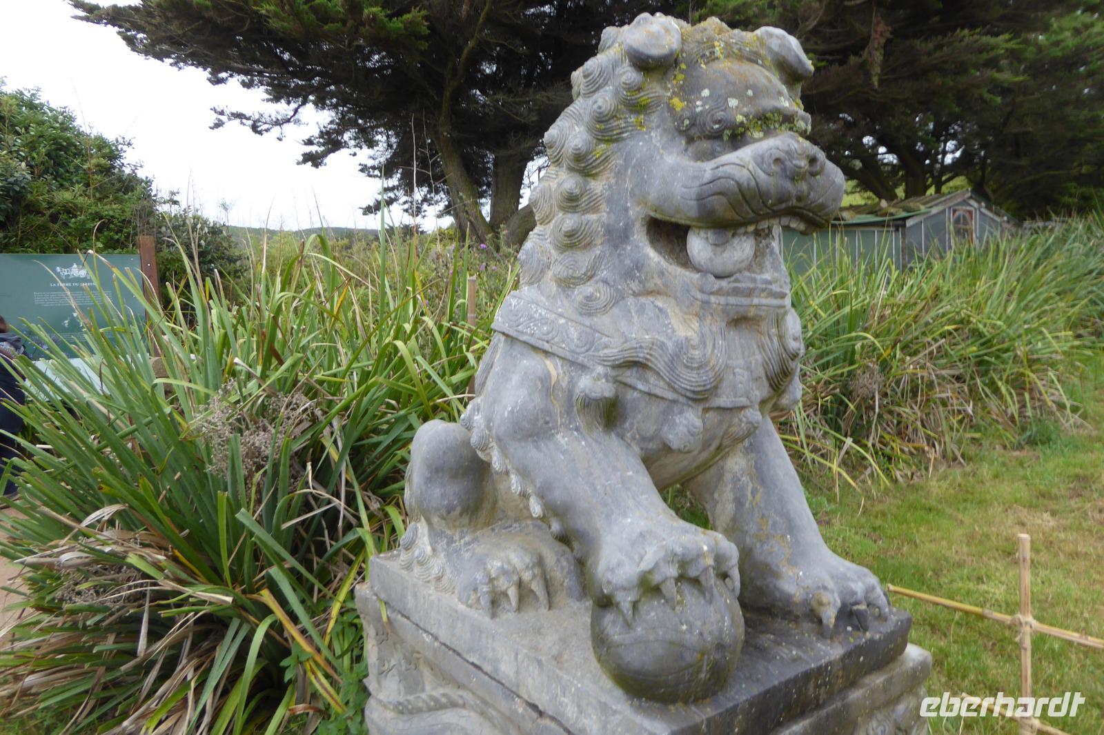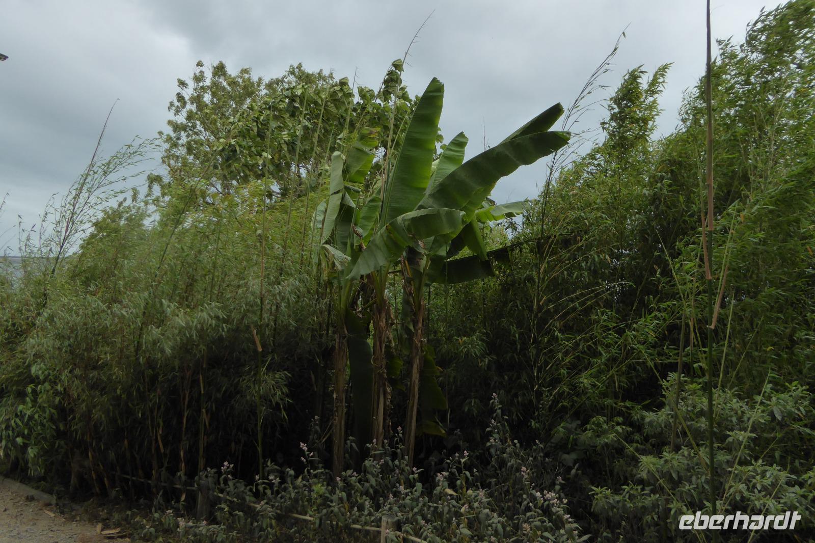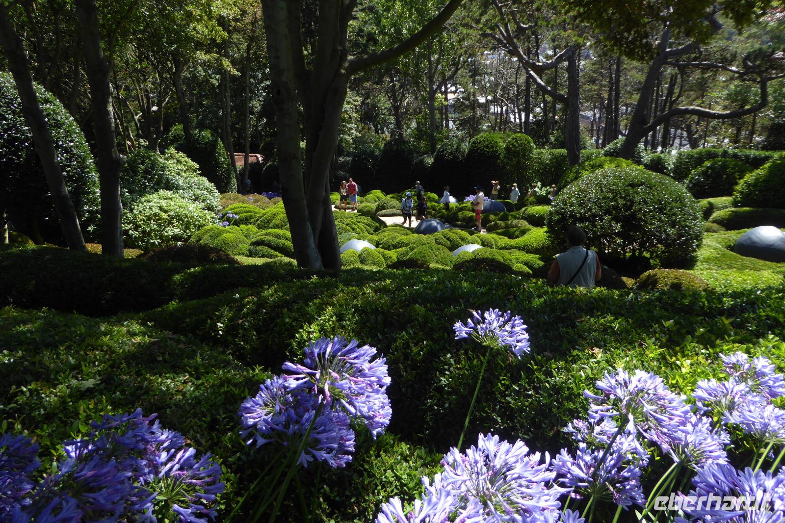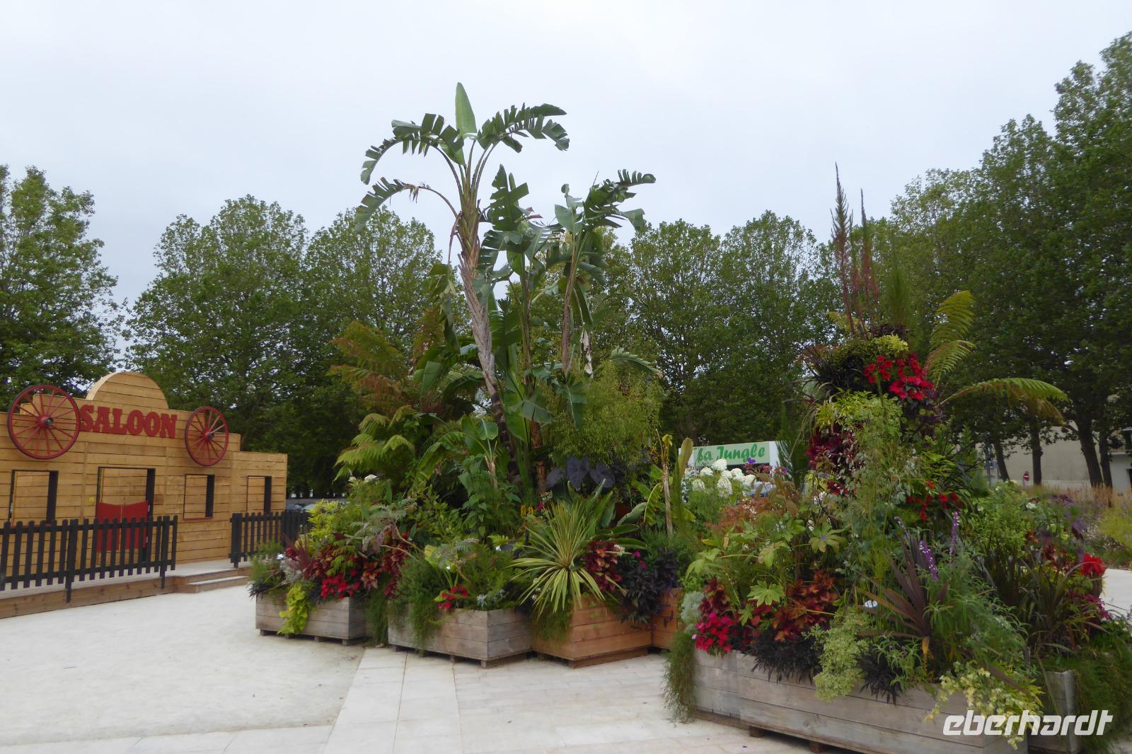 Der nördlichste Palmengarten Frankreichs, direkt am Meer gelegen, profitiert vom milden Klima des Golfstroms auf dem Cotentin. Der Park umgibt das Schloß von Vauville am Rande des pittoresken Dorfes und wurde von Eric und Nicole Pellerin im Jahre 1947 geschaffen. Heute ist er ein außergewöhnlicher botanische Garten von 4 Hektar mit mehr als 900 Sorten Pflanzen, die eine erstaunliche tropische Stimmung erzeugen. Palmen, Eukalyptus, Gingko, Guave, Wollemie und Kampferbaum, Rhododendren, üppige Gunnera und bunte Blühpflanzen, darunter wieder verschiedene Sorten Hortensien. Die beiden Katzen Odette und Eugène begleiteten uns auf unserem Streifzug durch den Park und eine farblich abgestimmte Volontärin erläuterte uns die Besonderheiten der Pflanzen. Mit einem herzlichen Dankeschön verabschiedeten wir uns von ihr, bevor uns ein typischer normannischer Regenguss aus dem Paradies vertrieb.
