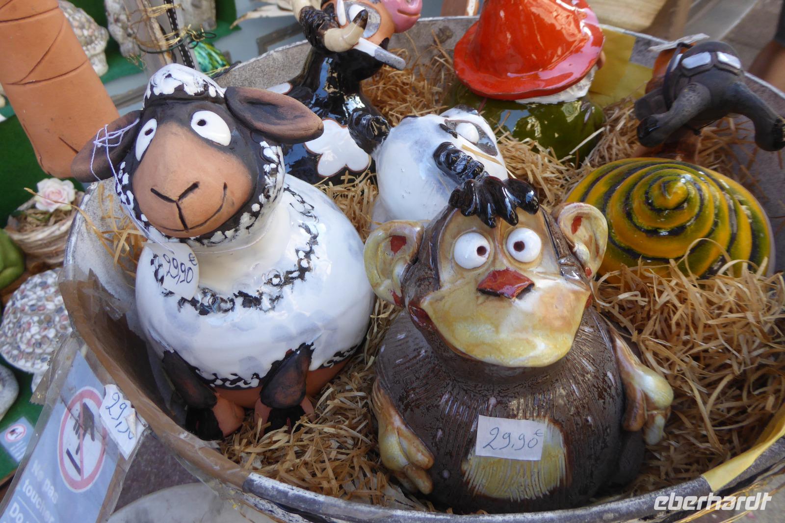 Honfleur war jahrhundertelang der unbedeutendere Hafen im Gegensatz zu Harfleur auf dem anderen Ufer der Seinemündung. Erst mit der Zeit hat sich das Städtchen mit seinen pittoresken, schmalen, sechs Stockwerk hohen Häusern und den Resten seiner Befestigungsanlagen aus dem 17. Jahrhundert am alten Hafenbecken zu einem der reizvollsten Orte der Normandie entwickelt. Durch Eugène Boudin, hier 1824 geboren, dem ersten Freiluftmaler dieser Küstenlandschaften, wurde der Ort in Künstlerkreisen schnell bekannt und die malerische Atmosphäre des Städtchens und der Seine-Mündung zog Maler wie Courbet, Sisley, Jongkind, Claude Monet, Pissarro, Renoir und Cézanne nach Honfleur. Die Ferme St-Siméon, ein Bauernhof etwas außerhalb, war der Treffpunkt der Künstler und gilt heute als die Wiege des Impressionismus. Der Komponist Eric Satie, der Wegbereiter der modernen Musik, erblickte 1866 in Honfleur das Licht der Welt. In seinem Wohnhaus ist ein kleines Museum eingerichtet. Sehr eindrucksvoll ist auch die Holzkirche Sainte Catherine mit dem freistehenden Turm und ihren beiden Zwillingsschiffen, die von Schiffszimmerleuten im 15. Jahrhundert errichtet wurde. Die bunten Marktstände vor der Kirche lockten mit leckeren regionalen Produkten und so bummelten wir gemächlich über den Markt und durch die pittoresken engen Gassen der Stadt, bewunderten das bunte Angebot an Krimskrams und probierten die leckeren Karamellbonbons mit Fleur de Sel.