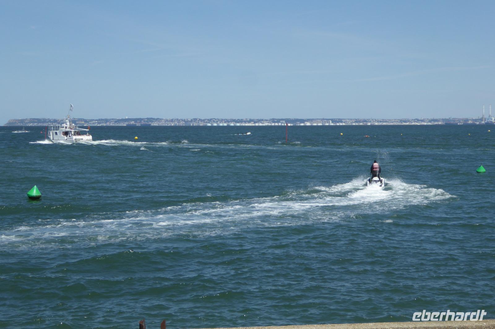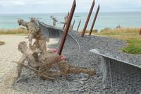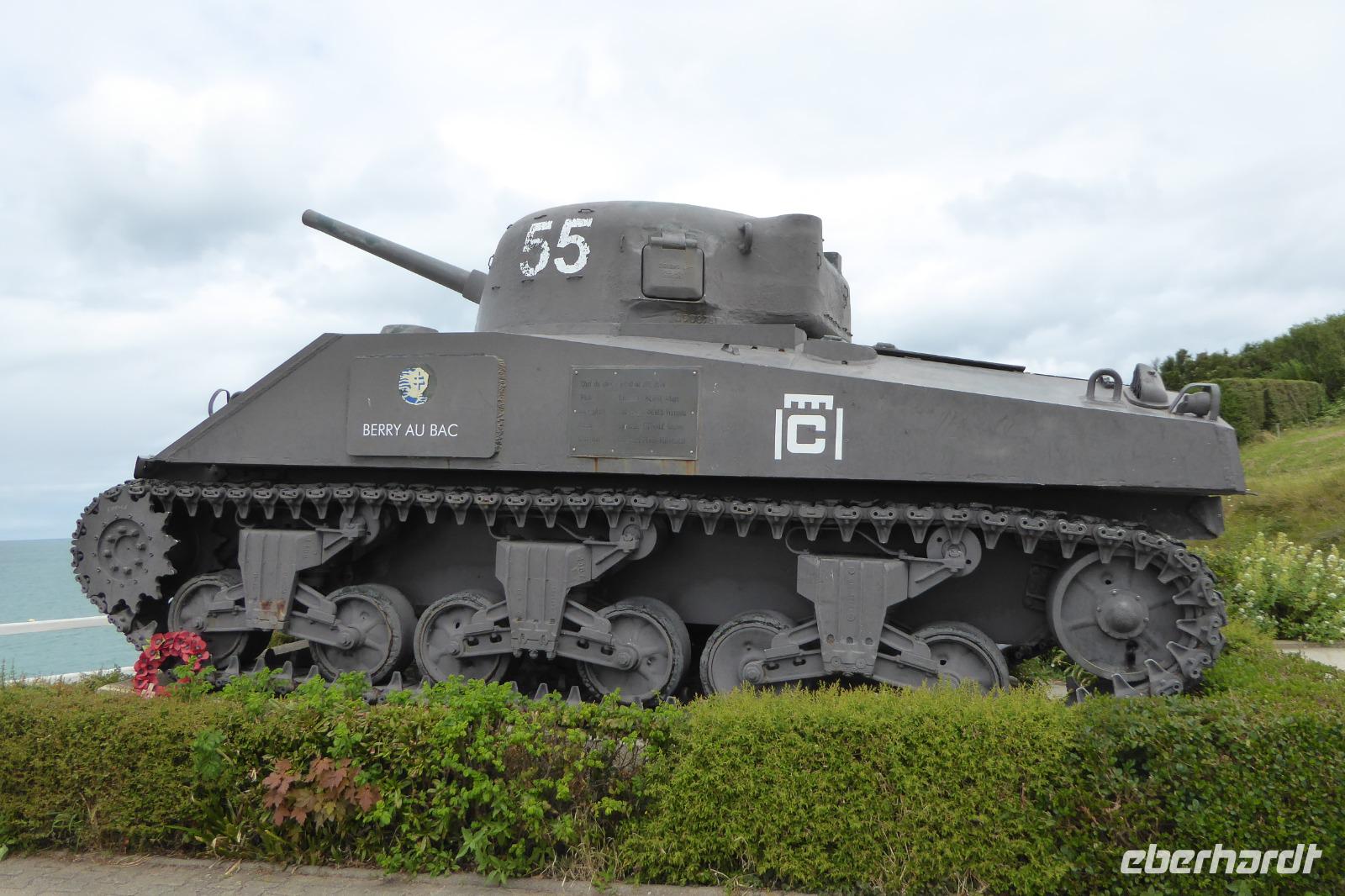 Bei einer Reise in die Normandie darf ein Besuch an den Landungsstränden nicht fehlen und so machten wir einen kurzentschloßen kleinen Umweg über Arromanches. Bei der Landung der Alliierten in der Normandie während des Zweiten Weltkriegs 1944 lag Arromanches im Landeabschnitt Gold Beach. Nach der Landung wurde vor der Küste einer der beiden künstlichen Häfen, Mulberry B, gebaut, über den Truppen und Nachschub an Land gebracht wurden. Die Reste der Anlage tauchen bei Ebbe immer wieder aus dem Meer auf. Von der Aussichtsplattform über der Stadt informierten wir uns über den D-Day und spazierten anschließend, vorbei am einem Sherman Panzer, hinunter in den Ort.
