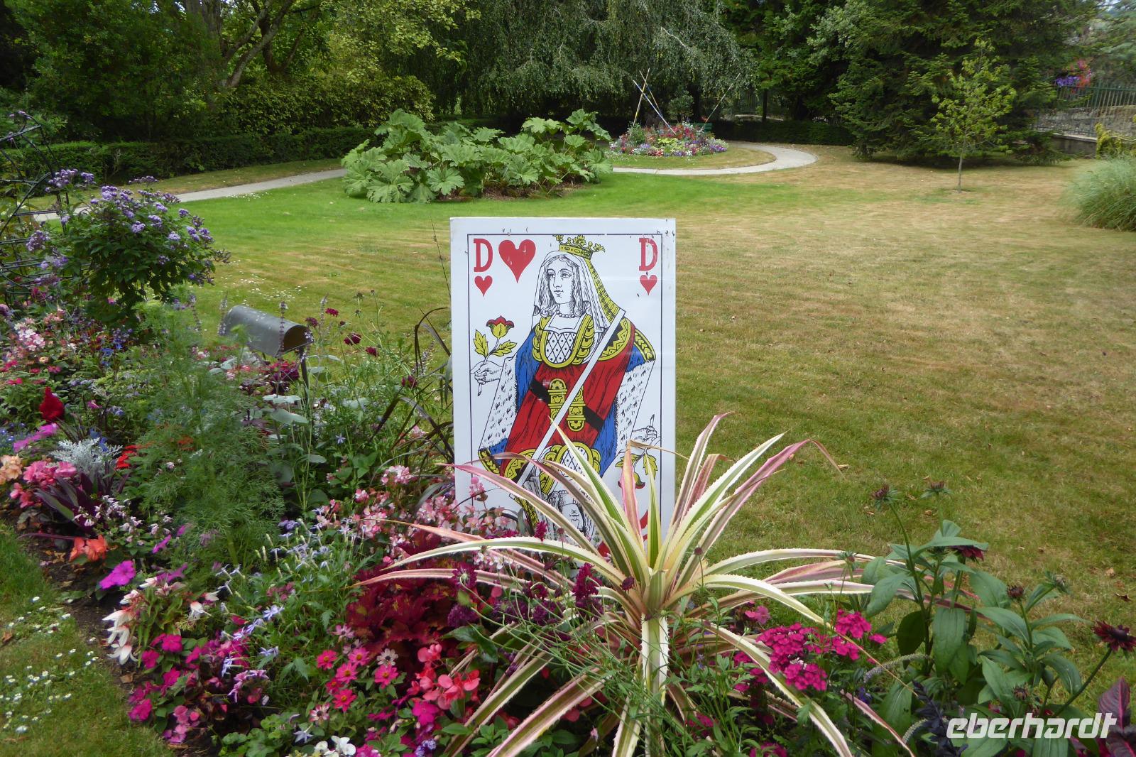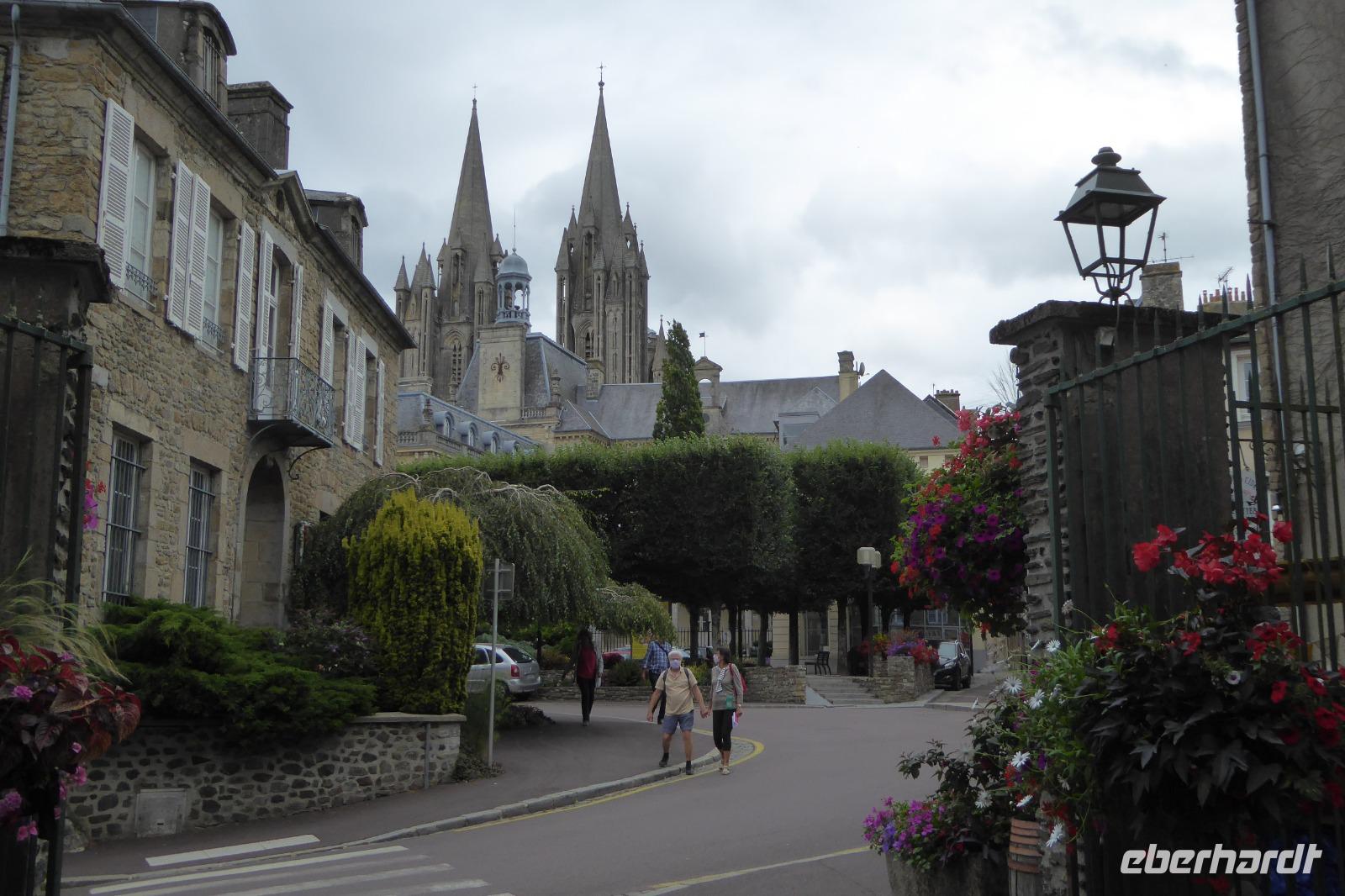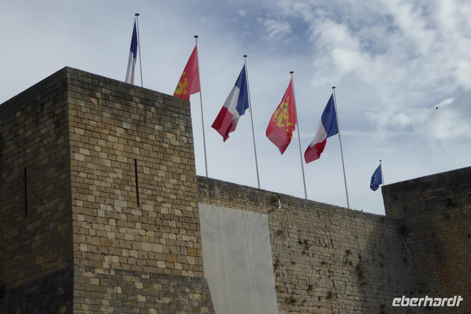 Unsere nächste Station war das kleine knapp 100 Kilometer entfernte Städtchen Coutance. Der Hauptplatz wird gesäumt vom fahnengeschmückten Rathaus und der Kathedrale mit ihren beiden spitzen Türmen. Die ursprünglich romanischen Türme wurden zur Stabilisierung mit Kalkstein aus der Region umkleidet, nach oben erweitert und zusätzliche Treppentürme wurden an den äußeren, vorderen Ecken angebaut.Der Jardin des Plantes, der zurecht im Jahre 1992 in die Liste der nationalen Denkmäler Frankreichs aufgenommen wurde, ist einer der schönsten Gärten der Basse-Normandie. Er befindet sich auf dem Gelände eines bereits seit 1675 von Julien Rihouey angelegten privaten Gartens. Jean-Jacques Quesnel de la Moriniere, der das Anwesen 1823 erwarb, vererbte den Besitz der Stadt Coutances mit der Auflage, dort ein Museum und einen botanischen Garten zum Wohle des Volkes einzurichten. Mit dem Entwurf wurde der pensionierte Pionier-Offizier und Aquarellmaler Adéle Sebastian Minel beauftragt. Es entstanden großzügige italienische Terrassen, seltene Bäume wurden im englischen Stil gruppiert, ein Labyrinth, Wasserspiele und herrliche kunstvolle Blumenmosaike wurden angelegt. Zu Ehren des Gebers wurde ein Obelisk aufgestellt. Der Park wurde im Jahre 1855 als einer der ersten seiner Art fertiggestellt und wurde zum Vorbild öffentlicher Gärten in der Normandie des Zweiten Kaiserreiches im 19. Jahrhundert. Leider sind die dortigen Toiletten auch noch aus dieser Zeit und eröffneten uns einen Einblick in die Geschichte der öffentlichen französischen Toilettenanlagen!!