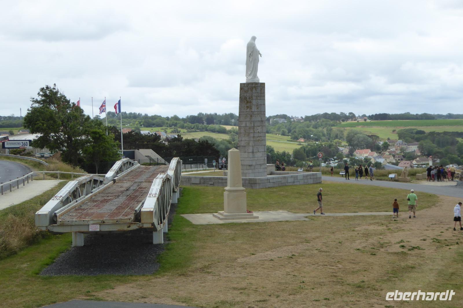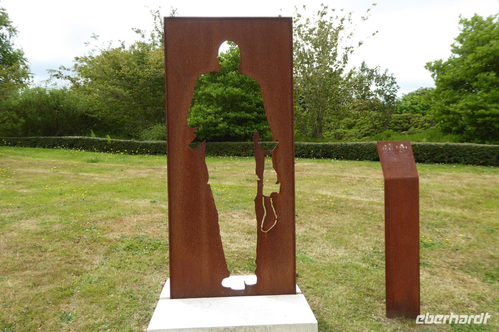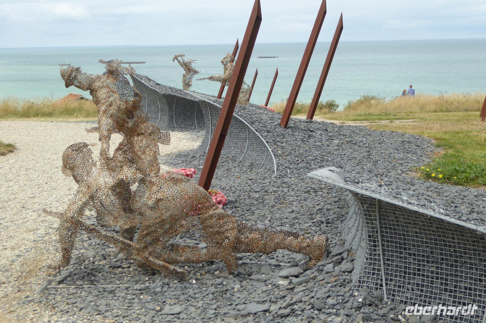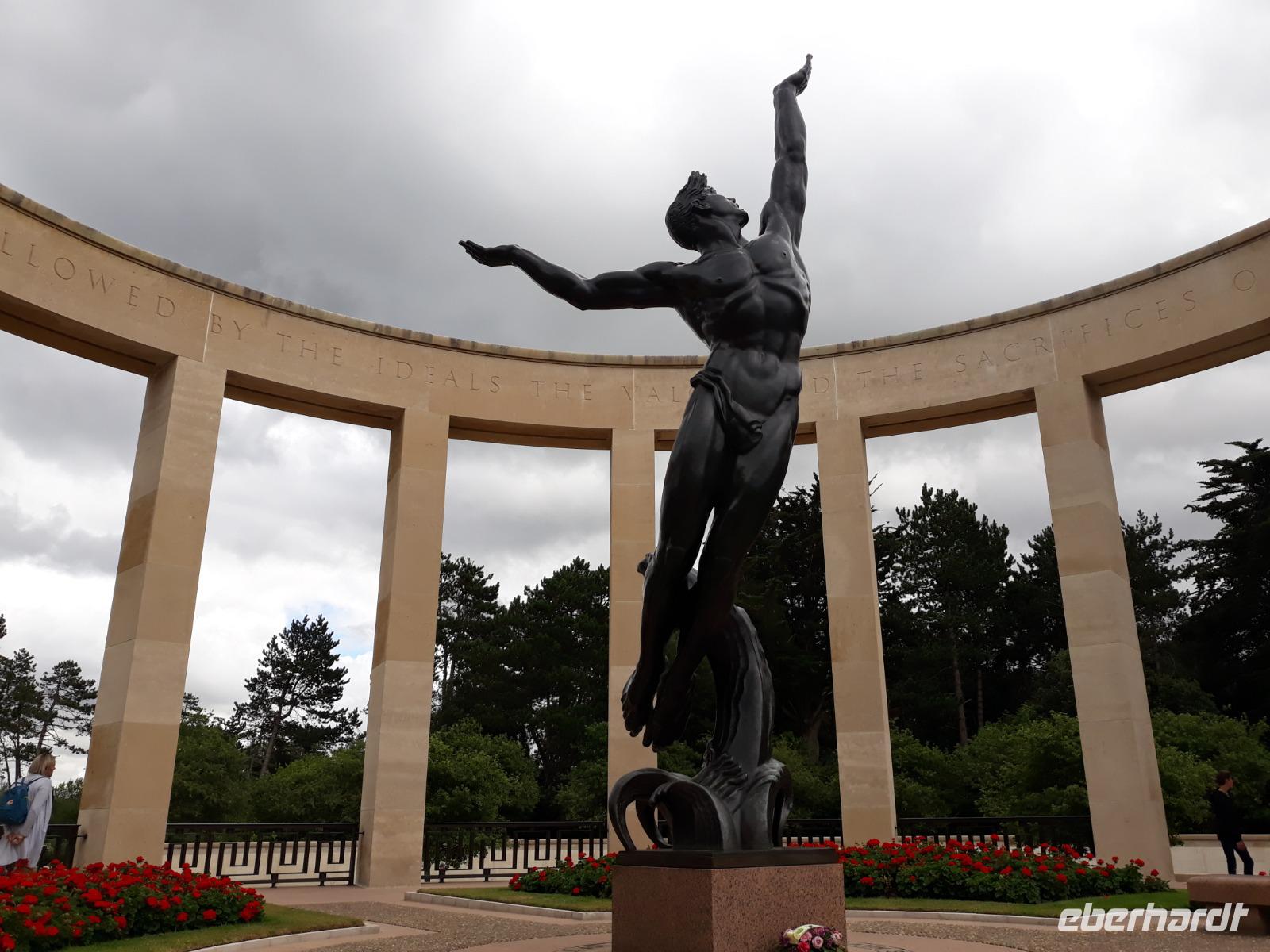 Der amerikanische Soldatenfriedhof in Colleville-sur-Mer ist der berühmteste an den Krieg erinnernde Friedhof in der Normandie. Lange Reihen weißer marmorner Kreuze und Davidsterne symbolisieren die Opfer der Vereinigten Staaten von Amerika, die für die Freiheit gebracht wurden. Der Friedhof befindet sich an einer Stelle, von der man einen eindrucksvollen Blick über den Küstenabschnitt Omaha Beach hat, wo die Amerikaner ihre größten Verluste zu beklagen hatten. Viele Elemente verbinden sich zu einem bleibenden Eindruck: Die halbkreisförmige Säulenreihe, die kunstvolle Statue, das große Becken mit klarem Wasser, und der makellose Park, der die Gräber von 9.387 amerikanischen Soldaten umgibt, die am D-Day und bei den folgenden Gefechten der Schlacht um die Normandie ihr Leben ließen. Mit erschütternden Geschichten aus den Tagen der Besatzung erklärte uns Béatrice, eine junge Volontärin, die besondere Bedeutung des Ortes und appellierte an die besondere Verantwortung jedes Einzelnen für den Frieden.