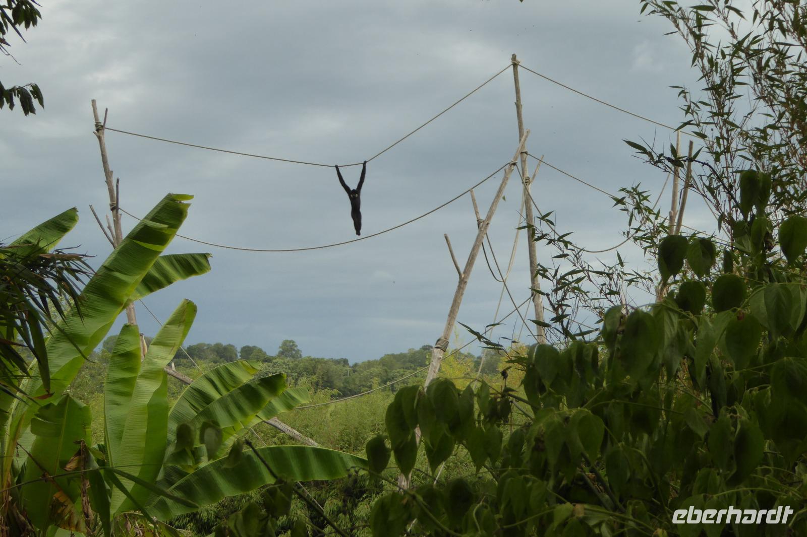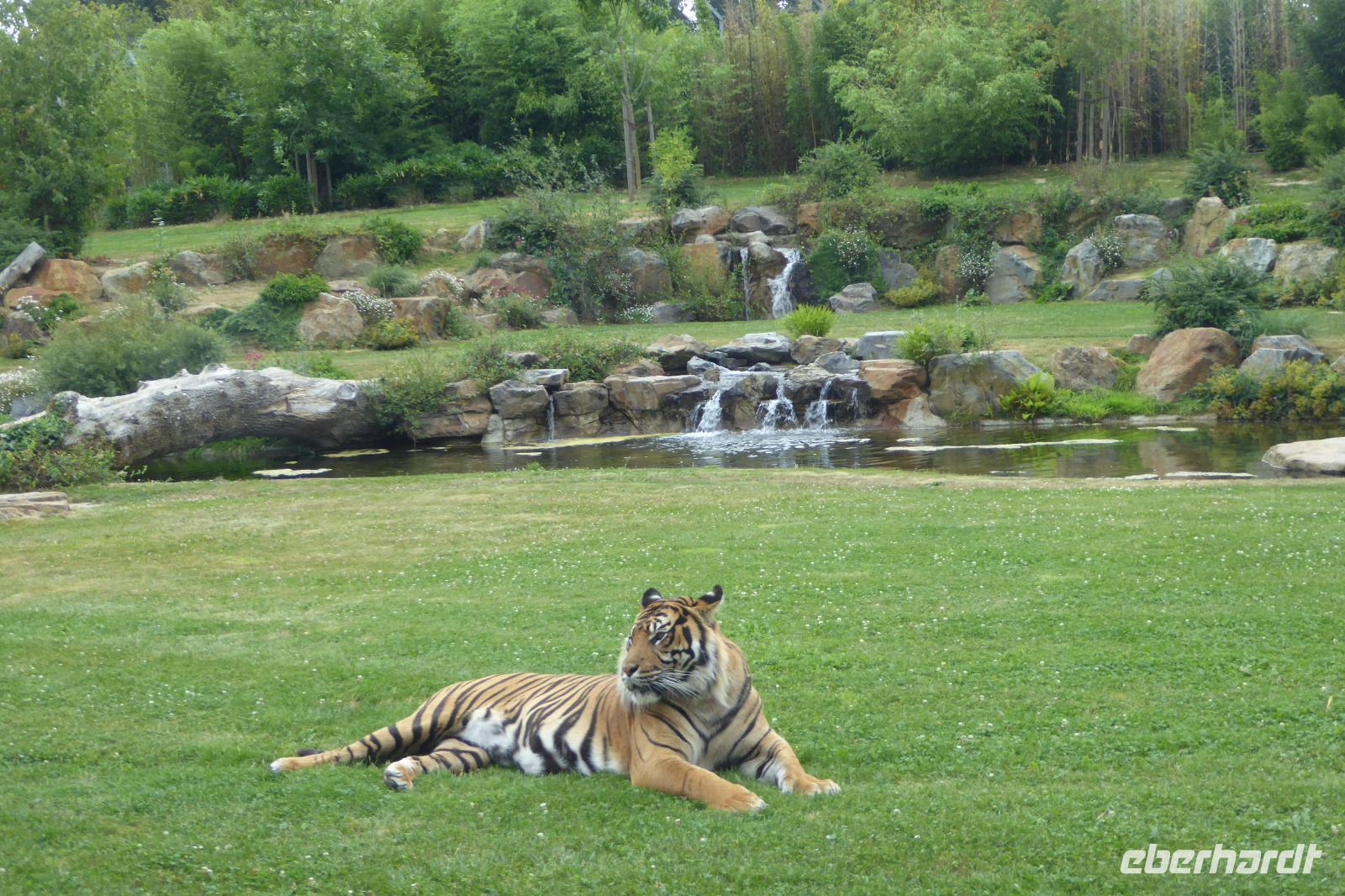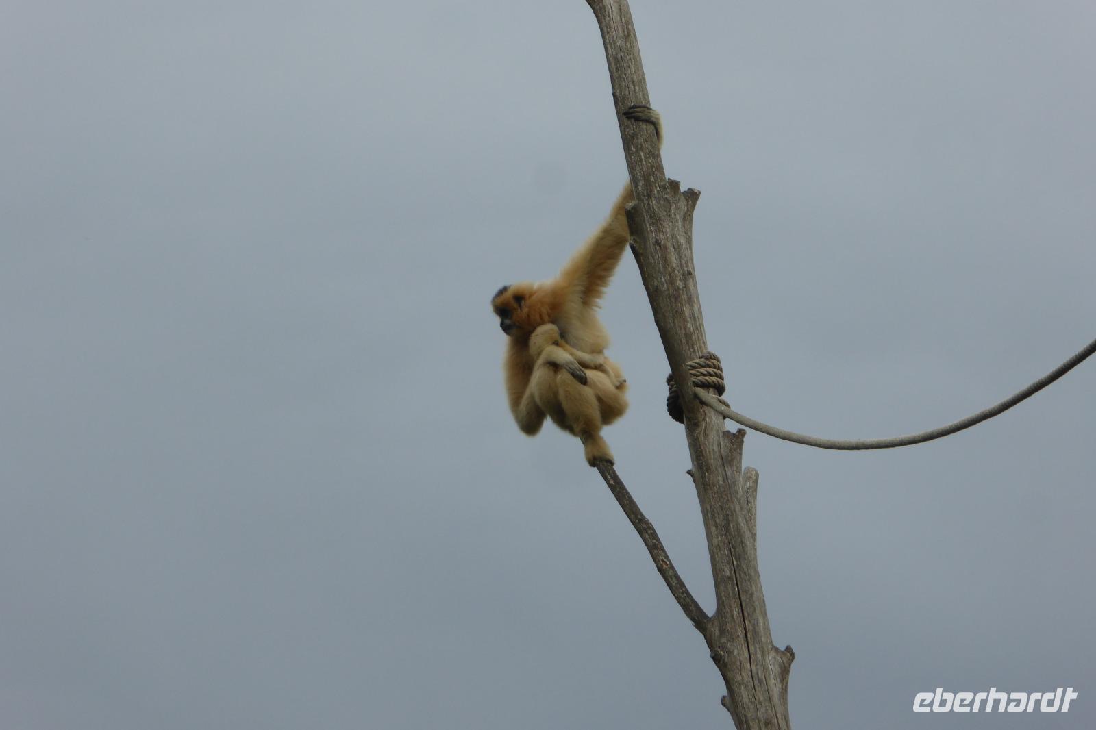 Der Nachmittag gehörte ganz dem Zooerleben! Im Zoo von Champrépus fügt sich die Wildtierwelt harmonisch in die Landschaft ein. Löwen, Gibbons und Pinguine betrachtet man in ihrer natürlichen Umgebung. Jeder Bereich des Zoos hat eine ganz eigene Flora und Fauna. In den wilden Madagaskar-Gärten haben zu Scherzen aufgelegte Lemuren ihr Zuhause. Unter Bananenbäumen und Baumfarnen verstecken sich Sumatra-Tiger und persische Panther. In der afrikanischen Savanne tummeln sich Zebras und Giraffen. Der Zoo von Champrépus bietet auf 10 Hektar 60 in ihrer Heimat meist bedrohten Tierarten aus fünf Kontinenten eine Heimat in naturnaher geschützter Umgebung. Der Tierpark ist Teil der CEPA, einer französischen Arten- und Populationsschutz Organisation. Er beteiligt sich auch an internationalen Nachzuchtprogrammen. Noch lange könnte man in diesem Tierpark der besonderen Art verweilen. Im Miteinander von Mensch und Tier erlebt man hier eindrücklich, wie wichtig der Tierschutz und das Tierwohl in unserer heutigen Gesellschaft ist und wo wir alle unseren Beitrag dazu leisten können. Ein veritabler Sturm zerzauste die riesigen Bananenstauden und die Palmen bogen sich im Wind, sodass wir froh waren, leidlich trocken wieder unsere Arche zu erreichen!