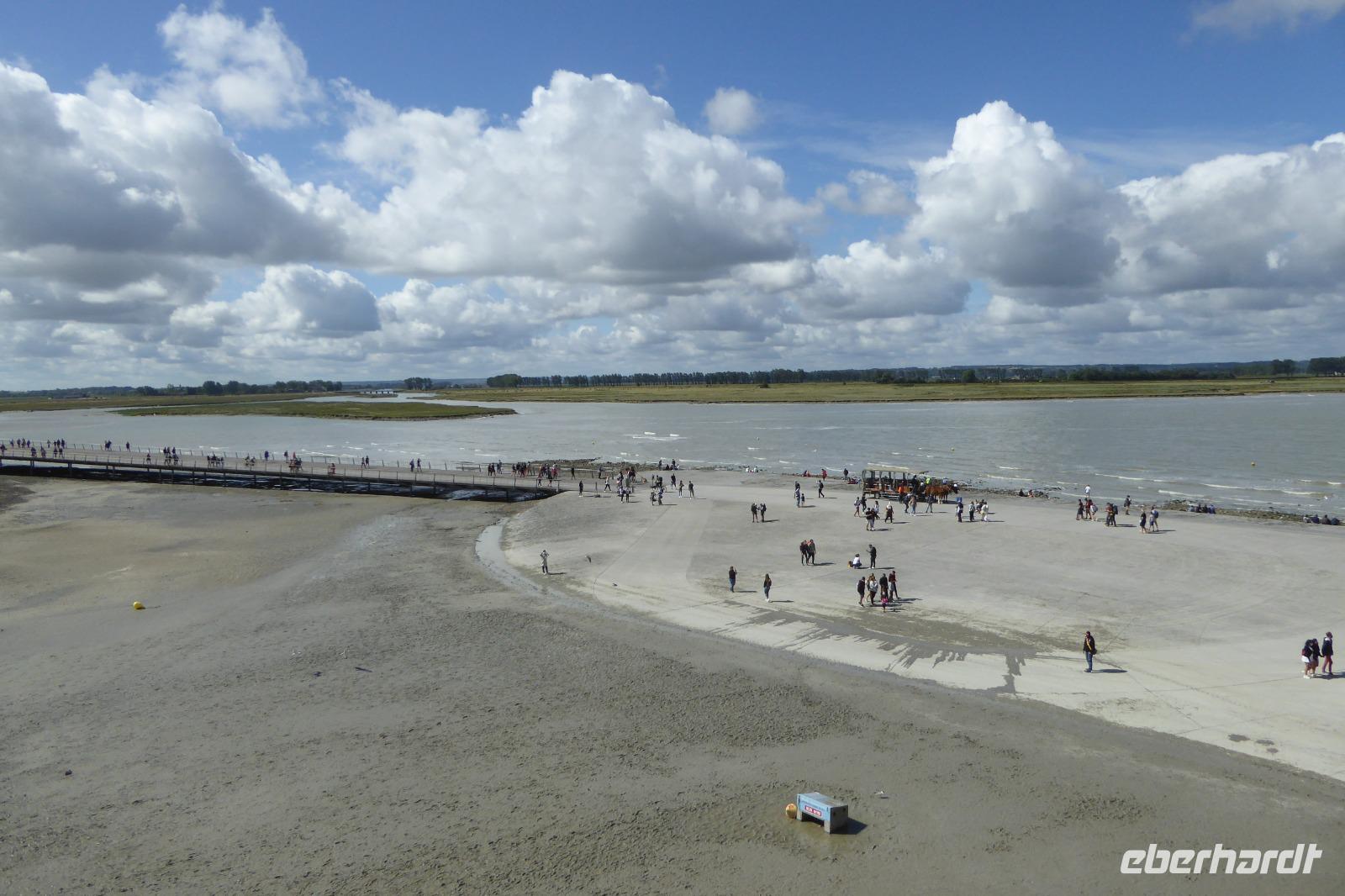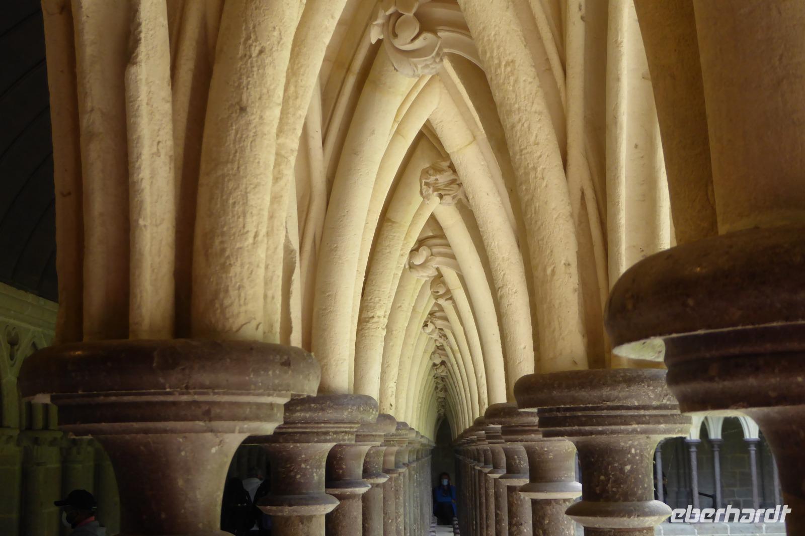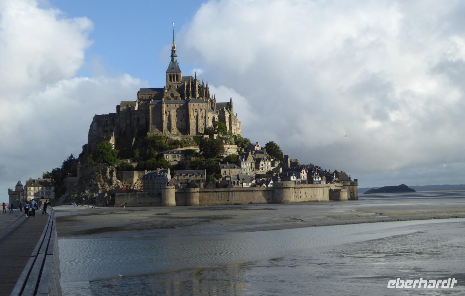 Bereits am Vorabend trafen wir in unserem Hotel zu Füßen des Mont Saint Michel ein. Doch nach dem Abendessen hatte keiner mehr Lust, das Hotel zu verlassen! So machten wir uns am nächsten Morgen früh auf den Weg entlang des Couesnon über die Stelzenbrücke zum Mont Saint Michel. Noch vor dem großen Ansturm erreichten wir den Inselberg, der auch bei Ebbe ein imposantes Bild bot. Um die obere Abteikirche zu erreichen müsse erst viele steile Stufen erklommen werden, doch die grandiose Aussicht von oben entschädigt für alle Mühen! Ausgerüstet mit Audioguides ließen wir uns die Geschichte der bedeutenden christlichen Wallfahrtsstätte, seit 1979 UNESCO Weltkulturerbe, erklären. Lange Jahre nach der französischen Revolution war die alte Klosteranlage ein gefürchtetes Staatsgefängnis, bevor sich Victor Hugo und andere für die Restaurierung des Ensembles stark machten. Jedes Jahr kommen mehr als drei Millionen Besucher zu dem heiligen Berg im Meer, der seit 1300 Jahren die Menschen in seinen Bann zieht. Bei unserem Rundgang über die Festungsmauern konnten wir die Wattwanderer beobachten und sahen, einer Ameisenstraße gleich, die Besuchermassen den Berg erstürmen. Glück gehabt, das frühe Aufstehen hat sich gelohnt- wir hatten den Berg noch fast ganz für uns und konnten im Kreuzgang noch die meditative Stille genießen!