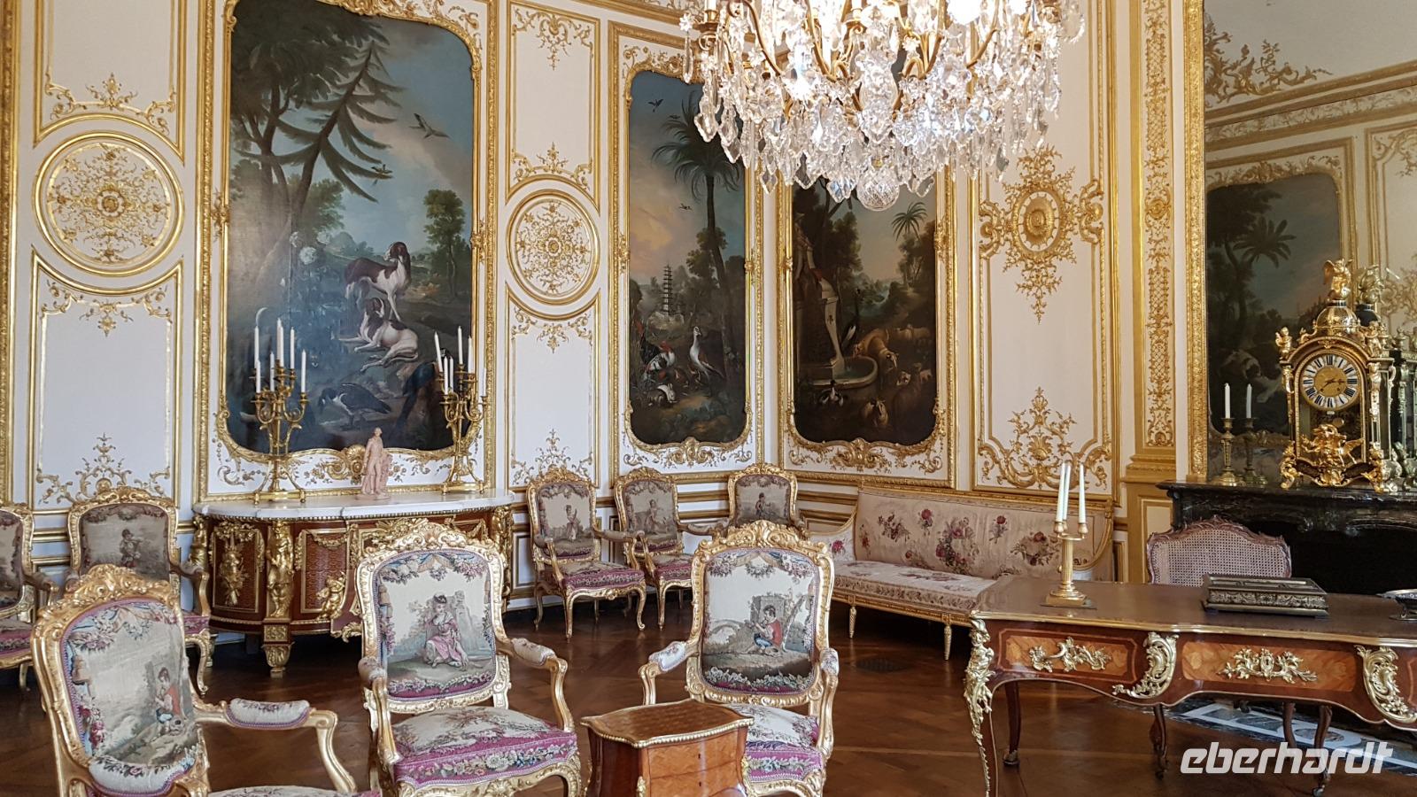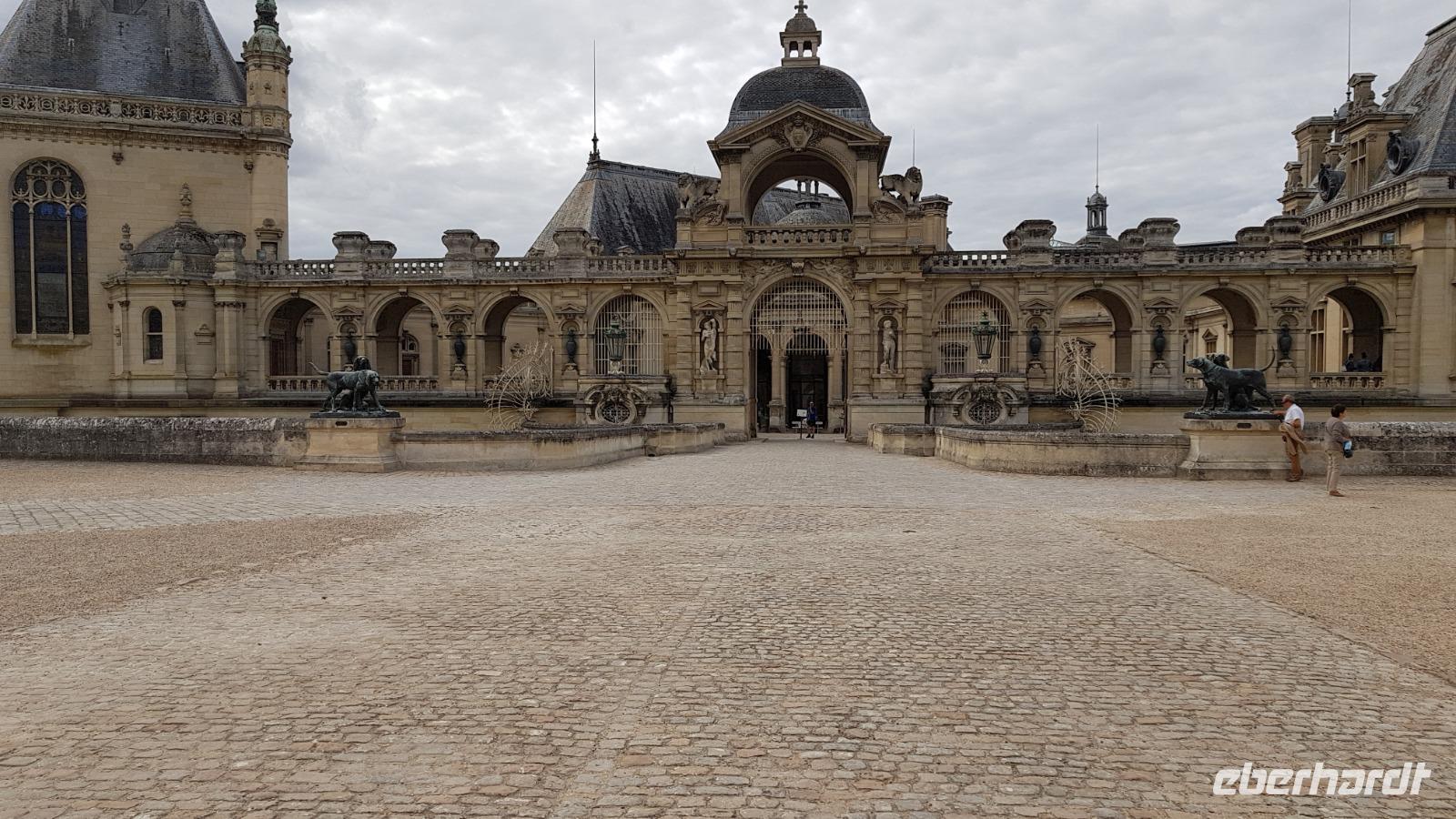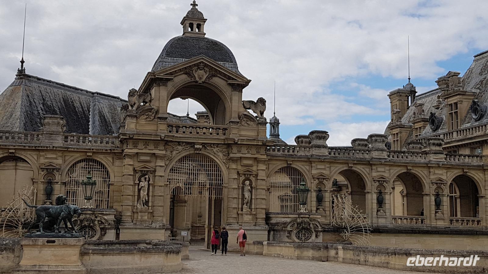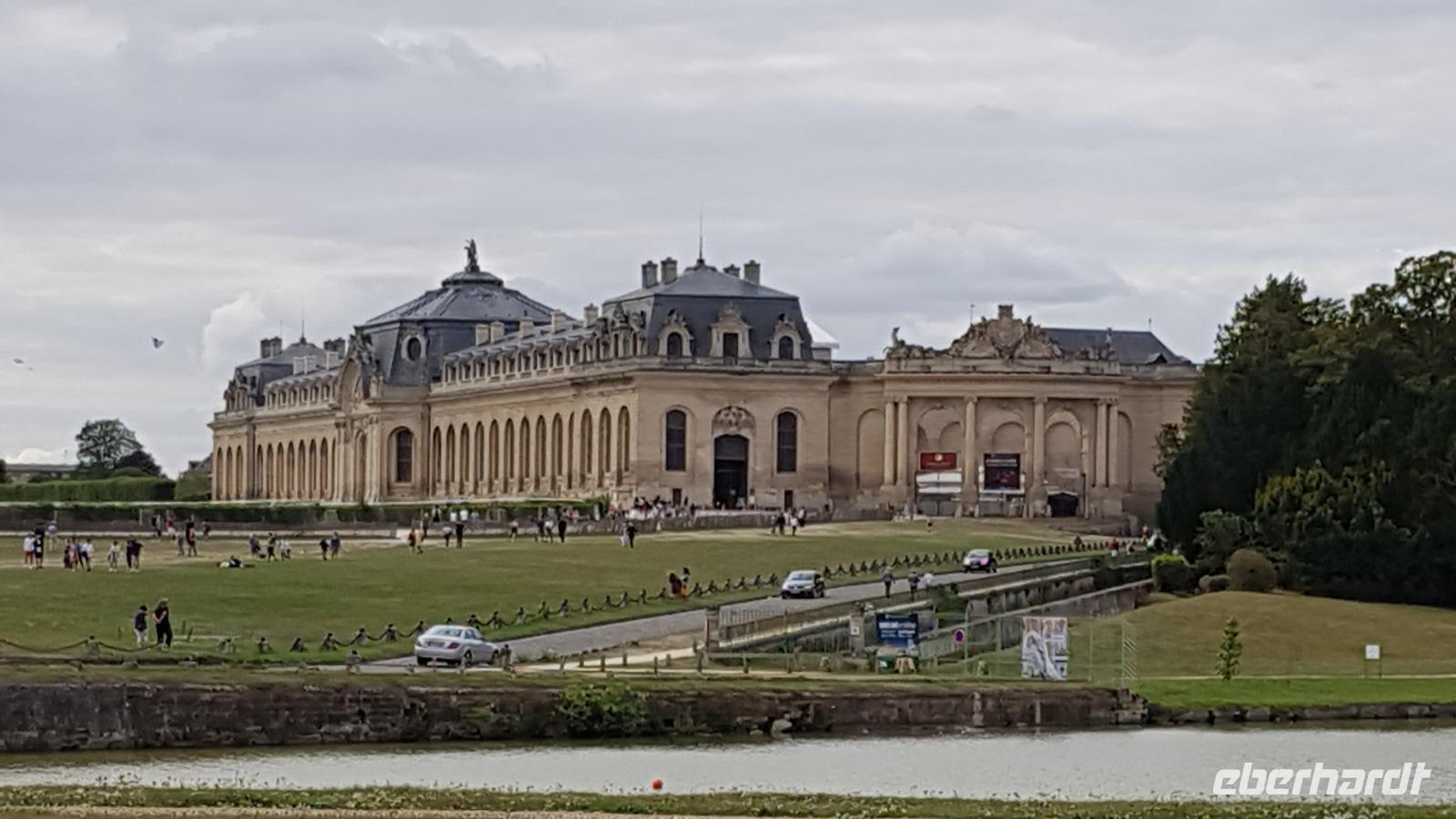 Dann, nach einer Mittagspause auf einer Autobahnraststätte ging es von der Champagne in die alte Region der Picardie, die seit 2016 zur Region Haute-de-France (Nordfrankreich) gehört, nach Chantilly. Nach dem Privatgarten der Madame de Ladoucette galt es hier ein Gartenkunstwerks des Stars unter den Gartenkünstlern Ludwig XIV. André Le Nôtre kennen zu lernen. Zunächst besichtigten wir jedoch das Schloss mit seiner erlesenen Kunstsammlung, die zu den Besten Frankreichs gehört. Das Schloss wurde 1484 als mittelalterliche Burganlage von dem Adelshaus der Montmorency erworben und durch den berühmten General Anne de Montmorency König Franz I. zwischen 1528 und 1551 zu einem Renaissance-Schloss umgebaut. Gut ein Jahrhundert später wurde dieses Schloss, das von 1643 bis 1830 Residenz der mächtigen Herzöge von Condé war, im barocken Stil umgestaltet. In diesem Zusammenhang wurde André Le Nôtre mit der Anlage des imposanten Schlossparks beauftragt. Die erlesene Kunstsammlung des Schlosses stammt von dem letzten Besitzer des Schlosses, Henri von Orléans, Herzog von Aumale, der das Anwesen von seinem Onkel, dem letzten Prinzen der Herzöge von Condé geschenkt bekam. Er errichtet das während der Revolution zerstörte Schloss von Neuem und ließ 1834 eine Pferderennbahn anlegen, die nach vielen Umbauten und Veränderungen dem Ort Chantilly heute als Topadresse des internationalen Pferdesports Weltberühmtheit verschafft.
