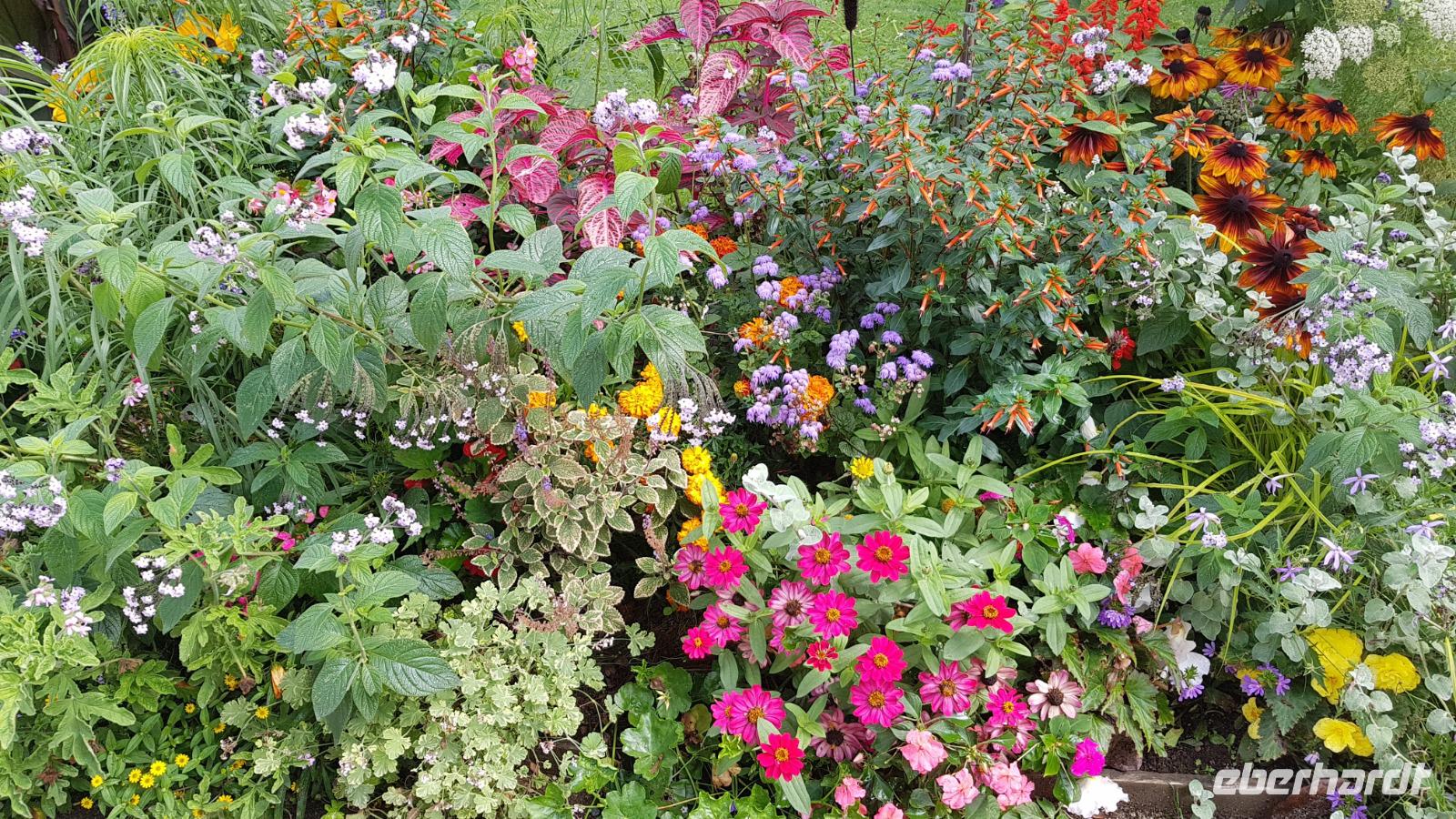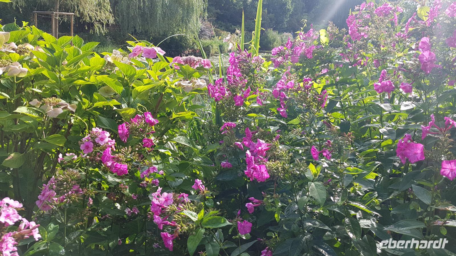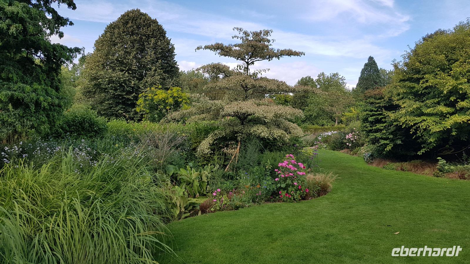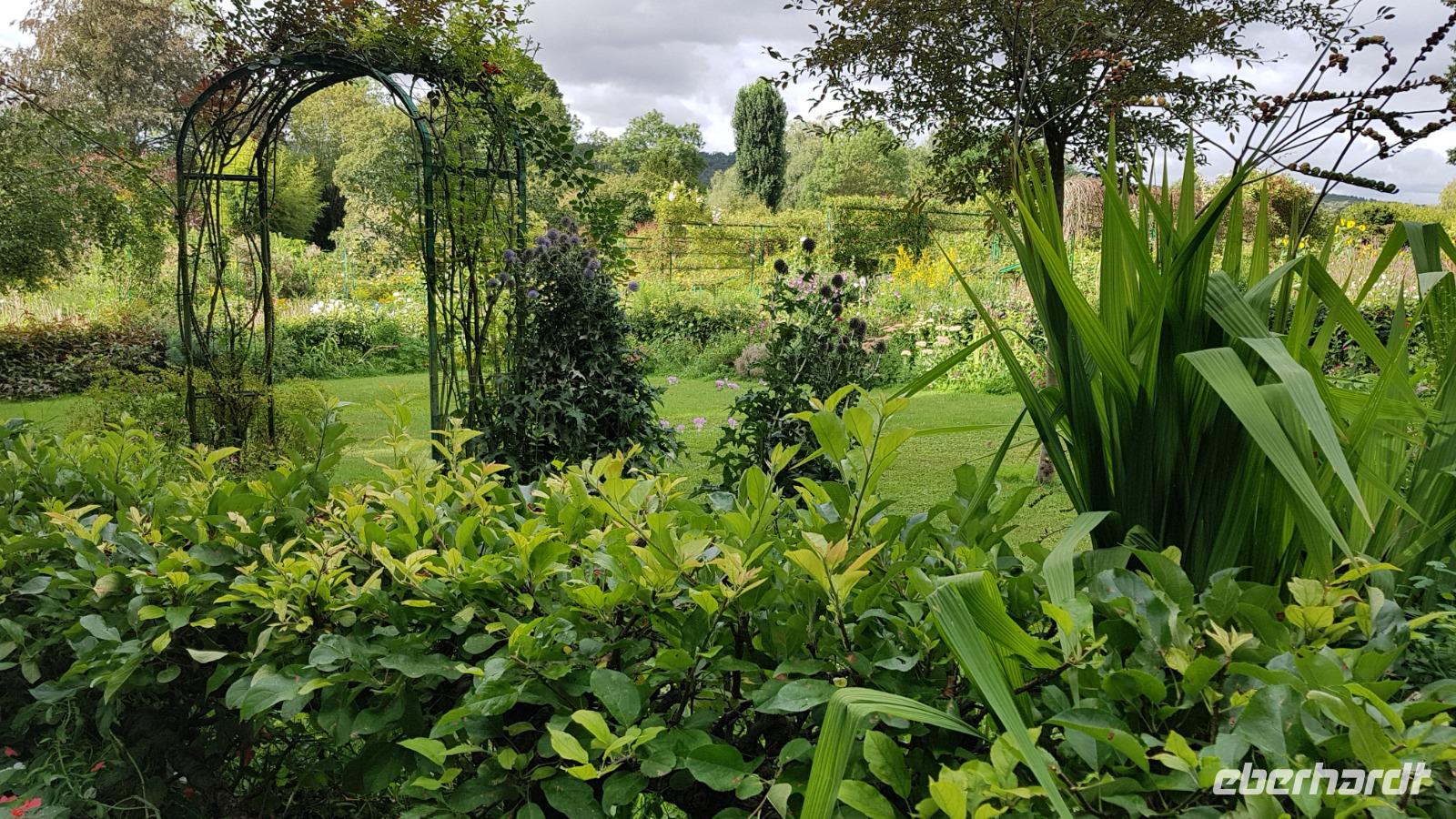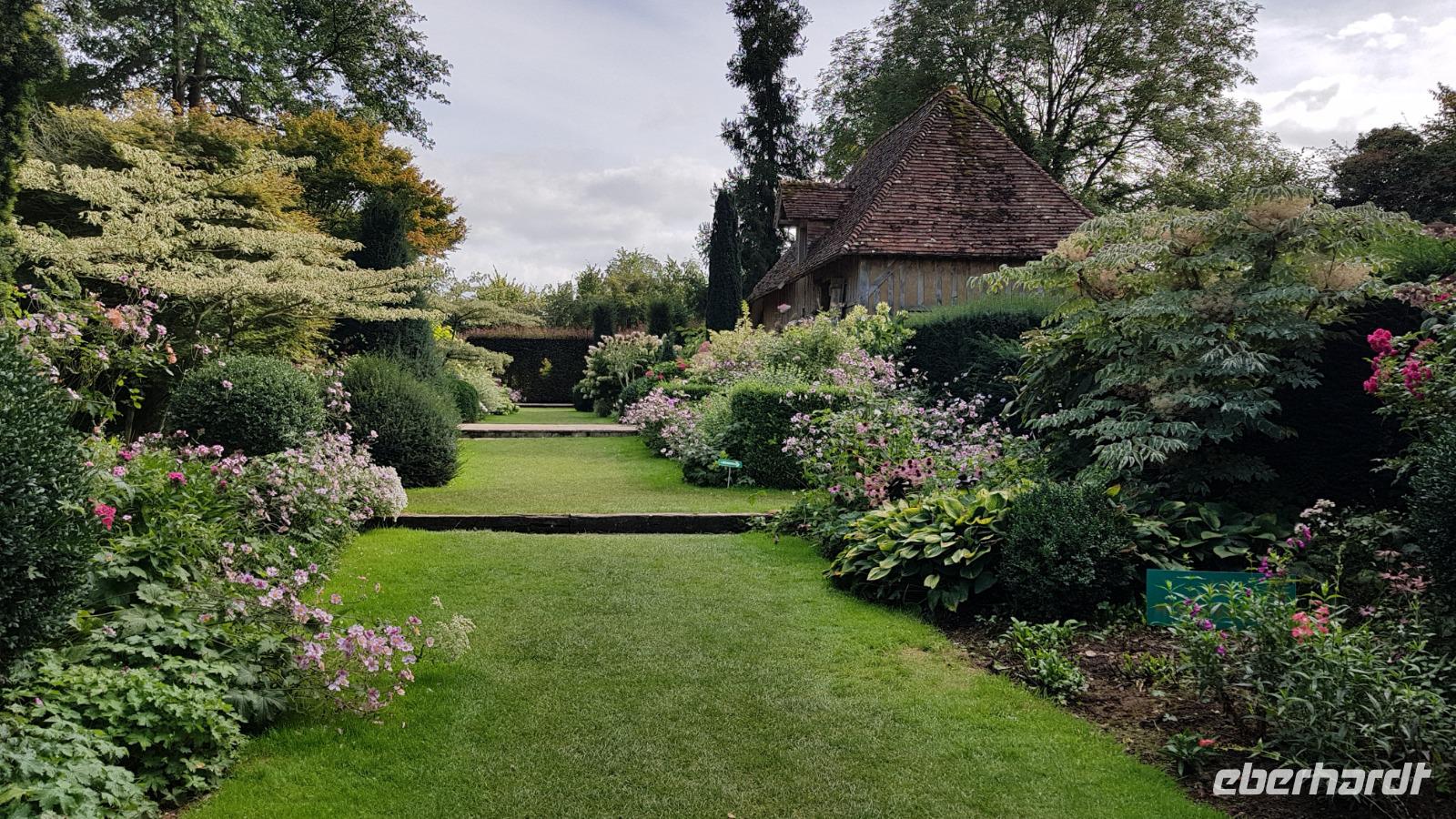 Dann blieben wir noch ein wenig in dieser schönen Landschaft, um den Garten „Jardins du Pays d'Auge" zu besuchen. Armelle und Jacques Noppe erwarben 1994 neben ihrem Bauernhaus eine 3 Hektar große Wiese auf der in den folgenden Jahren nach Plänen des Gartenarchitekten Chantal Lejard-Gasson ein Park entstand. Man plante von Anfang an, in die Gestaltung der einzelnen Gärten typische Gebäude des normannischen Landlebens, die man sonst abgerissen hätte, einzubeziehen. So entstand ein wunderschönes Ensemble von einmaligen Gartenräumen und traditionell ländlichen Bauten, das uns in dem milden Sonnenlicht des späten Nachmittags bezauberte.