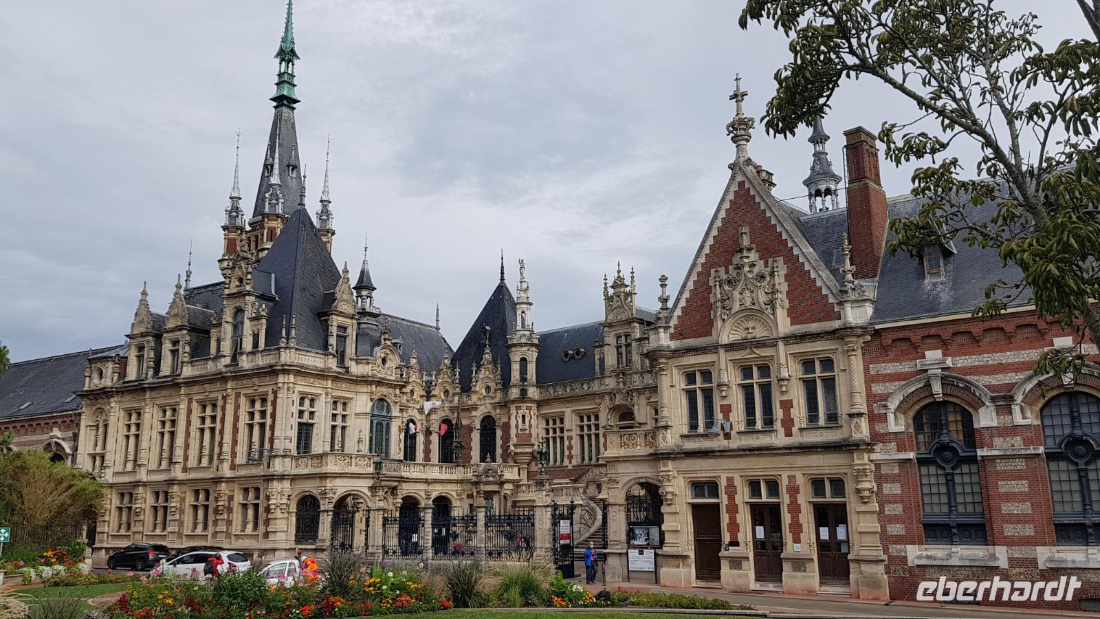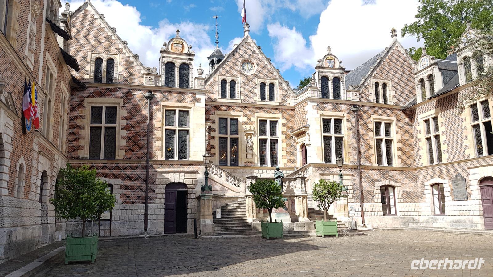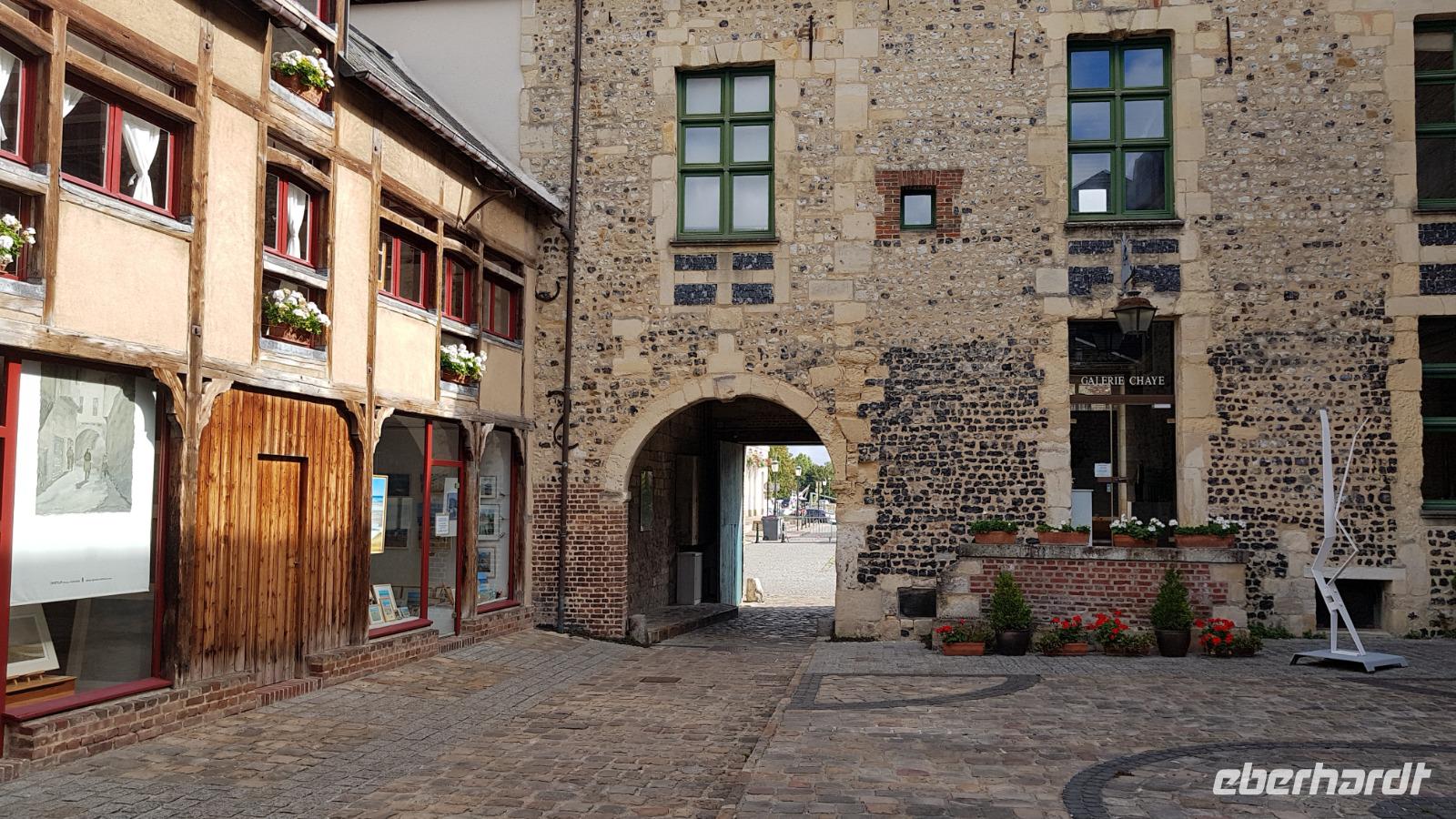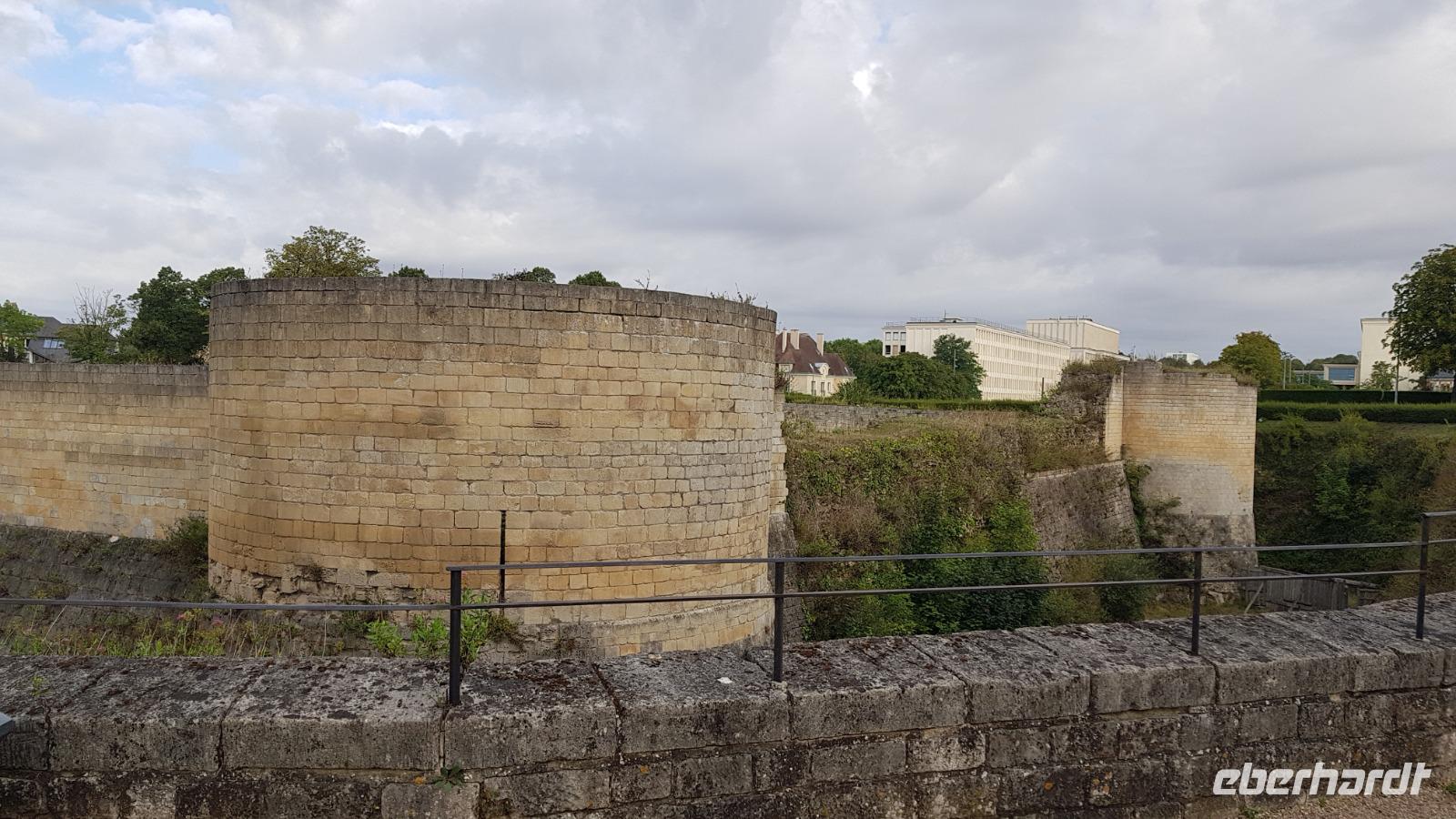 Heute wurde unser Frühstück entsprechend der Corona-Pandemie-Regeln wieder serviert, wobei es jedoch zu einigen Verzögerungen kam. Dann begannen wir zu Fuß unsere Stadtbesichtigung. Das Stadtzentrum von Caen wurde im II. Weltkrieg stark zerstört, da sich die Kämpfe um die Einnahme der Stadt durch die Alliierten sechs Wochen hinzogen. Dennoch sind einige historische Sehenswürdigkeiten erhalten geblieben und restauriert worden. So sahen wir das Hôtel d'Escoville, das Anfang des 15. Jahrhunderts für den Kaufmann Nicolas Le Valois d'Escoville erbaut wurde. Dann gingen wir zur Kirche St-Pierre. Sie wurde im 13. Jahrhunderts begonnen, aber erst im 16. Jahrhundert vollendet. Besonders prachtvoll ist das Chorhaupt mit feinstem Renaissance-Dekor ausgestattet. Manche Architekturmotive erinnern an die Loireschlösser, die zu dieser Zeit erbaut wurden. Nach der Besichtigung dieser Kirche gingen wir hinauf zur Burg, die einst Wilhelm der Eroberer um 1060 erbauen ließ und die seine Hauptresidenz wurde. Ihre mächtigen Außenmauern und Barbakane flößen auch heute noch Respekt ein. Im Inneren der Burganlage befindet sich ein bedeutendes Kunstmuseum, das stadt- und regionalgeschichtliche Museum der Normandie sowie als Bauten aus dem Mittelalter wie die Kapelle St-Georges und der Salle de l'Echiquier, in dem sich die obersten Richter des Herzogtums trafen. Ergraben wurde inzwischen auch der alte Donjon. Er stand als einstmals höchster Turm inmitten der Burganlage, wurde jedoch während der Französischen Revolution 1793 geschleift.
