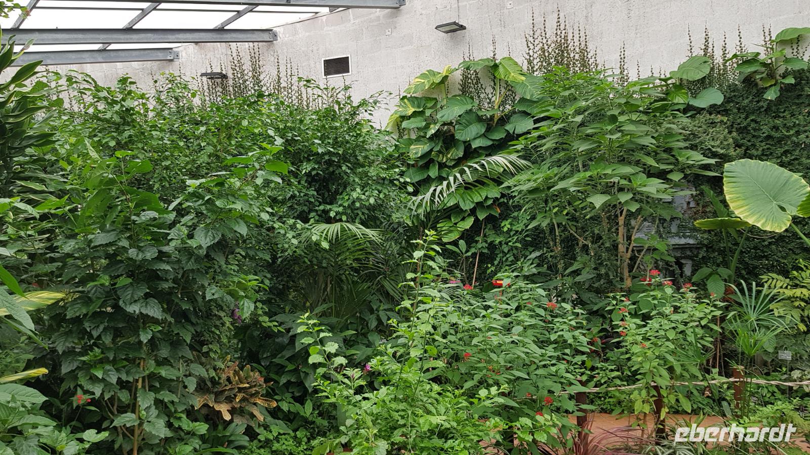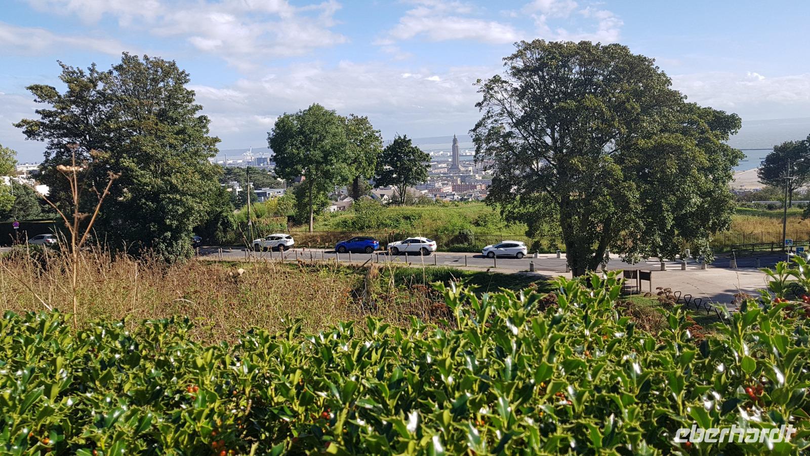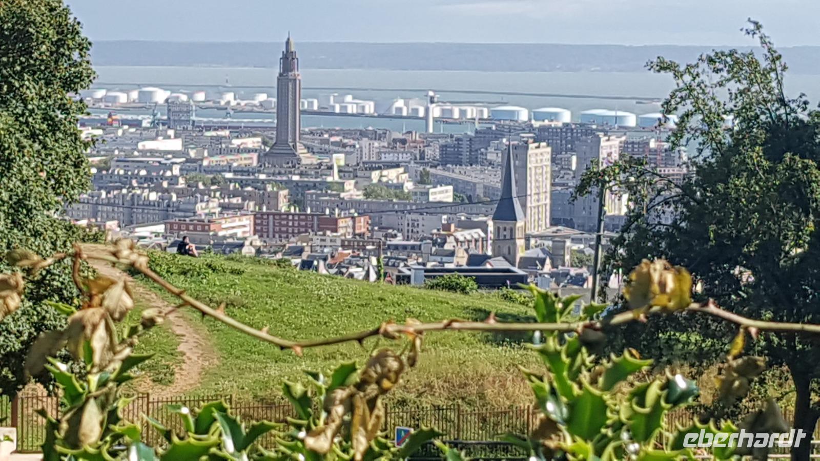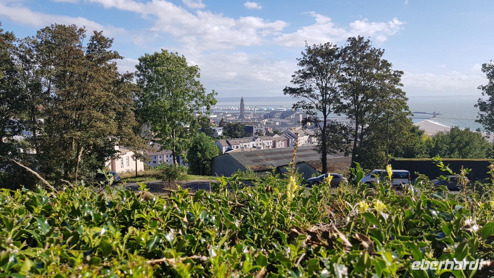 Einen zweiten Garten sahen wir an diesem Tag in Le Havre. Er wurde ab 2008 in der ehemaligen Festung von Sainte-Adresse angelegt, die Mitte des 19. Jahrhunderts zum Schutz des Hafen von Le Havre vor den Briten gebaut worden war. Zunächst besichtigten wir die Gewächshäuser mit ihren Orchideen- und Begoniensammlungen, ihren tropischen Pflanzen und ihren Blumenbeeten. Dann gingen einige von uns hinauf zur Festungsmauer, um von dort einen Blick über die Stadt Le Havre zu werfen.