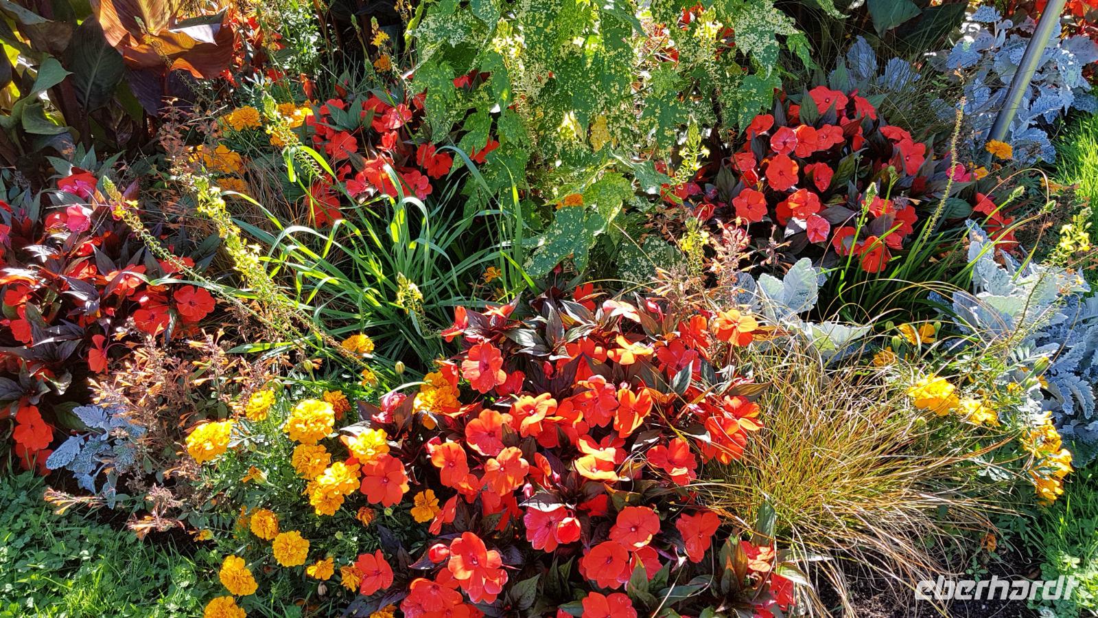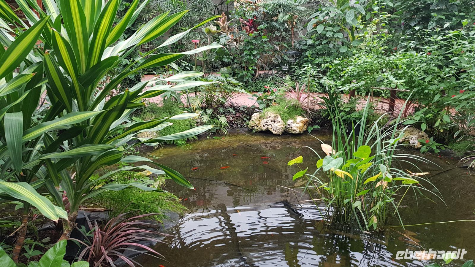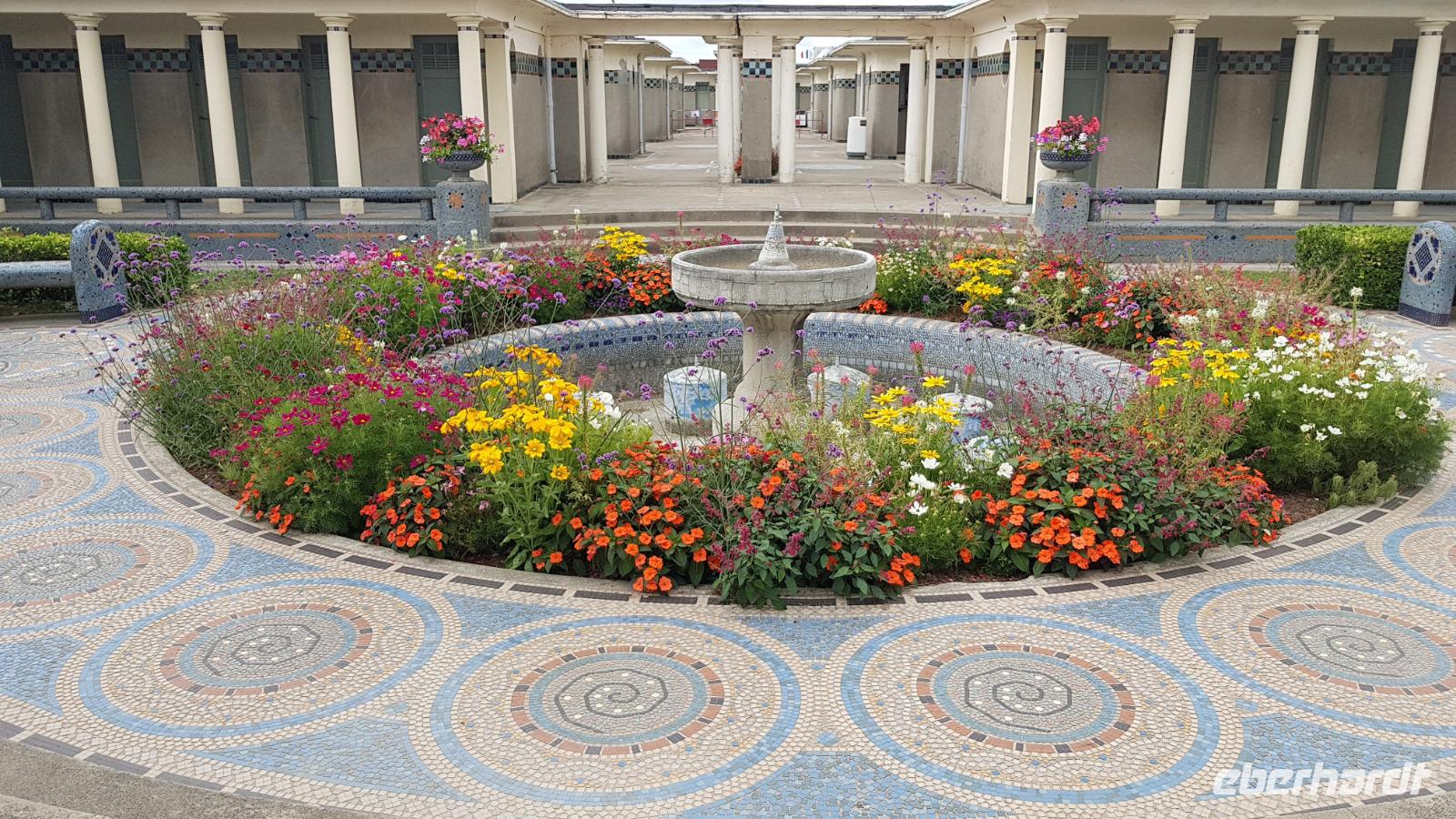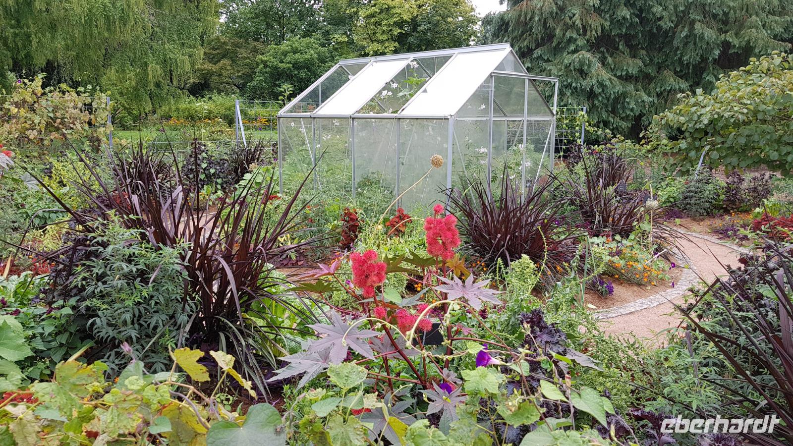 Einen zweiten Garten sahen wir an diesem Tag in Le Havre. Er wurde ab 2008 in der ehemaligen Festung von Sainte-Adresse angelegt, die Mitte des 19. Jahrhunderts zum Schutz des Hafen von Le Havre vor den Briten gebaut worden war. Zunächst besichtigten wir die Gewächshäuser mit ihren Orchideen- und Begoniensammlungen, ihren tropischen Pflanzen und ihren Blumenbeeten. Dann gingen einige von uns hinauf zur Festungsmauer, um von dort einen Blick über die Stadt Le Havre zu werfen.